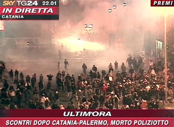 Öllum leikjum helgarinnar á Ítalíu frestað 2. febrúar 2007 21:45 Óeirðirnar eftir fótboltaleikinn í kvöld. MYND/AP Ítalska knattspyrnusambandið skýrði frá því í kvöld að það hefði ákveðið að fresta öllum leikjum helgarinn í ítalska boltanum. Ástæðan er að lögreglumaður var myrtur í átökum milli áhangenda tveggja knattspyrnuliða í kvöld. Átökin áttu sér stað í leik Catania og Palermo en þau leika bæði í Serie A sem er efsta deild ítölsku deildakeppninnar í fótbolta. Erlent Fréttir Mest lesið Ætlar ekki að beita sér í máli starfsmanns Útlendingastofnunar Innlent Málið sem Trump getur ekki losað sig við Erlent Sextán ára fékk greitt fyrir að færa Epstein stúlkur Erlent Hljóti að vera komið að því að skoða öryggisgæslu við skóla Innlent „Ég vil ekki nokkurn tímann sjá neitt svona aftur“ Innlent „Þetta er bara ljótt“ Innlent Milljónir til almannatengla og átta sinnum meira en í fyrra Innlent Systir og amma drengs í meðferð létust í Suður-Afríku Innlent Grunaður um manndráp eftir að tveggja ára drengur féll úr blokk Erlent Færir nýársboðið fram á þrettándann Innlent Fleiri fréttir Sýknaður af nauðgun eftir að hafa verið skimaður fyrir sjaldgæfri svefnröskun Málið sem Trump getur ekki losað sig við Grunaður um manndráp eftir að tveggja ára drengur féll úr blokk Fóru um borð í vélvana rússneskt skip Baulað á Albanese á minningarathöfn á Bondi-strönd Kvarta yfir ritskoðun Epstein-skjala: „Við vitum ekki hvað við vitum ekki“ Níu skotnir til bana á krá Sextán ára fékk greitt fyrir að færa Epstein stúlkur Ljósmyndir horfnar úr Epstein-skjölunum, þar á meðal ein af Trump Vilja dauðarefsingu af borðinu vegna hagsmunaáreksturs ráðherra Pútín sagður hafa valið Witkoff Gerðu umfangsmiklar árásir gegn ISIS í Sýrlandi Það helsta úr fyrsta skammti Epstein-skjalanna Epstein-skjölin birt Draga tilvist neðanjarðarhafs á Títan í efa Réðust á skip úr skuggaflotanum þúsundir kílómetra frá Úkraínu Enn fleiri myndir úr safni Epsteins: „En hún vill þúsund dali fyrir hverja stúlku“ Trump vill til tunglsins fyrir 2028 Herða reglur og ráðast í endurkaup á skotvopnum Morðinginn í Brown háskóla fannst látinn Evrópa samþykkir 90 milljarða evra lán til Úkraínu Rannsaka tengsl skotárásarinnar við annað morð Sex um borð í einkaþotu sem hrapaði Beita dómara ICC refsiaðgerðum vegna Ísrael Taka á kvenfyrirlitningu með sérstöku námskeiði fyrir drengi Hæðist að og smánar fyrrverandi forseta á „frægðargangi“ Frú Macron í klandri eftir ósmekkleg ummæli um femínista „Dr. Dauði“ í lífstíðarfangelsi fyrir að myrða tólf Ekki hafi verið rétt að benda á Skandia-manninn sem morðingja Palme Myndskeið birt af Reiner eftir morðin og fyrir handtöku Sjá meira
