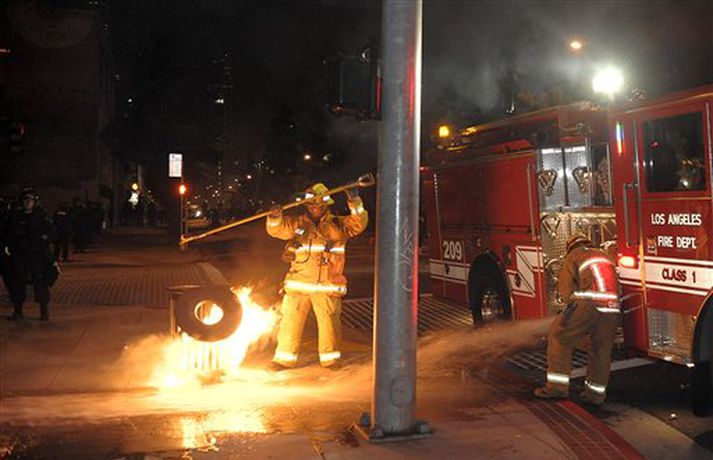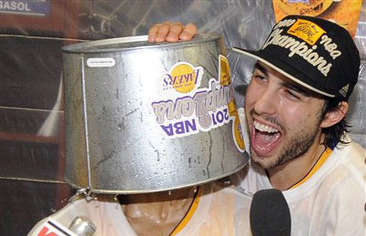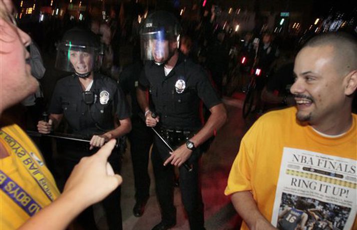 Los Angeles Lakers tryggði sér NBA-meistaratitilinn i nótt með sætum sigri á Boston Celtics. Lokatölur 83-79 fyrir Lakers sem vann einvígið 4-3. Fögnuðurinn eftir leikinn var eðlilega mikill. "Þetta er sá sætasti," sagði Kobe Bryant um sinn fimmta titil, samanborinn við hina. Hér fyrir neðan má sjá myndasyrpu af fögnuði leikmanna og stuðningsmanna, en allt fór úr böndunum í Los Angeles í nótt eftir þennan sögulega sigur Lakers.