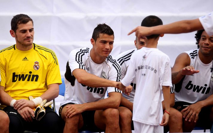 Kínverjar segja Ronaldo vera hrokagikk Eiríkur Stefán Ásgeirsson skrifar 3. ágúst 2011 11:30 Ronaldo gaf aðeins meira af sér við þennan unga dreng en blaðamenn í Kína. Nordic Photos / AFP Kínverskir fjölmiðlamenn og knattspyrnuáhugamenn eru allt annað en ánægðir með frammistöðu Cristiano Ronaldo á blaðamannafundi þar í landi á dögunum. Félag Ronaldo, Real Madrid, er nú á keppnisferðalagi í Kína þar sem knattspyrnuáhuginn er mikill og Ronaldo í uppáhaldi hjá mörgum. Hann sat fyrir svörum á blaðamannafundi í Guangzhou í gær fyrir leik liðsins gegn Guangzhou Evergrande. Ronaldo þótti einfaldlega leiðinlegur í tilsvörum sem voru stutt og snubbótt. „Hann virðist eigingjarn og hrokafullur," sagði Yan Qiang, varaforseti fjölmiðlafyrirtækis í Kína, Titan Media. „Það er alveg ljóst að framkoma hans mun ekki gera honum neina greiða í Kína." Hann var til að mynda spurður hvernig ástandið væri á Kaka, liðsfélaga Ronaldo hjá Real. „Perfecto," sagði Ronaldo og lét þar við sitja. Annar blaðamaður reyndi þá að brydda upp á öðru og léttara umræðuefni og spurði hvort hann væri duglegur að skipta um bleiur á ungum syni sínum. „Já. Það er mér sem föður eðlilegt að skipta um bleiur," sagði Ronaldo án þess að stökkva bros. Spurður um hvort hann myndi mögulega einn daginn snúa aftur til Englands og þá Manchester United sagði kappinn: „Kannski. Af hverju ekki? Maður veit aldrei." Hann var einnig spurður um álit sitt á borðtennis og hvort hann þekkti einhverja kínverska knattspyrnumenn. Sömuleiðis spurðu blaðamenn hann hvað honum þætti um Guangzhou og var svarið einfalt; „Það er heitt." Ronaldo var staddur hér á landi í október síðastliðnum þegar að Ísland mætti Portúgal í undankeppni EM 2012 en lét það vera að ræða við íslenska fjölmiðlamenn. Spænski boltinn Mest lesið Hættur aðeins þrítugur Golf Áfallið staðreynd og Isak búinn í aðgerð Enski boltinn Sjáðu geggjaðan snúning Alberts áður en hann skoraði frábært mark Fótbolti Bunting dró orð sín til baka með tárin í augunum: „Ég er ekki meistari fólksins“ Sport Afkáralegt fagn hjá hetju Sambíu Fótbolti Sakaður um svindl á HM í pílukasti Sport Táningur fær mikið hrós fyrir viðbrögð sín þegar mótherji missti meðvitund Fótbolti Steraleikarnir segi ungu fólki að það sé aldrei nógu fullkomið Sport Áhorfendur ærðust eftir mögulega mark mótsins í fyrsta leik Fótbolti Klappstýrur Björgvins Karls slógu í gegn Sport Fleiri fréttir Einn leikmaður með samning og völlurinn ólöglegur Salah færði Egyptum draumabyrjun Fulham skildi Forest eftir við fallsvæðið Áfallið staðreynd og Isak búinn í aðgerð Neres hetja Napoli í Sádi-Arabíu Aron Einar lagði upp dýrmætt sigurmark Afkáralegt fagn hjá hetju Sambíu Glódís Perla veik í jólafríið en enn taplaus Glódís og Hákon best í fótboltanum á árinu Frelsaði fjárfestirinn Dani Alves gefur sjálfum sér samning Fagnaði titli Liverpool sem óður maður um alla borg Mbappé breytti um fagn af góðu tilefni „Allir virðast elska hann“ Meira en 37 stöðugildi hjá Knattspyrnusambandi Íslands Táningur fær mikið hrós fyrir viðbrögð sín þegar mótherji missti meðvitund „Þetta mun ekki buga okkur“ Guardiola mun vigta leikmenn Man City eftir jólin „Ef þið væruð Antoine Semenyo, hvert mynduð þið fara?“ Freyr himinlifandi með íslensku strákana Sjáðu geggjaðan snúning Alberts áður en hann skoraði frábært mark Óskar Hrafn um komu Arnórs Ingva: „Gífurlega dýrmætt fyrir KR“ Áhorfendur ærðust eftir mögulega mark mótsins í fyrsta leik Sjáðu mörkin: Rogers sá um Manchester United Hleður Kjartan lofi eftir frábæra frumraun með Aberdeen Óttast að Isak hafi fótbrotnað Túfa gerir þriggja ára samning í Svíþjóð Arnór Ingvi orðinn leikmaður KR Albert skoraði í fyrsta sigri Fiorentina Bæjarar aftur á sigurbraut Tvenna frá Rogers tryggði Villa sigur gegn Manchester United Sjá meira
