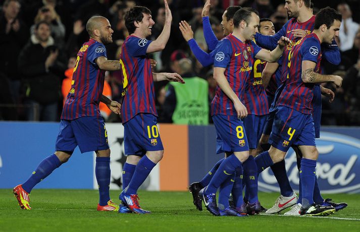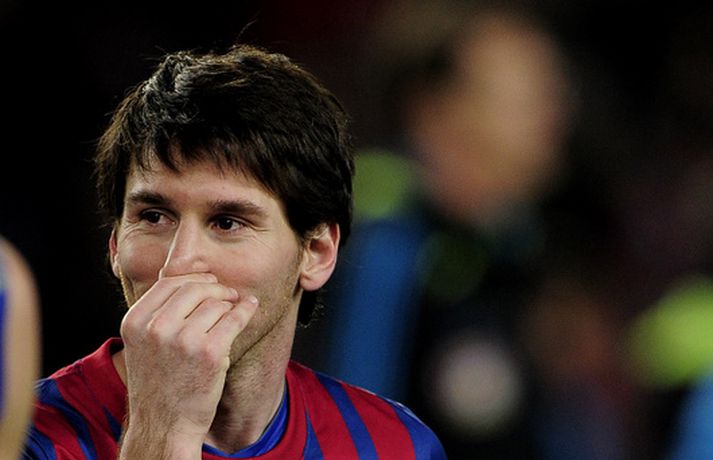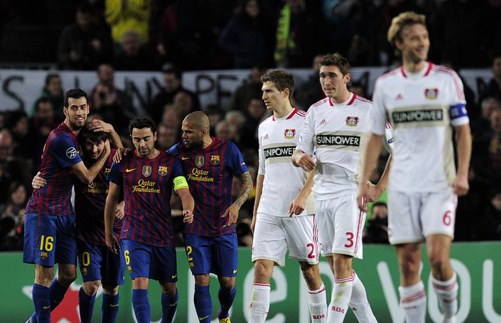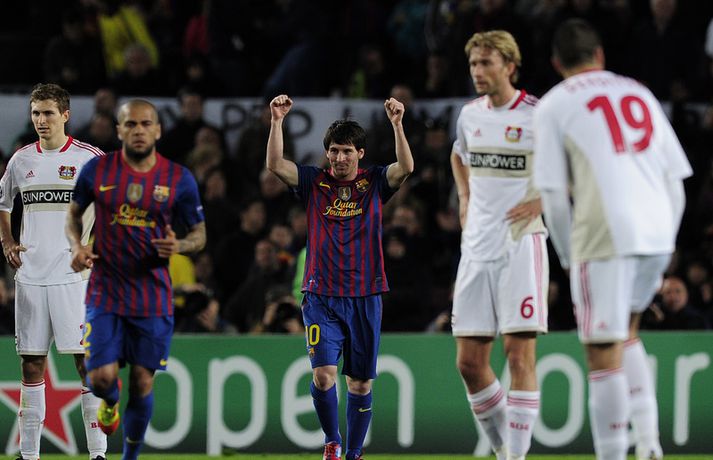 Lionel Messi skoraði fimm af sjö mörkum Barcelona í kvöld í seinni leik liðsins á móti þýska liðinu Bayern Leverkusen í sextán liða úrslitum Meistaradeildarinnar. Með því að skora fimmu í þessum leik setti argentínski snillingurinn tvö met í Meistaradeildinni. Messi varð fyrsti leikmaðurinn í sögu Meistaradeildarinnar sem nær því að skora fimm mörk í einum leik en þegar hann skoraði sitt fjórða mark í leiknum þá varð hann ennfremur fyrsti leikmaðurinn í sögu keppninnar sem nær því að skora tvisvar sinnum fjögur mörk í einum leik. Messi skoraði fjögur mörk á móti Arsenal í fyrra. Messi hefur skorað tólf mörk og gefið sex stoðsendingar í sjö leikjum sínum í Meistaradeildinni í ár og er alls kominn með 49 Meistaradeildarmörk á ferlinum þrátt fyrir að vera aðeins 24 ára gamall. Hér fyrir neðan má sjá nokkrar myndir AFP-fréttastofunnar af Messi frá því í kvöld. Myndirnar má sjá í albúminu hér að neðan. Hægt er að sjá myndirnar stærri með því að smella á þær.