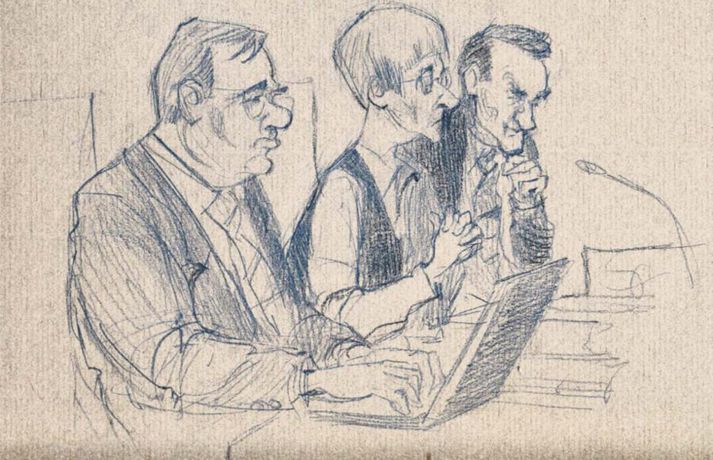 Engu að síður er jafnan þéttsetið í salnum. Fjölmiðlar senda heilu teymin svo að ekkert fari nú forgörðum þegar menn tapa óhjákvæmilega athyglinni í örskotsstund. Næst Geir situr hans nánasta fjölskylda og missir ekki af neinu. Víðar um salinn má sjá fólk sem augljóslega er komið til að styðja sakborninginn; fyrrverandi aðstoðarmenn hans hlusta, taka glósur og prjóna, gamlir framkvæmdastjórar Sjálfstæðisflokksins koma og fara og annar þeirra hristir hausinn þegar talið berst að Landsbankanum. Hann sat einmitt í bankaráðinu. Fyrrverandi aðstoðarkona Ingibjargar Sólrúnar Gísladóttur er meðal þaulsætnustu gesta og spjallar við Geir í flestum kaffipásum.