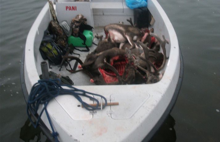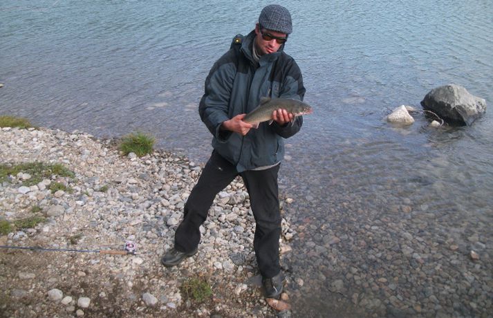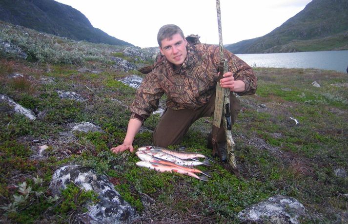Sex manna hópur Íslendinga lagði upp í veiðiferð til Grænlands þar sem hreindýratarfar voru skotnir og rennt fyrir sprækar sjóbleikjur. Þórður Örn Kristjánsson, sem ætti að vera einhverjum lesendum Veiðivísis að góðu kunnur, segir hér sögu ferðalanganna og birtir nokkrar myndir með. Að fara til Grænlands til veiða hafði verið á dagskrá okkar feðga í fleiri ár en Ólafur Ragnar hefur setið sem forseti og loksins var komið að því að setjast upp í vél. Það voru því sex mjög spenntir veiðimenn sem lentu í Narsassuaq í dumbungsveðri þriðjudaginn 7. ágúst eftir þriggja tíma flug. Hópurinn samanstóð af Kristjáni Þórðarsyni augnlækni ásamt sonum sínum tveim þeim Þórarni Má háskólanema og mér, Þórði Erni fuglafræðingi. Einnig voru tengdasynir Kristjáns þeir Örnólfur Þorvarðarson HNE læknir og Bjarni Pálsson verkfræðingur með í för svo bættist Þórarinn Kristmundsson æðaskurðlæknir í Sverige og náfrændi okkar í hópinn. Menn voru því öruggir ef þeir potuðu í augun á sér, fengu hálsbólgu eða æðahnúta af allri gleðinni sem beið okkar á veiðisvæðinu. Siglt er frá Narsassuaq til Narsaq sem er smábær þar sem hægt er að kaupa vistir á uppsprengdu verði enda allt reiknað í dönskum krónum á Grænlandi. Grænmetisdeildin samastóð af 3 skemmdum agúrkum og fimm bönunum sem við keyptum, einnig fundust einhverskonar danskar pulsur og sauðnautahamborgarar sem enduðu í körfunni annars völdum við mest þurrmat enda ætlunin að veiða sér fisk til matar. Eftir innkaup var svo siglingunni haldið áfram í tæpa þrjá tíma í þægilegum bát í veiðibúðir Lax-á. Veðrið var blautt og óspennandi en vel var tekið á móti okkur af ráðsmanninum Óla og konu hans sem sáu um svæðið. Strax var haldið í næstu á til bleikjuveiða þótt tveir tímar væru til myrkurs. Fyrsta eiginlega veiðidag vorum við sóttir af grænlenskum gæd sem sigldi með okkur til móts við Stefán hreindýrabónda en þeir skiptu hópnum svo þrjár skyttur voru á hvern gæd. Ólíkt okkar hreindýraveiðum fer öll leit fram á bátum sem siglt er um firði og skimað eftir dýrum þegar dýr eru fundinn hefst eftirför þar sem þau eru furðu stygg. Sáum við heilmarga smáa hópa þótt skyggni væri ekki mikið og eftir nokkrar misheppnaðar eftirfarir komumst við loks í færi við fallega tarfa sem Þórarinn bróðir og pabbi felldu. Hinn hópurinn náði ekki að fella dýr þrátt fyrir nokkur tækifæri en landslag er þannig að svæðið er oftar en ekki mjög hæðótt og því færin þröng. Eftir veiðidag var haldið í bleikjuna og nú í nýjan hyl sem gjörsamlega kraumaði af fiski milli 2-5 pund. Hinir ýmsu streamerar gáfu vel og fékk þurrflugan einnig nokkur tækifæri enda veðrið orðið stórfenglegt. Megninu var sleppt en nokkrir voru þó drepnir og grillaðir um kvöldið. Annar veiðidagur var blautur og kaldur framan af en veður á Grænlandi breytist ótrúlega hratt og sólskinstundir eru (samkvæmt heimamönnum) allsráðandi yfir sumartímann og fram á haust. Það lægði og birti til um hádegið og þá voru þrír tarfar felldir úr sjö dýra hóp, allir hálsskotnir sem er venjan á Grænlandi til að minnka kjötskemmdir. Voru þessir tarfar fyrstu hreindýrin sem Bjarni, Össi og Tóti frændi felldu og því var vígslubitinn úr lifrinni tekinn eins og er til siðs hjá íslenskum villimönnum. Talsverðan tíma tók að hluta þessi dýr niður og drösla þeim í bátinn og hitinn þá orðinn mikill svo menn voru þreyttir og sveittir eftir átökin. Nú átti ég eftir síðasta dýrið og þokan aftur lögst yfir fjöllin og hlíðarnar. Fundum þó nokkuð myndarlega hjörð um 40 dýr og þar var einn mjög stór og ljós tarfur sem við gædinn og Tóti frændi eltum upp í þokuna. Loks fannst tarfurinn og var felldur á 200 metrum með hálskoti enda SAUR-inn vel stilltur og S&B kíkirinn að gera sitt. Það sama verður þó ekki sagt um glöggskyggni skyttunar eða gædsins þar sem þetta reyndist „rangur" tarfur og var mun minni og dekkri en sá sem við vorum að elta. Fallegt dýr engu að síður og skemmtilegt veiðimóment. Þar með voru öll hreindýr fallinn og menn farnir að hugsa sér gott til gufunnar sem beið okkar heit í veiðibúðunum. Eftir heita sturtu og frábæra gufuferð tók við sushigerð þar sem nýveiddar bleikjur úr ánni voru nýttar og slegið upp veislu. Dagur þrjú á veiðum var tekinn snemma og í stað hreindýrarifflana voru veiðistangir í forgrunni enda haldið til bleikjuveiða. Höfðum við samt alltaf með okkur allavega eina haglabyssu eða riffil þegar farið var í bleikju ef ske kynni að ísbjörn væri á svæðinu. Það gengur víst betur að fæla þá með skoti en fluguköstum. Eftir 6 tíma bleikjustreð fórum við í heimsókn til Stefáns hreindýrabónda en hann býr um 50 mín siglingu frá veiðibúðunum og rekur eina sláturhúsið í heiminum sem hefur leyfi til sölu á kjöti til bæði Ameríku og Evrópu skildist mér. Mjög flott aðstaða og fengum við þar hver fyrir sig 10 kg af hreindýrakjöti til innflutnings. Kvöldið leið við mat og drykk en menn voru þreyttir eftir allt púlið síðustu daga og því farið snemma í háttinn (eftir gufuferð að sjálfsögðu). Heimferðadagur var heiðskýr og blankalogn, ísjakar um allan sjó ásamt selum settu svip sinn á siglinguna til Narsassuaq en þar áttum við pantaða flugferð til Reykjavíkur. Aðstaðan sem Lax-á hefur komið upp á Grænlandi er án efa fyrsta flokks. Vatnsklósett, heitar sturtur, gufubað, grillaðstaða, eldavélar og góð rúm er eitthvað sem maður bjóst ekki við í óbyggðum Grænlands. Svæðið er í algjörri einangrun og líkurnar á að rekast á ferðamenn eða aðra veiðimenn eru engar. Nóg var af dýrum til að velja úr og b