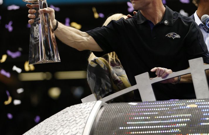 John Harbaugh stýrði Baltimore Ravens til sigurs í ameríska fótboltanum í nótt en Ravens-liðið vann þá 34-31 sigur á San Francisco 49ers í leiknum um Ofurskálina, Super Bowl. Jim Harbaugh, yngri bróðir, hans þjálfar lið 49ers. John Harbaugh sagist eftir leikinn vera niðurbrotinn vegna bróður síns og sparar ekki á hann hrósið þrátt fyrir að hann hafi verið nýbúinn að vinna litla bróðir í stærsta leik ársins í amerískum íþróttum. „Þetta voru mjög erfiðar kringumstæður og það erfiðasta af öllu var að labba yfir völlinn til hans. Þið getið bara ímyndað ykkur að finna fyrir ótrúlegri sigurtilfinningu en jafnframt finna mikið til með bróður sínum. Þetta var mikið tilfinningaflóð," sagði John Harbaugh. „Ég er stoltur af honum og hann er besti þjálfarinn í NFL-deildinni. Árangur hans með San Francisco 49ers sýnir það og sannar því það er ótrúlegt hvað hann hefur afrekað með liðið undanfarin tvö ár," sagði John Harbaugh.