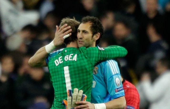 De Gea fékk mikið hrós frá Ferguson og Giggs Óskar Ófeigur Jónsson skrifar 14. febrúar 2013 09:15 David de Gea. Mynd/Nordic Photos/Getty Sir Alex Ferguson, knattspyrnustjóri Manchester United, var að sjálfsögðu ánægður með frammistöðu spænska markvarðarins David de Gea í 1-1 jafnteflinu á móti Real Madrid í Meistaradeildinni í gær. David de Gea sá öðrum fremur til þess að Real-menn skoruðu aðeins eitt mark í leiknum. „David var frábær og átti þrjár eða fjórar heimsklassa markvörslur. Hann er alltaf að bæta sig. Ég er mjög ánægður fyrir hönd stráksins því þetta er mjög erfiður staður til að spila á," sagði Sir Alex Ferguson. Ryan Giggs talaði einnig um De Gea. „Það er gott fyrir hann að koma til Madrid og spila svona góðan leik. Hann er topp markvörður og það er enginn betri en hann í að verja boltann," sagði Ryan Giggs og bætti við: „Hann er að þroskast meira og meira og er farinn að sýna það inn á vellinum. Hann kom til Madrid með mikla pressu á sér, ekki síst þar sem hann er frá Atletico en stóðst hana með glæsibrag," sagði Ryan Giggs. Meistaradeild Evrópu Mest lesið Óskar Hrafn fer ekki fet Íslenski boltinn Hákon Rafn hélt hreinu þegar Brentford flaug áfram Enski boltinn Spánn og Þýskaland mætast í úrslitum Fótbolti Anguissa hetja meistaranna Fótbolti Martin öflugur í góðum sigri Körfubolti Verstappen telur sig ekki geta barist um titilinn Formúla 1 Jón Dagur gulltryggði sigurinn með sínu fyrsta marki Fótbolti Leikið á Þróttaravelli á miðvikudag Fótbolti Segir að Slot verði að taka tvo leikmenn út úr Liverpool-liðinu Enski boltinn Birnir frá Akureyri í Garðabæ Íslenski boltinn Fleiri fréttir Óskar Hrafn fer ekki fet Spánn og Þýskaland mætast í úrslitum Anguissa hetja meistaranna Hákon Rafn hélt hreinu þegar Brentford flaug áfram Jón Dagur gulltryggði sigurinn með sínu fyrsta marki Leikið á Þróttaravelli á miðvikudag Vinícius Júnior íhugar að yfirgefa Real Madríd Kaupir sér tveggja milljarða króna hús Alexander Máni með fimm mörk í tveimur leikjum og Ísland áfram Birnir frá Akureyri í Garðabæ Klobbaði íslensku strákana og fór á flug á netmiðlum Hættir með Fram Landsliðskonur aðstoðuðu ökumenn í vanda Landsleiknum aflýst og framhaldið óljóst Segir að Slot verði að taka tvo leikmenn út úr Liverpool-liðinu Vonast til að komast í Kórinn: „Menn hafa aldrei séð annað eins“ „Alltaf gaman að fá nýjar raddir inn“ Gleðifréttir fyrir Argentínumenn: Messi vill spila á HM Stöðufundur í Laugardal klukkan 10:30 Enska úrvalsdeildin í jólaköttinn Nýi íþróttastjóri Kjartans stal mörgæs og endaði í fangelsi í Singapúr Tyrkneska sambandið segir dómara hafa veðjað á þúsundir leikja Brendan Rodgers sagði starfinu sínu lausu eftir ásakanir Segir sitt fyrrum lið í krísu Fylltu í eyðurnar: Vanmetnasti leikmaður deildarinnar? Fyrirliði Real Madríd þarf að fara í aðgerð á hné Einkaviðtal við Carrick: „Hálfgerð tískubylgja sem einkennir fótboltann í dag“ Markaóður Stefán Ingi eftirsóttur Öllu búin skildi snjóspáin raungerast „Eitthvað sem við erum óvanar eftir Þjóðadeildina“ Sjá meira