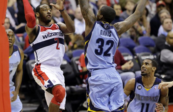 John Wall, leikmaður Washington Wizards í NBA-deildinni í körfubolta, er ekki sammála þeirri fullyrðingu að Russell Westbrook hjá Oklahoma City Thunder sé fljótasti leikmaðurinn í NBA-deildinni í dag. „Nei ég er ekki samála því ég myndi segja að ég væri sá fljótasti," sagði John Wall í viðtali við The Oklahoman eftir að Washington Wizards liðið tapaði fyrir Russell Westbrook og félögum í OKC. Wall dróg síðan aðeins í land og sagði að hann ætti að vera í umræðunni en það kæmu fleiri til greina. „Westbrook kemur til greina, sem og Derrick (Rose) ef hann er heill og þá er Mike Conley nokkuð fljótur. Ty Lawson er líka hraður en ég myndi samt setja mig sjálfan í fyrsta sætið," sagði Wall fullur sjálfstrausts. John Wall er með 16,8 stig og 7,7 stoðsendingar að meðaltali í leik í NBA-deildinni í vetur en hann hefur gerbreytt Washington-liðinu eftir að hann kom inn eftir meiðsli. Washington Wizards hefur unnið 21 af 38 leikjum með hann innanborðs en náði aðeins að vinna 5 af 33 leikjum án hans.