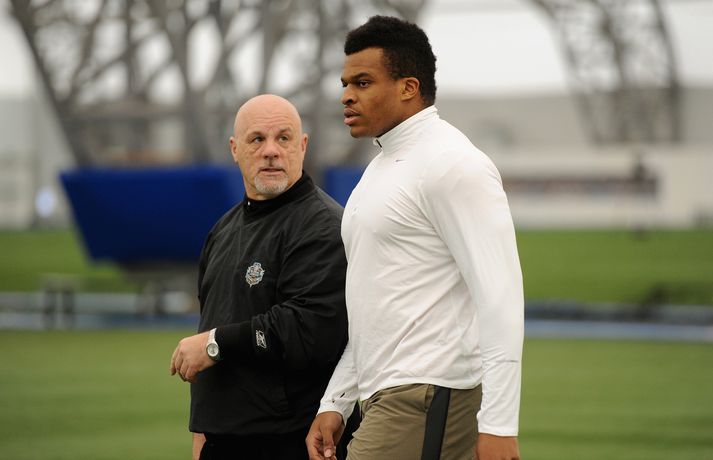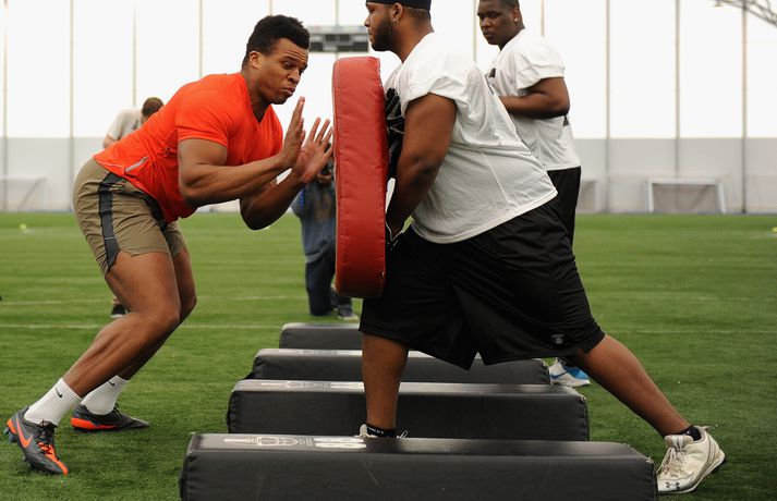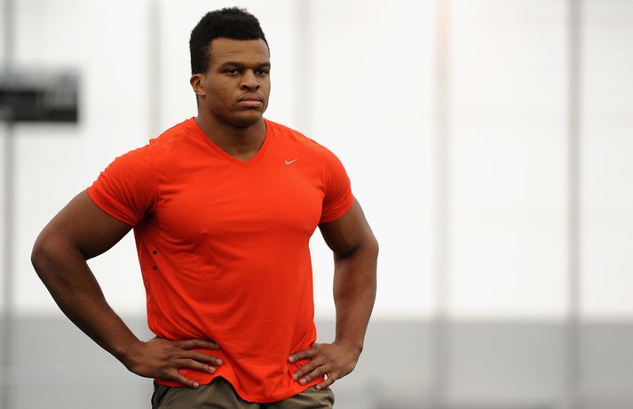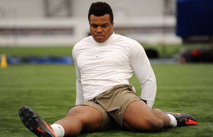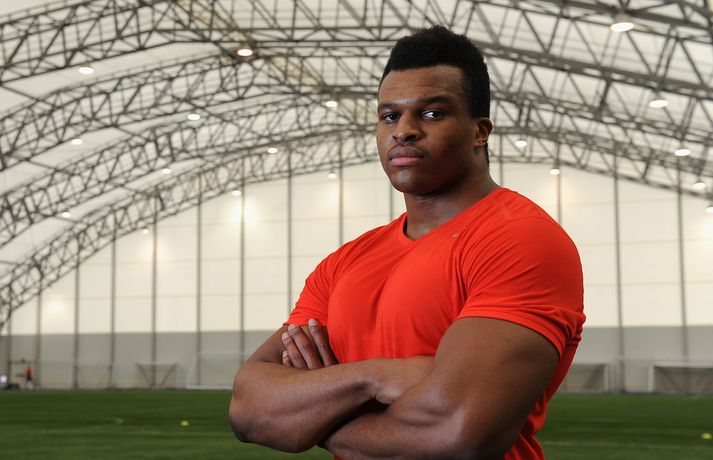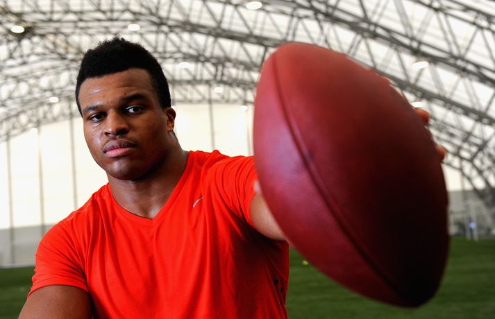 Einn mest spennandi nýliðinn í NFL-deildinni er hinn 21 árs gamli Lawrence Okoye. Þessi fyrrum kringlukastari hefur aldrei spilað amerískan fótbolta en mun spila fyrir eitt besta lið deildarinnar næsta vetur, San Francisco 49ers. Okoye komst í úrslit Ólympíuleikanna í London í kringlukasti. Þar endaði hann í tólfta sæti sem þótti frábær árangur hjá svo ungum manni. Sérstaklega í ljósi þess að hann byrjaði að æfa íþróttina aðeins tveim árum áður. Hann náði strax undraverðum árangri í íþróttinni og varð heimsmeistari unglinga árið 2011. Þegar hann tilkynnti í mars að hann hefði áhuga á því að fara í NFL-deildina hafði strax fjöldi félaga samband við hann. Hann sló í gegn í æfingabúðunum fyrir nýliðavalið og úr varð síðan að 49ers ákvað að taka hann. "Það hentar mér best að fara til 49ers. Þeir hafa sömu sýn og ég og þetta gæti orðið frábær saga," sagði Okoye. Jim Harbaugh, þjálfari 49ers, er yfir sig hrifinn af stráknum sem hann segir vera fallegan og glæsilegan mann. "Hann er eins og Adonis. Þetta er grískur Guð og ótrúlegt eintak af manni. Himnafaðirinn bjó til fallegan mann er hann bjó til Okoye," sagði Harbaugh en hann ætlar að nota Okoye í vörninni. Strákurinn er Englendingur en foreldrar hans eru frá Nígeríu.