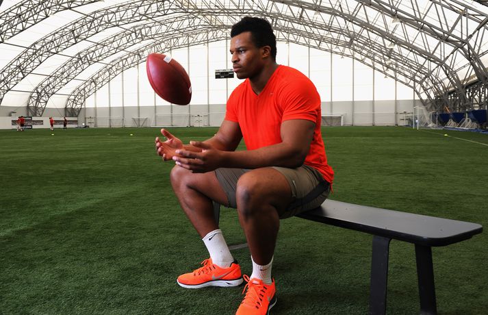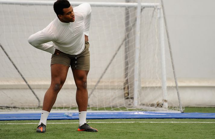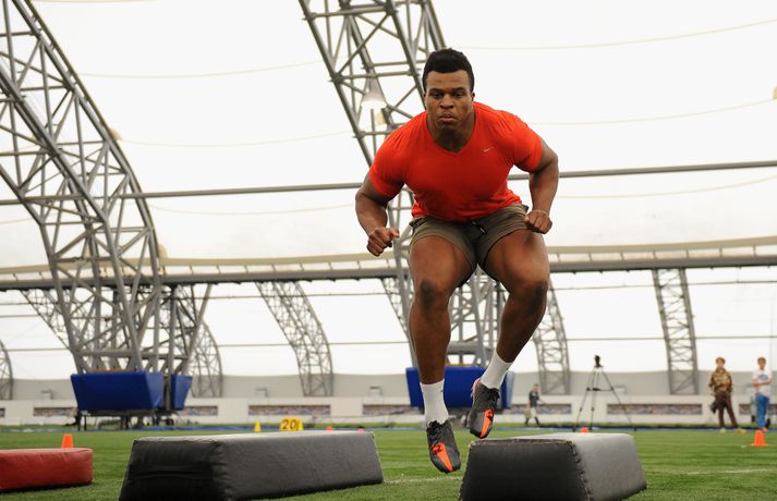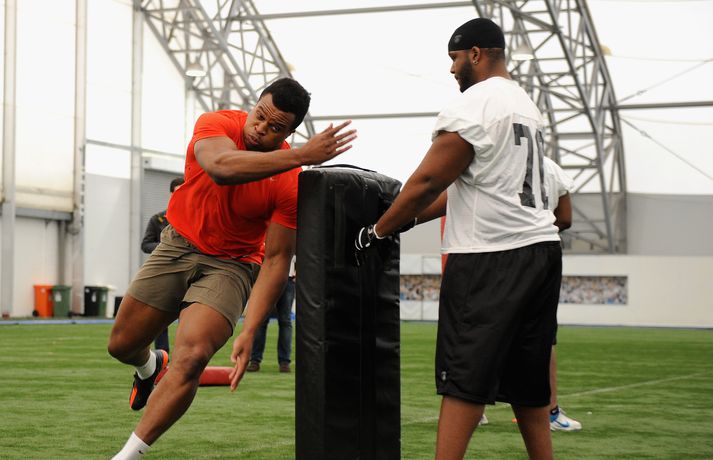 Kringlukastarinn í NFL-deildinni 29. apríl 2013 23:30 Okoye í auglýsingu fyrir Ólympíuleikana síðasta sumar. Einn mest spennandi nýliðinn í NFL-deildinni er hinn 21 árs gamli Lawrence Okoye. Þessi fyrrum kringlukastari hefur aldrei spilað amerískan fótbolta en mun spila fyrir eitt besta lið deildarinnar næsta vetur, San Francisco 49ers. Okoye komst í úrslit Ólympíuleikanna í London í kringlukasti. Þar endaði hann í tólfta sæti sem þótti frábær árangur hjá svo ungum manni. Sérstaklega í ljósi þess að hann byrjaði að æfa íþróttina aðeins tveim árum áður. Hann náði strax undraverðum árangri í íþróttinni og varð heimsmeistari unglinga árið 2011. Þegar hann tilkynnti í mars að hann hefði áhuga á því að fara í NFL-deildina hafði strax fjöldi félaga samband við hann. Hann sló í gegn í æfingabúðunum fyrir nýliðavalið og úr varð síðan að 49ers ákvað að taka hann. "Það hentar mér best að fara til 49ers. Þeir hafa sömu sýn og ég og þetta gæti orðið frábær saga," sagði Okoye. Jim Harbaugh, þjálfari 49ers, er yfir sig hrifinn af stráknum sem hann segir vera fallegan og glæsilegan mann. "Hann er eins og Adonis. Þetta er grískur Guð og ótrúlegt eintak af manni. Himnafaðirinn bjó til fallegan mann er hann bjó til Okoye," sagði Harbaugh en hann ætlar að nota Okoye í vörninni. Strákurinn er Englendingur en foreldrar hans eru frá Nígeríu. NFL Mest lesið Grafalvarleg staða: „Þurfum að fara í sársaukafullar aðgerðir“ Handbolti Ógeðslega erfitt og ógeðslega vont en brosir oft í viku á eftir Sport Fram þvertekur fyrir metnaðarleysi og leitar að nýjum þjálfurum Íslenski boltinn „Nú er nóg komið“ Fótbolti Nefna greinar Íslandsmótsins í CrossFit í höfuðið á íslenskum íþróttakonum Sport Gísli semur við Skagamenn Íslenski boltinn Arnór Snær snýr aftur heim Handbolti Skortir Liverpool breidd þrátt fyrir gríðarleg fjárútlát síðasta sumar? Enski boltinn Besta handboltadeild heims missir aðalstyrktaraðila sinn Handbolti Félagið í greiðslustöðvun en borgaði öll laun degi fyrr Enski boltinn Fleiri fréttir Halda HM á hlaupabretti í fyrsta sinn Barcelona skuldar mest en Tottenham er númer tvö Tölur úr Bestu: Bjartur Bjarmi fór í flestar tæklingar af öllum Andri kallaður inn í hópinn fyrir meiddan Hauk Gísli semur við Skagamenn Óskar Smári tekur við Stjörnunni „Við þurfum að vera betri varnarlega“ Mikilvægt fyrir United að hamra járnið meðan það er heitt Félagið í greiðslustöðvun en borgaði öll laun degi fyrr Íslenski körfuboltinn og Grindavík verðlaunuð Arnór Snær snýr aftur heim Besta handboltadeild heims missir aðalstyrktaraðila sinn Grafalvarleg staða: „Þurfum að fara í sársaukafullar aðgerðir“ Bretinn ráðinn tæknilegur ráðgjafi hjá Val Nefna greinar Íslandsmótsins í CrossFit í höfuðið á íslenskum íþróttakonum Fram þvertekur fyrir metnaðarleysi og leitar að nýjum þjálfurum Nýr þjálfari Juventus er með Napoli-húðflúr Eldgos og brjósklos skapa óvissu: „Vonum bara að móðir náttúra leyfi þetta“ Ógeðslega erfitt og ógeðslega vont en brosir oft í viku á eftir „Nú er nóg komið“ NBA-leikmaður með krabbamein Skortir Liverpool breidd þrátt fyrir gríðarleg fjárútlát síðasta sumar? Sádar eru ekki að fara að byggja HM-leikvang ofan á skýjakljúfi Dagskráin í dag: Meistararnir á Króknum, Körfuboltakvöld og allskonar Hetja Englands á EM sleit krossband Lofar frekari fjárfestingum Haukur Helgi: Höfum ekki verið að spila góðan körfubolta „Getum verið fjandi góðir“ Uppgjörið: Álftanes-Njarðvík 93-92 | Heitur Haukur var hetjan á Álftanesinu Uppgjörið: Keflavík - Þór Þ. 86-82 | Þarf ekki alltaf að vera fallegt ef það virkar Sjá meira