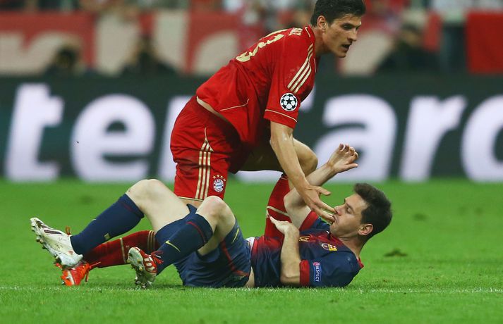 Þýska liðið Bayern München bauð til veislu á Allianz-vellinum í kvöld er liðið kjöldró hið stórkostlega lið Barcelona og vann ótrúlegan 4-0 sigur sem seint mun gleymast. Bayern er því komið með annan fótinn í úrslit Meistaradeildarinnar en þetta var fyrri leikur liðanna í undanúrslitum keppninnar. Leikurinn byrjaði með miklum látum. Bæði lið sóttu af krafti og líf í leiknum. Fyrsta markið kom eftir 25 mínútna leik. Þá endaði þung sókn Bayern með því að Thomas Müller stangaði boltann í netið af stuttu færi. Þýska liðið byrjaði síðari hálfleikinn með látum. Robben tók horn sem flaug yfir á fjærstöng. Þar skallaði Müller boltann fyrir og Gomez mokaði honum yfir línuna. Gomez er mikil markamaskína og þá sérstaklega á heimavelli í Meistaradeildinni. Þetta var hans 15. mark í 14 leikjum á Allianz-vellinum. Veislunni var ekki lokið í Bæjaralandi því Arjen Robben skoraði mark úr þröngu færi eftir magnað einstaklingsframtak og Gomez bætti fjórða markinu við átta mínútum fyrir leikslok. Þetta var í fyrsta skipti síðan árið 2005 að Barcelona fær á sig fjögur mörk í Meistaradeildinni. Chelsea gerði það síðast. Stærsta tap Barcelona í Evrópukeppnum fyrir kvöldið var gegn Dynamo Kiev. Sá leikur endaði 4-0 og fór fram í nóvember árið 1997. Það vonda met var jafnað á þessu skelfilega kvöldi fyrir Barcelona. Leikmenn Bayern gátu aftur á móti leyft sér að fagna en þeir spiluðu hinn fullkomna leik.