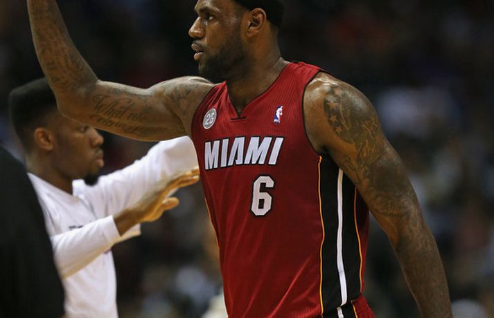LeBron James bestur í NBA í fjórða sinn Óskar Ófeigur Jónsson skrifar 4. maí 2013 11:45 LeBron James. Mynd/NordicPhotos/Getty Bandarískir fjölmiðlar greindu frá því í nótt að LeBron James, leikmaður Miami Heat, hafi verið kosinn mikilvægasti leikmaður NBA-deildarinnar í körfubolta á þessu tímabili og nú er eina spennan hvort að hann hafi fengið fullt hús eða ekki. LeBron James er þar með aðeins fimmti leikmaðurinn í sögunni til að vinna þessi verðlaun fjórum sinnum en hinir í klúbbnum eru þeir Kareem Abdul-Jabbar, Michael Jordan, Bill Russell og Wilt Chamberlain. Ekki slæmur félagsskapur þar. Abdul-Jabbar er sá eini sem hefur eins og James náð því tvisvar sinnum að vera kosinn bestur tvö ár í röð. LeBron James er að vinna þessi verðlaun annað árið í röð og í fjórða sinn á fimm árum en hann fær verðlaunin afhent á morgun. Það hefur enginn fengið fullt hús í þessari kosningu blaðamanna sem fjalla um NBA-deildina en sumir spá því að það gæti gerst núna. James átti magnað tímabil með því liði sem náði langbestum árangri í deildarkeppninni. Hann var með 26,8 stig, 8,0 fráköst og 7,3 stoðsendingar að meðaltali í leik og hitti úr 56 prósent skota sinna. Miami vann 66 af 82 leikjum og þar á meðal 27 leiki í röð se er önnur lengsta sigurganga í sögu NBA-deildarinnar. NBA Mest lesið Hetja Englands á EM sleit krossband Enski boltinn „Búnir að sýna hvað við getum verið lélegir“ Körfubolti Lofar frekari fjárfestingum Enski boltinn Haukur Helgi: Höfum ekki verið að spila góðan körfubolta Körfubolti „Getum verið fjandi góðir“ Körfubolti ÍR áfram eftir sigur í Mosfellsbæ Handbolti Uppgjörið: Þýskaland - Ísland 42-31 | Þrot í Þýskalandi Handbolti Uppgjörið: Valur - Grindavík 55-90 | Taplausir Grindvíkingar kjöldrógu Val Körfubolti Uppgjörið: Keflavík - Þór Þ. 86-82 | Þarf ekki alltaf að vera fallegt ef það virkar Körfubolti KR - ÍA 109-75 | KR-ingar sýndu allar sínar bestu hliðar þegar þeir burstuðu Skagamenn Körfubolti Fleiri fréttir Haukur Helgi: Höfum ekki verið að spila góðan körfubolta „Getum verið fjandi góðir“ Uppgjörið: Álftanes-Njarðvík 93-92 | Heitur Haukur var hetjan á Álftanesinu Uppgjörið: Keflavík - Þór Þ. 86-82 | Þarf ekki alltaf að vera fallegt ef það virkar „Varnarleikur snýst eiginlega bara um að nenna“ Uppgjörið: Valur - Grindavík 55-90 | Taplausir Grindvíkingar kjöldrógu Val „Búnir að sýna hvað við getum verið lélegir“ KR - ÍA 109-75 | KR-ingar sýndu allar sínar bestu hliðar þegar þeir burstuðu Skagamenn Íslandsmeistararnir frá því fyrir sextíu árum heiðursgestir í kvöld „Hann ætti bara að skrifa afsökunarbiblíuna“ Uppgjörið: Njarðvík - Grindavík 85-84| Njarðvík fyrstar til að leggja Grindavík af velli Ótrúleg dramatík í Garðabæ og á Sauðárkróki Landsliðsmennirnir öflugir í Evrópu Jordan gagnrýnir álagsstjórnun í NBA: Þú hefur skyldu til að láta sjá þig Skiptiborð hjá stelpunum í kvöld Var með skattinn á hælunum þegar hann fór í veðmálabraskið Bíll Shaquille O'Neal enn ófundinn Martin öflugur í góðum sigri Öllum leikjum Bónus-deildar kvenna í kvöld frestað Stólarnir ekki í vandræðum á Egilsstöðum Enginn Lakers-maður hafði náð þessu í meira en 52 ár Veðmál rædd í Körfuboltakvöldi: „Bara ævintýralega heimskulegt“ Kvöddu húsið og Nablinn klifraði í kveðjuskyni Martin naut sín í fræknum sigri á meisturum Bayern Tryggvi lykilmaður í sigri Bilbao Elvar skoraði tólf í naumu tapi Tilþrifin: Varin skot og ótrúlegar körfur Valsmanna Þriðja tapið í röð hjá Jóni og félögum Fáránlegt eða klókt hjá Kristófer? „Ef það má þá gerir fólk það“ Brassi tekur við af Billups Sjá meira