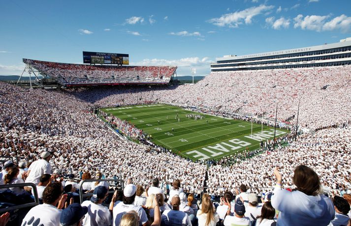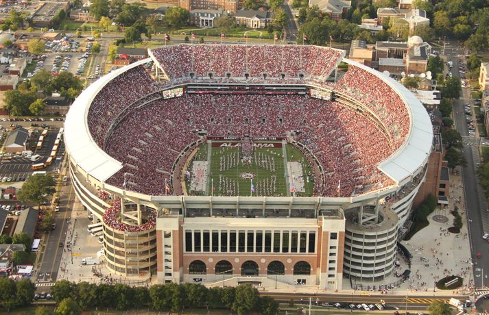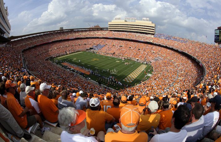 Risaleikvangar í háskólaboltanum | Myndir 2. maí 2013 17:30 Michigan Stadium er sá stærsti. Hér er pláss fyrir um 110 þúsund manns. Háskólaíþróttir í Bandaríkjunum eru afar vinsælar og leikvangarnir sem spilað er á eru í mörgum tilfellum stærri en í atvinnumannaíþróttunum. Texas A&M-skólinn hefur nú ákveðið að eyða 450 milljónum dollara til þess að stækka völlinn sinn. Hann mun því taka 102.500 í stað 82.589. Það verður því sjöunda völlurinn sem getur tekið við yfir 100 þúsund áhorfendum sem er magnað. Það dugar samt aðeins til þess að komast í þriðja sæti yfir stærstu vellina í háskólaboltanum. Bæði Michigan og Penn State geta tekið við fleiri áhorfendum.Stærstu vellirnir í háskólaboltanum. 1. Michigan | Michigan Stadium - 109.901 áhorfendur. 2. Penn State | Beaver Stadium - 106.572 3. Tennessee | Neyland Stadium - 102.455 4. Ohio State | Ohio Stadium - 102.329 5. Alabama Bryant Denny Stadium - 101.821 6. Texas | DKR-Texas Memorial Stadium - 100.119. NFL Mest lesið Grafalvarleg staða: „Þurfum að fara í sársaukafullar aðgerðir“ Handbolti Ógeðslega erfitt og ógeðslega vont en brosir oft í viku á eftir Sport Fram þvertekur fyrir metnaðarleysi og leitar að nýjum þjálfurum Íslenski boltinn „Nú er nóg komið“ Fótbolti Nefna greinar Íslandsmótsins í CrossFit í höfuðið á íslenskum íþróttakonum Sport Gísli semur við Skagamenn Íslenski boltinn Arnór Snær snýr aftur heim Handbolti Skortir Liverpool breidd þrátt fyrir gríðarleg fjárútlát síðasta sumar? Enski boltinn Besta handboltadeild heims missir aðalstyrktaraðila sinn Handbolti Félagið í greiðslustöðvun en borgaði öll laun degi fyrr Enski boltinn Fleiri fréttir Halda HM á hlaupabretti í fyrsta sinn Barcelona skuldar mest en Tottenham er númer tvö Tölur úr Bestu: Bjartur Bjarmi fór í flestar tæklingar af öllum Andri kallaður inn í hópinn fyrir meiddan Hauk Gísli semur við Skagamenn Óskar Smári tekur við Stjörnunni „Við þurfum að vera betri varnarlega“ Mikilvægt fyrir United að hamra járnið meðan það er heitt Félagið í greiðslustöðvun en borgaði öll laun degi fyrr Íslenski körfuboltinn og Grindavík verðlaunuð Arnór Snær snýr aftur heim Besta handboltadeild heims missir aðalstyrktaraðila sinn Grafalvarleg staða: „Þurfum að fara í sársaukafullar aðgerðir“ Bretinn ráðinn tæknilegur ráðgjafi hjá Val Nefna greinar Íslandsmótsins í CrossFit í höfuðið á íslenskum íþróttakonum Fram þvertekur fyrir metnaðarleysi og leitar að nýjum þjálfurum Nýr þjálfari Juventus er með Napoli-húðflúr Eldgos og brjósklos skapa óvissu: „Vonum bara að móðir náttúra leyfi þetta“ Ógeðslega erfitt og ógeðslega vont en brosir oft í viku á eftir „Nú er nóg komið“ NBA-leikmaður með krabbamein Skortir Liverpool breidd þrátt fyrir gríðarleg fjárútlát síðasta sumar? Sádar eru ekki að fara að byggja HM-leikvang ofan á skýjakljúfi Dagskráin í dag: Meistararnir á Króknum, Körfuboltakvöld og allskonar Hetja Englands á EM sleit krossband Lofar frekari fjárfestingum Haukur Helgi: Höfum ekki verið að spila góðan körfubolta „Getum verið fjandi góðir“ Uppgjörið: Álftanes-Njarðvík 93-92 | Heitur Haukur var hetjan á Álftanesinu Uppgjörið: Keflavík - Þór Þ. 86-82 | Þarf ekki alltaf að vera fallegt ef það virkar Sjá meira