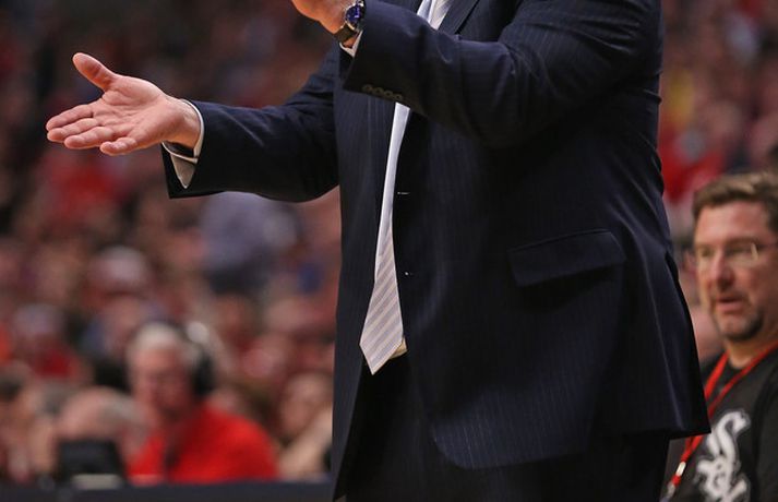 Fékk rúmlega fjögurra milljóna króna sekt Óskar Ófeigur Jónsson skrifar 13. maí 2013 19:30 Tom Thibodeau, þjálfari Chicago Bulls. Mynd/Nordic Photos/Getty Tom Thibodeau, þjálfari Chicago Bulls, var ekki sáttur við dómgæsluna í fyrstu þremur leikjunum í einvígi hans manna og Miami Heat í NBA-deildinni í körfubolta og lét nokkur vafasöm orð fjalla á blaðamannafundi eftir síðasta leik. Miami vann þá 104-94 í Chicago og komst í 2-1 í einvíginu. Forráðamenn NBA-deildarinnar voru allt annað en ánægðir með ummæli Thibodeau og sektuðu hann því um 35 þúsund dollara eða rúmlega 4,2 milljónir íslenskra króna. Thibodeau var sérstaklega ósáttur við LeBron James eftir síðasta leik og ásakaði þá besta leikmann NBA-deildarinnar um leikaraskap. Nazr Mohammed var rekinn út úr húsi í leiknum fyrir að hrinda James. Thibodeau talaði líka um það að dómarar í leikjunum væru ekki að falla með Chicago-liðinu. Fjórði leikur Chicago Bulls og Miami Heat fer fram í Chicago í kvöld en þar getur meistaralið Miami komist í 3-1 í einvíginu. Það lið sem fyrr vinnur fjóra leiki kemst í úrslit Austurdeildarinnar. NBA Mest lesið Uppgjörið: Þýskaland - Ísland 42-31 | Þrot í Þýskalandi Handbolti Líður alltaf yfir hana þegar hún kemur í mark Sport „Hefði séð eftir því alla ævi“ Íslenski boltinn Scholes hættir og setur einhverfan son sinn í fyrsta sætið Enski boltinn KR - ÍA 109-75 | KR-ingar sýndu allar sínar bestu hliðar þegar þeir burstuðu Skagamenn Körfubolti „Mjög sáttur með samninginn“ Íslenski boltinn „Hann ætti bara að skrifa afsökunarbiblíuna“ Körfubolti Uppgjörið: Valur - Grindavík 55-90 | Taplausir Grindvíkingar kjöldrógu Val Körfubolti Rekinn fyrir ummæli sín um krabbameinssjúka handboltagoðsögn Handbolti Uppgjörið: Álftanes-Njarðvík 93-92 | Heitur Haukur var hetjan á Álftanesinu Körfubolti Fleiri fréttir „Getum verið fjandi góðir“ Uppgjörið: Álftanes-Njarðvík 93-92 | Heitur Haukur var hetjan á Álftanesinu Uppgjörið: Keflavík - Þór Þ. 86-82 | Þarf ekki alltaf að vera fallegt ef það virkar „Varnarleikur snýst eiginlega bara um að nenna“ Uppgjörið: Valur - Grindavík 55-90 | Taplausir Grindvíkingar kjöldrógu Val „Búnir að sýna hvað við getum verið lélegir“ KR - ÍA 109-75 | KR-ingar sýndu allar sínar bestu hliðar þegar þeir burstuðu Skagamenn Íslandsmeistararnir frá því fyrir sextíu árum heiðursgestir í kvöld „Hann ætti bara að skrifa afsökunarbiblíuna“ Uppgjörið: Njarðvík - Grindavík 85-84| Njarðvík fyrstar til að leggja Grindavík af velli Ótrúleg dramatík í Garðabæ og á Sauðárkróki Landsliðsmennirnir öflugir í Evrópu Jordan gagnrýnir álagsstjórnun í NBA: Þú hefur skyldu til að láta sjá þig Skiptiborð hjá stelpunum í kvöld Var með skattinn á hælunum þegar hann fór í veðmálabraskið Bíll Shaquille O'Neal enn ófundinn Martin öflugur í góðum sigri Öllum leikjum Bónus-deildar kvenna í kvöld frestað Stólarnir ekki í vandræðum á Egilsstöðum Enginn Lakers-maður hafði náð þessu í meira en 52 ár Veðmál rædd í Körfuboltakvöldi: „Bara ævintýralega heimskulegt“ Kvöddu húsið og Nablinn klifraði í kveðjuskyni Martin naut sín í fræknum sigri á meisturum Bayern Tryggvi lykilmaður í sigri Bilbao Elvar skoraði tólf í naumu tapi Tilþrifin: Varin skot og ótrúlegar körfur Valsmanna Þriðja tapið í röð hjá Jóni og félögum Fáránlegt eða klókt hjá Kristófer? „Ef það má þá gerir fólk það“ Brassi tekur við af Billups „Það er æðislegt að kveðja húsið svona“ Sjá meira