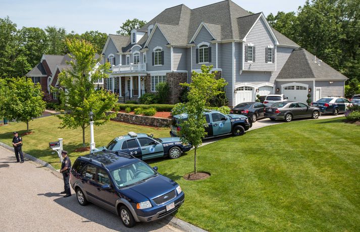 Samkvæmt heimildum bandarískra fjölmiðla virðast það ekki vera spurning um hvort heldur hvenær Aaron Hernandez, leikmaður New England Patriots, verður handtekinn út af morðmáli. Félagi Hernandez fannst látinn nálægt heimili hans á dögunum en hann var skotinn í hnakkann. Í fyrstu var Hernandez ekki grunaður. Það hefur þó mikið breyst á síðustu dögum. Lögreglan leitaði á heimili Hernandez í annað sinn í gær og var í þrjá og hálfan tíma heima hjá honum í gær. Lögreglan var með tvo hunda með sér. Er lögreglan yfirgaf svæðið var hún með fimmtán poka af sönnunargögnum. Hernandez eyðilagði símann sinn og öryggiskerfið í húsinu. Lögreglan telur hann vera að eyðileggja sönnungargögn. Hernandez átti frábært tímabil með Patriots í fyrra en fátt bendir til þess að hann verði að spila amerískan fótbolta næstu árin.
