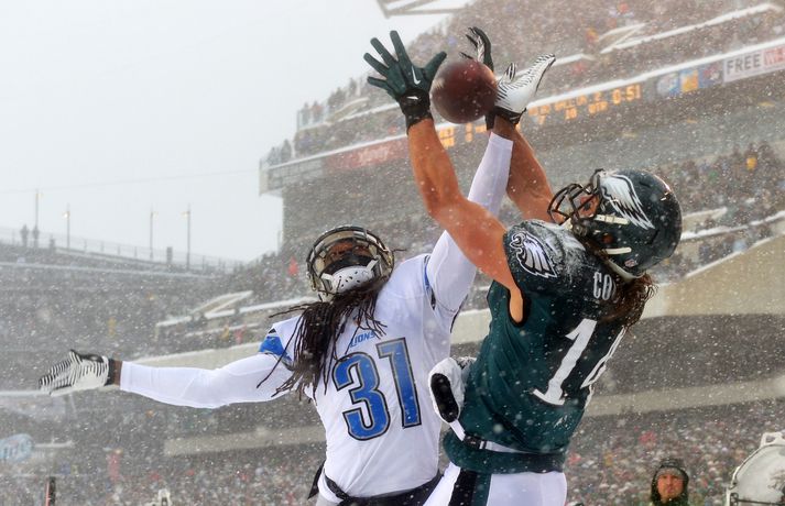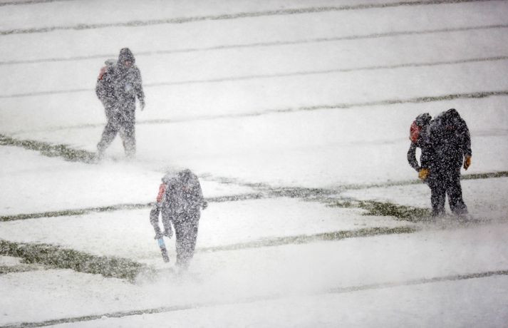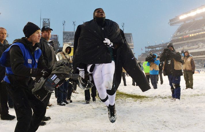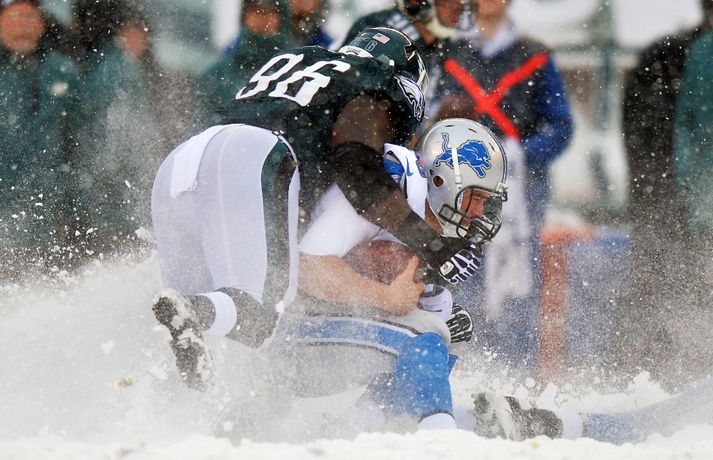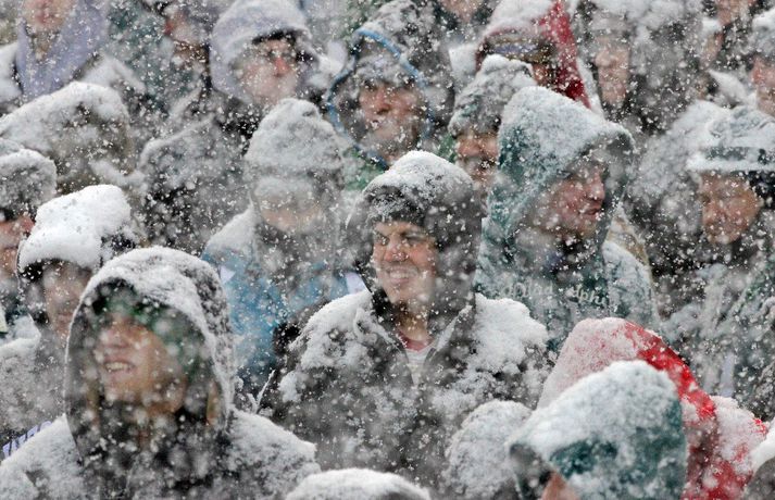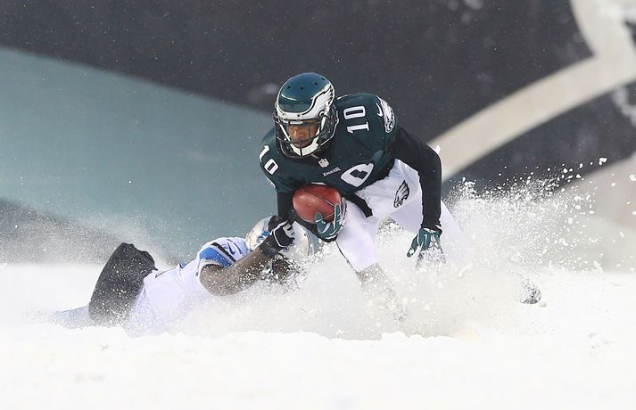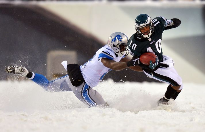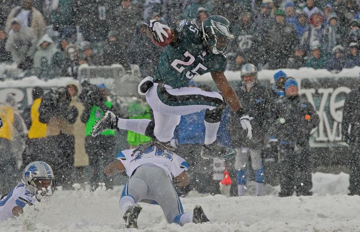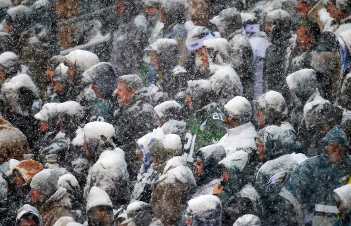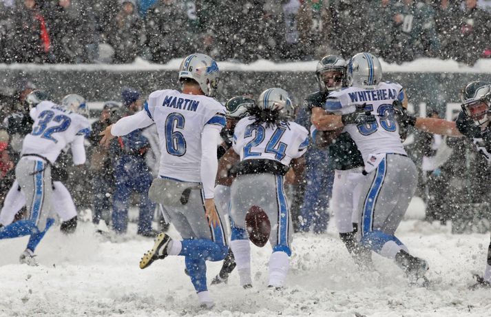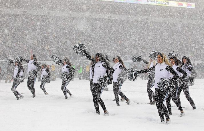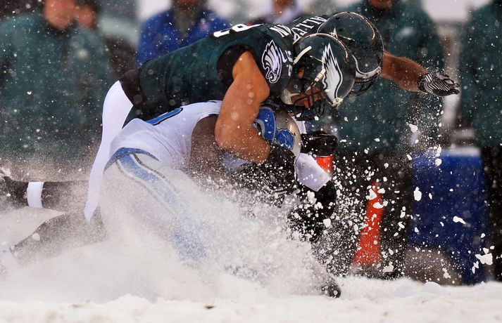 Það er spilað í NFL-deildinni alveg sama hvernig veðrið er. Því fengu leikmenn Philadelphia Eagles og Detroit Lions að kynnast í gær í eftirminnilegum leik. Það voru snjóskaflar á vellinum og snjónum kyngdi niður lungann úr leiknum. Svo mikil var snjókoman að vart sást inn á völlinn lengi vel og leikmenn áttu hreinlega erfitt með að fóta sig á vellinum. Leikmenn Philadelphia kunnu þó betur við sig í snjónum því þeir unnu sannfærandi sigur, 34-20. Magnaðar myndir úr þessum ótrúlega leik má sjá hér að ofan.nordicphotos/getty