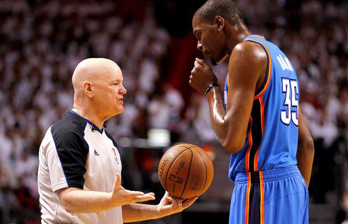 Handaband NBA-dómarans Joey Crawford var kröftugt þegar hann kynnti sig fyrir blaðamanni á fundi Körfuknattleikssambandsins í Laugardalnum í gær. Þekktasti dómarinn í sinni íþrótt í heiminum lék á als oddi og hafði gaman af að spjalla við viðstadda. „Lífið snerist um körfubolta í hverfinu mínu sem krakki,“ segir Crawford sem ólst upp í Philadelphiu. Hann segir alla hafa spilað körfubolta frá morgni til kvölds og að margir verið mjög góðir. „Ég var meðalmaður í besta falli,“ segir Crawford og bætir við um hæl: „Þess vegna varð ég dómari.“ Bandaríkjamaðurinn, sem er nýorðinn 62 ára og var í banastuði á fundinum í gær, segir það hafa haft mikil áhrif á starfsferil sinn að faðir hans var einnig dómari en reyndar í atvinnumannadeildinni í hafnabolta. „Frá því ég var krakki og fór á leiki í fótbolta, körfubolta, boxi og hverju sem er var athygli mín alltaf á dómurunum,“ segir Crawford. Hann byrjaði að dæma átján ára en segist hafa vitað fjórtán ára gamall að hann vildi dæma í NBA.Spurt hvort hann væri geðveikur „Ég sagði krökkunum og kennurunum mínum í menntaskóla frá markmiðum mínum. Þau höfðu rétt fyrir sér þegar þau spurðu mig hvort ég væri geðveikur,“ segir Crawford og hlær. Metnaður hans og áhugi hefur hins vegar skilað honum langt. Þegar hann mætti í dómaraprufur fyrir NBA-deildina aðeins 21 árs gamall, árið 1972, göptu menn. Hann kunni þetta allt saman. Crawford er hér á landi líkt og Zsolt Hartyani hjá Evrópska körfuknattleikssambandinu í tilefni 50 ára afmælis Körfuknattleiksdómarafélags Íslands. Nokkur munur er á körfuboltanum vestanhafs og í Evrópu. Crawford segir óskandi að reglurnar væru alls staðar eins líkt og í knattspyrnu. Crawford setur spurningarmerki við þá reglu í Evrópu að dómarar þurfi að hætta störfum þegar þeir ná fimmtugu. „Ég væri því hættur fyrir langa löngu ef ég dæmdi hérna,“ segir Crawford. Hann segir það synd að dómarar í álfunni þurfi að hætta á besta aldri. „Þú missir fyrir vikið góða dómara og mikla reynslu úr körfuboltanum.“ Dick Bavetta er dæmi um slíkt en Bandaríkjamaðurinn, sem er á 74. aldursári, er enn í fullu fjöri og sinnir dómgæslu í NBA-deildinni. „Hann er stöðugt í ræktinni til að standa framar öðrum dómurum,“ segir Crawford, sem er vel þekktur í heimalandi sínu. Mörgum hefur þótt hann of gjarn við að gefa leikmönnum tæknivillur í gegnum tíðina. Þá vöktu samskipti hans við Tim Duncan, miðherja San Antonio Spurs, athygli á miðjum síðasta áratug. Lauk einum viðskiptum þeirra Crawfords á þann veg að dómarinn var settur í hlé af forsvarsmönnum deildarinnar. Sakaði Duncan landa sinn um að hafa spurt sig hvort hann vildi slást við sig þegar upp úr sauð í leik.Neikvætt starf „Ég gerði mistök og lærði af þeim,“ segir Crawford, sem missti af síðustu vikum tímabilsins vorið 2007. Hann mætti þó sterkur til leiks um haustið eftir að hafa leitað hjálpar hjá sálfræðingi. Hann segir eitt það mikilvægasta í starfi dómara að þeir geti tekið gagnrýni og viðurkennt mistök. Menn þurfi að geta gengið inn í búningsherbergi eftir leiki og horfst í augu við slaka frammistöðu. „Fólk á almennt erfitt með að viðurkenna mistök. En þegar dómarar komast yfir þessa hindrun bæta þeir sig hratt.“ Crawford, sem situr fyrir svörum á opnum fundi fyrir íslenska körfuknattleiksunnendur í Laugardalshöll klukkan 13 í dag, segir að dómarastarf sé neikvætt. Menn bendi honum reglulega á að þeir ættu að vera jákvæðir og skemmtilegir. Þannig virki hlutirnir hins vegar ekki og rifjar hann upp sjötta leik Miami Heat og San Antonio Spurs í úrslitaeinvíginu í vor til að styðja mál sitt. Þá hafi dómaratríóið gengið inn í búningsklefa, afar sátt við eigin frammistöðu og síminn fyllst af jákvæðum sms-skilaboðum. Svo hafi eitt borist frá kollega þeirra, Scott Foster: „Þið klúðruðuð skiptingu.“ „Svona er okkar starf,“ segir Crawford. Hans hlutverk sé að gera sitt besta og lágmarka mistökin. Að hleypa varamanni inn á völlinn á röngum tímapunkti hafi vissulega verið mistök. „Við þökkum guði fyrir að sú ákvörðun hafði ekki áhrif á leikinn.“