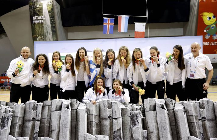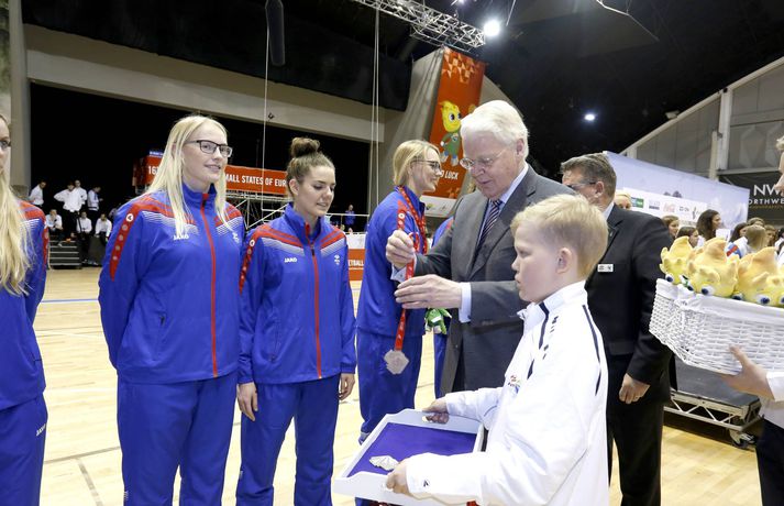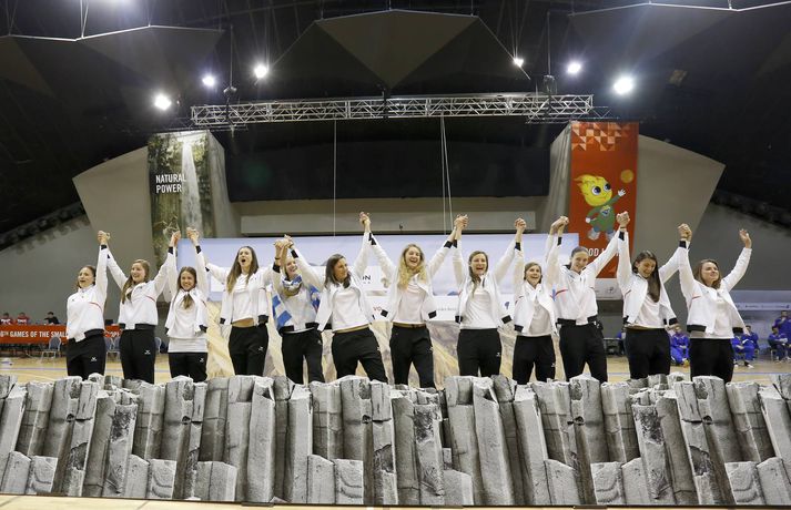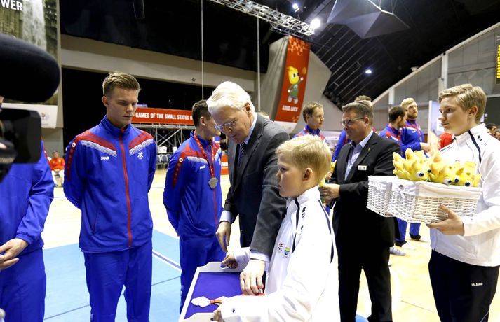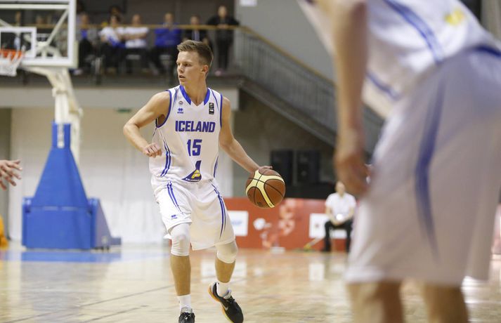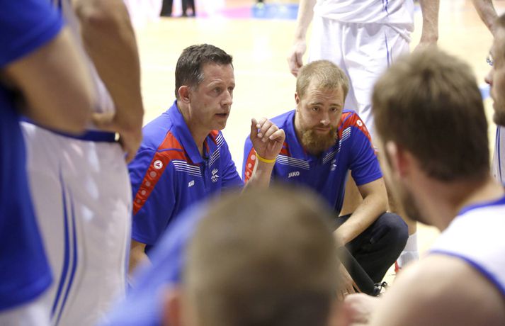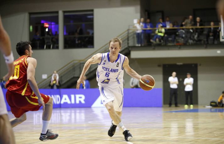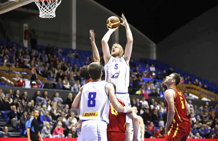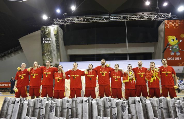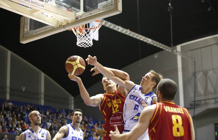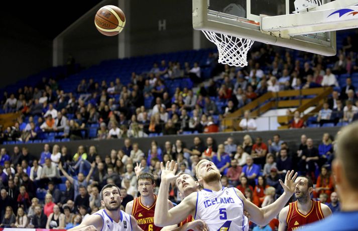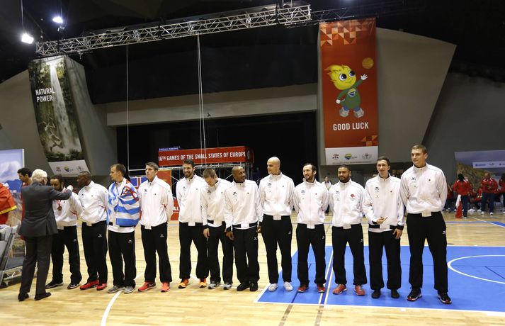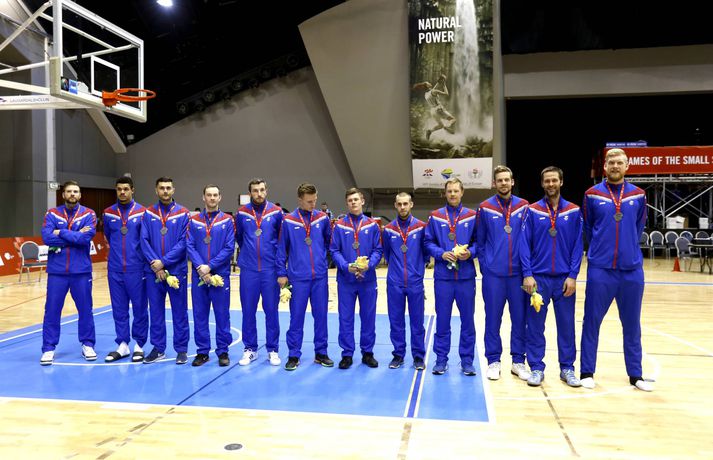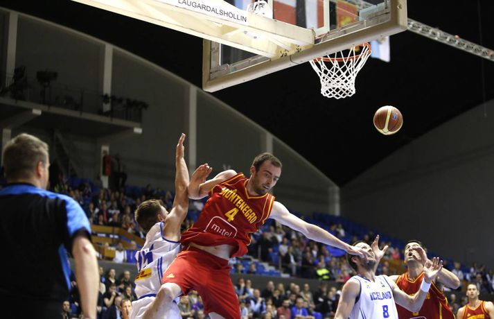 Umfjöllun, viðtöl og myndir: Ísland - Svartfjallaland 84-102 | Strákarnir fengu líka silfur Tómas Þór Þórðarson í Laugardalshöll skrifar 6. júní 2015 17:30 Íslensku strákarnir með silfrið í Höllinni í dag. vísir/andri marinó Ísland tapaði úrslitaleiknum gegn Svartfjallalandi í körfuboltakeppni karla á Smáþjóðaleikunum í Laugardalshöll í dag, 102-84, og varð að sætta sig við silfrið í enn eitt skiptið. Það verður einfaldlega að segja að Svartfellingarnir voru miklu sterkari eins og tölurnar gefa til kynna, en íslenska liðið átti í miklum vandræðum með vel mannað lið gestanna. Svartfjallaland spilaði firnasterka vörn og græddi á henni mikið af auðveldum stigum. Íslensku strákarnir töpuðu boltanum í fyrstu þremur sóknum sínum á meðan gestirnir skoruðu níu stig í röð. Svartfellingarnir eru stórir og sterkir og áttu auðvelt með að skora undir körfunni til að byrja með. En þeir hættu því fljótlega og fóru bara að skjóta fyrir utan. Hittni svartfellsku leikmannanna fyrir utan var engu lagi lík í fyrri hálfleik. Eiginlega bara algjört rugl. "Ég hef ekki séð svona áður. Ekki síðan ég var í þessu," sagði Einar Bollason léttur í bragði en samt furðu lostinn við blaðamenn í hálfleik. Svartfellingar hittu úr tólf af 22 skotum sínum fyrir utan og voru með 55 prósent nýtingu fyrir utan þriggja stiga línuna. Það var sama hvað þeir reyndu, nánast allt fór ofan í. Þá voru þeir með 83 prósent nýtingu úr teignum. Íslensku strákarnir fóru erfiðlega af stað en unnu sig inn í leikinn og minnkuðu muninn niður í tíu stig, 47-37, þegar um tvær og hálf mínúta var eftir af fyrri hálfleik. Svartfellingar gáfu þá í og voru með 20 stiga forskot í hálfleik. Þar munaði um þrjá þrista sem liðið setti á lokakaflanum.Ragnar Nathanaelsson rís hæst í teig Svartfellinga í kvöld.vísir/andri marinóLogi Gunnarsson byrjaði vel fyrir Ísland og skoraði tólf stig í fyrri hálfleik, þar af þrjá þrista úr fjórum tilranum. Íslenska liðið hitti úr sex af 13 fyrir utan í fyrri hálfleik sem er mjög nýting en ekkert á miðað við Svartfellingana. Eftir skrekk í byrjun var sóknarleikur íslenska liðsins betri og fóru þeir að finna Hlyn undir körfunni með flottu spili, en fyrirliðinn skoraði tólf stig í fyrri hálfleik. Munurinn þó 20 stig þegar liðin gengu til búningsklefa, 61-41. Ísland vann þriðja leikhlutann með þremur stigum og hélt Svartfjallalandi í 15 stigum. Mikið munaði um að gestirnir hættu að hitta eins og óðir menn fyrir utan og settu aðeins niður einn þrist af sex í þriðja leikhluta. Síðasti fjórðungurinn var svo bara spurning um hversu stór sigurinn yrði, en mínúturnar mikilvægar fyrir Craig Pedersen og aðstoðarmenn hans til að sjá liðið spila keppnisleiki í aðdraganda stóru stundarinnar. Okkar menn hættu þó ekkert og létu valta yfir sig á endasprettinum, þvert á móti. Martin Hermannsson, sem spilaði vel í leiknum og skoraði 11 stig, setti niður þrist og í kjölfarið gerði Jakob slíkt hið saman efti að Kristófer varði skot með tilþrifum.Fyrirliðinn Hlynur Bæringsson var stigahæstur í kvöld með 19 stig.vísir/andri marinóÞeir minnkuðu muninn niður í þrettán stig og fór þá aðeins um Svartfellingana. Elvar Már Friðriksson kom inn á í fjórða leikhlutanum og setti einnig niður þriggja stiga skot, en íslenska liðið fékk framlag úr öllum áttum. Bilið var þó of stórt þar sem Svartfjallaland náði með 23 stiga forystu, 87-64, en endaspretturinn flottur hjá okkar strákum. Lokatölur, 102-84, og mikilvægar mínútur komnar í erfiðum keppnisleik í aðdraganda stóru stundarinnar. Strákarnir eru auðvitað að fara á Evrópumótið í Berlín seinna í sumar og var leikurinn því góð æfing fyrir það, en í Berlín mun íslenska liðið mæta liðum sem eru mun betri en Svartfjallaland. Það hefði verið gaman að sjá hvernig leikurinn hefði spilað ef Jón Arnór, Haukur Helgi, Hörður Axel og Pavel væru með, en að sama skapi fengu leikmenn sem reyna að spila sig inn í EM-hópinn gott tækifæri til að sanna sig. Hlynur Bæringsson var stigahæstur í kvöld með 19 stig og fimm fráköst, en Jakob Örn Sigurðarson skoraði 17 stig og tók sjö fráköst. Logi Gunnarsson spilaði einnig vel og skoraði 14 stig. Þá var Kristófer Acox nokkuð öflugur í varnarleiknum og tók níu fráköst og varði þrjú skot. Silfrið staðreynd hjá okkar strákum en besta liðið, Svartfjallaland, sannfærandi sigurvegarar á 16. Smáþjóðaleikunum.Ísland - Svartfjallaland 84-102 (18-28, 23-33, 18-15, 25-26)Ísland: Hlynur Elías Bæringsson 19/5 fráköst, Jakob Örn Sigurðarson 17/7 fráköst, Logi Gunnarsson 14, Martin Hermannsson 11/5 stoðsendingar, Elvar Már Friðriksson 6, Ægir Þór Steinarsson 6/6 stoðsendingar, Kristófer Acox 4/9 fráköst, Brynjar Þór Björnsson 3, Ragnar Ágúst Nathanaelsson 2/5 fráköst, Helgi Már Magnússon 2.Svartfjallaland: Milutin Dukanovic 15, Suad Sehovic 15/4 fráköst, Vladimir Dasic 13/5 fráköst, Blagota Sekulic 11, Nemanja Milosevic 10, Nikola Pavlicevic 10/6 stoðsendingar, Radosav Spasojevic 9, Nemanja Vranjes 9/5 fráköst/5 stoðsendingar, Aleksa Popovic 8, Petar Popovic 2.Craig Pedersen ræðir við strákana í leikhléi í leiknum í kvöld.vísir/andri marinóCraig: Lærðum hvernig við nálgumst leikina á EM. "Eftir hæga byrjun gerðum við fullt af góðum hlutum. Við skorum 84 stig á móti góðu, stóru og sterku liði," sagði Craig Pedersen, þjálfari Íslands, við Vísi eftir leik. "Við fengum mikið af góðum skotum sem er eitthvað sem við verðum að gera á EM." Leikurinn í dag var fínt próf fyrir EM þar sem Ísland mætir nokkrum af allra sterkustu körfuboltaþjóðum heims. "Þetta er lið sem við þurfum að spila gegn 
