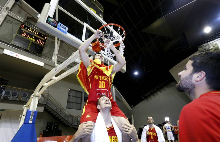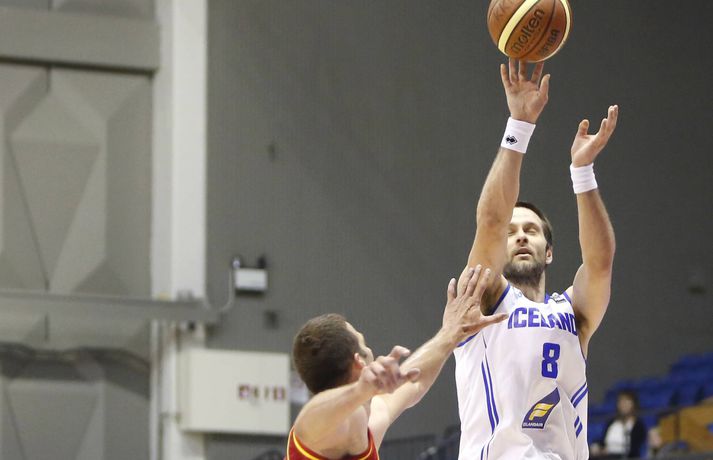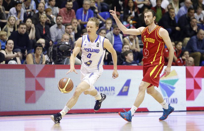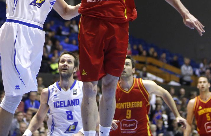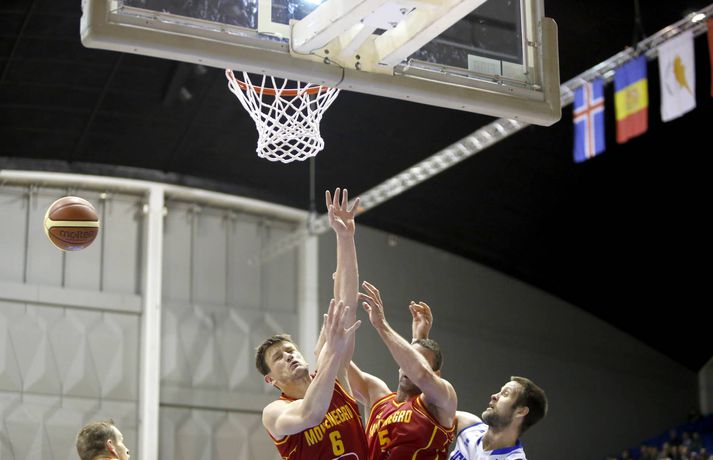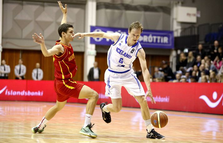 Ísland tapaði úrslitaleiknum gegn Svartfjallalandi í körfuboltakeppni karla á Smáþjóðaleikunum í Laugardalshöll í dag, 102-84, og varð að sætta sig við silfrið í enn eitt skiptið. Það verður einfaldlega að segja að Svartfellingarnir voru miklu sterkari eins og tölurnar gefa til kynna, en íslenska liðið átti í miklum vandræðum með vel mannað lið gestanna. Svartfjallaland spilaði firnasterka vörn og græddi á henni mikið af auðveldum stigum. Íslensku strákarnir töpuðu boltanum í fyrstu þremur sóknum sínum á meðan gestirnir skoruðu níu stig í röð. Svartfellingarnir eru stórir og sterkir og áttu auðvelt með að skora undir körfunni til að byrja með. En þeir hættu því fljótlega og fóru bara að skjóta fyrir utan. Hittni svartfellsku leikmannanna fyrir utan var engu lagi lík í fyrri hálfleik. Eiginlega bara algjört rugl. "Ég hef ekki séð svona áður. Ekki síðan ég var í þessu," sagði Einar Bollason léttur í bragði en samt furðu lostinn við blaðamenn í hálfleik. Svartfellingar hittu úr tólf af 22 skotum sínum fyrir utan og voru með 55 prósent nýtingu fyrir utan þriggja stiga línuna. Það var sama hvað þeir reyndu, nánast allt fór ofan í. Þá voru þeir með 83 prósent nýtingu úr teignum. Íslensku strákarnir fóru erfiðlega af stað en unnu sig inn í leikinn og minnkuðu muninn niður í tíu stig, 47-37, þegar um tvær og hálf mínúta var eftir af fyrri hálfleik. Svartfellingar gáfu þá í og voru með 20 stiga forskot í hálfleik. Þar munaði um þrjá þrista sem liðið setti á lokakaflanum.Ragnar Nathanaelsson rís hæst í teig Svartfellinga í kvöld.vísir/andri marinóLogi Gunnarsson byrjaði vel fyrir Ísland og skoraði tólf stig í fyrri hálfleik, þar af þrjá þrista úr fjórum tilranum. Íslenska liðið hitti úr sex af 13 fyrir utan í fyrri hálfleik sem er mjög nýting en ekkert á miðað við Svartfellingana. Eftir skrekk í byrjun var sóknarleikur íslenska liðsins betri og fóru þeir að finna Hlyn undir körfunni með flottu spili, en fyrirliðinn skoraði tólf stig í fyrri hálfleik. Munurinn þó 20 stig þegar liðin gengu til búningsklefa, 61-41. Ísland vann þriðja leikhlutann með þremur stigum og hélt Svartfjallalandi í 15 stigum. Mikið munaði um að gestirnir hættu að hitta eins og óðir menn fyrir utan og settu aðeins niður einn þrist af sex í þriðja leikhluta. Síðasti fjórðungurinn var svo bara spurning um hversu stór sigurinn yrði, en mínúturnar mikilvægar fyrir Craig Pedersen og aðstoðarmenn hans til að sjá liðið spila keppnisleiki í aðdraganda stóru stundarinnar. Okkar menn hættu þó ekkert og létu valta yfir sig á endasprettinum, þvert á móti. Martin Hermannsson, sem spilaði vel í leiknum og skoraði 11 stig, setti niður þrist og í kjölfarið gerði Jakob slíkt hið saman efti að Kristófer varði skot með tilþrifum.Fyrirliðinn Hlynur Bæringsson var stigahæstur í kvöld með 19 stig.vísir/andri marinóÞeir minnkuðu muninn niður í þrettán stig og fór þá aðeins um Svartfellingana. Elvar Már Friðriksson kom inn á í fjórða leikhlutanum og setti einnig niður þriggja stiga skot, en íslenska liðið fékk framlag úr öllum áttum. Bilið var þó of stórt þar sem Svartfjallaland náði með 23 stiga forystu, 87-64, en endaspretturinn flottur hjá okkar strákum. Lokatölur, 102-84, og mikilvægar mínútur komnar í erfiðum keppnisleik í aðdraganda stóru stundarinnar. Strákarnir eru auðvitað að fara á Evrópumótið í Berlín seinna í sumar og var leikurinn því góð æfing fyrir það, en í Berlín mun íslenska liðið mæta liðum sem eru mun betri en Svartfjallaland. Það hefði verið gaman að sjá hvernig leikurinn hefði spilað ef Jón Arnór, Haukur Helgi, Hörður Axel og Pavel væru með, en að sama skapi fengu leikmenn sem reyna að spila sig inn í EM-hópinn gott tækifæri til að sanna sig. Hlynur Bæringsson var stigahæstur í kvöld með 19 stig og fimm fráköst, en Jakob Örn Sigurðarson skoraði 17 stig og tók sjö fráköst. Logi Gunnarsson spilaði einnig vel og skoraði 14 stig. Þá var Kristófer Acox nokkuð öflugur í varnarleiknum og tók níu fráköst og varði þrjú skot. Silfrið staðreynd hjá okkar strákum en besta liðið, Svartfjallaland, sannfærandi sigurvegarar á 16. Smáþjóðaleikunum.Ísland - Svartfjallaland 84-102 (18-28, 23-33, 18-15, 25-26)Ísland: Hlynur Elías Bæringsson 19/5 fráköst, Jakob Örn Sigurðarson 17/7 fráköst, Logi Gunnarsson 14, Martin Hermannsson 11/5 stoðsendingar, Elvar Már Friðriksson 6, Ægir Þór Steinarsson 6/6 stoðsendingar, Kristófer Acox 4/9 fráköst, Brynjar Þór Björnsson 3, Ragnar Ágúst Nathanaelsson 2/5 fráköst, Helgi Már Magnússon 2.Svartfjallaland: Milutin Dukanovic 15, Suad Sehovic 15/4 fráköst, Vladimir Dasic 13/5 fráköst, Blagota Sekulic 11, Nemanja Milosevic 10, Nikola Pavlicevic 10/6 stoðsendingar, Radosav Spasojevic 9, Nemanja Vranjes 9/5 fráköst/5 stoðsendingar, Aleksa Popovic 8, Petar Popovic 2.Craig Pedersen ræðir við strákana í leikhléi í leiknum í kvöld.vísir/andri marinóCraig: Lærðum hvernig við nálgumst leikina á EM. "Eftir hæga byrjun gerðum við fullt af góðum hlutum. Við skorum 84 stig á móti góðu, stóru og sterku liði," sagði Craig Pedersen, þjálfari Íslands, við Vísi eftir leik. "Við fengum mikið af góðum skotum sem er eitthvað sem við verðum að gera á EM." Leikurinn í dag var fínt próf fyrir EM þar sem Ísland mætir nokkrum af allra sterkustu körfuboltaþjóðum heims. "Þetta er lið sem við þurfum að spila gegn því öll liðin á EM verða svona góð og svona líkamlega sterk. Vonandi verða liðin á EM ekki með svona hitti samt," sagði Craig og brosti. "Við áttum í vandræðum með ákveðna hluti sem við vissum að gætu orðið vandamál gegn s