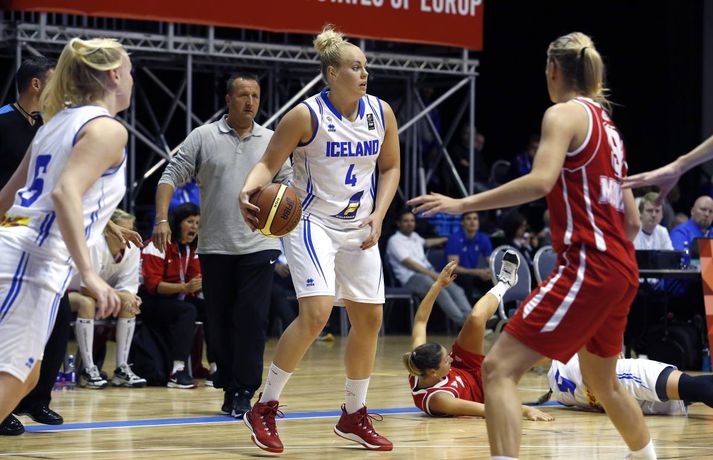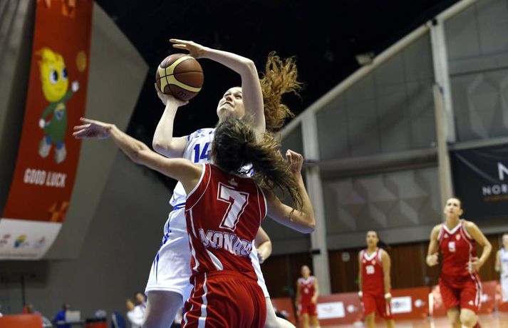 Umfjöllun, viðtöl og myndir: Ísland - Mónakó 81-55 | Stelpurnar tryggðu sér úrslitaleik Tómas Þór Þórðarson í Laugardalshöll skrifar 4. júní 2015 11:58 Hildur Björg Kjartansdóttir sækir að körfunni. vísir/ernir Íslenska kvennalandsliðið í körfubolta tryggði sér úrslitaleik gegn Lúxemborg um gullið á Smáþjóðaleikunum með auðveldum sigri á Mónakó, 81-55, í Laugardalshöll í kvöld.Ernir Eyjólfsson, ljósmyndari Fréttablaðsins og Vísis, var á vellinum og tók myndirnar sem fylgja fréttinni. Mónakó-liðið, sem tapaði með 30 stigum gegn Lúxemborg, var engin fyrirstaða fyrir íslenska liðið í kvöld sem hefði þó getað gert endanlega út við leikinn löngu áður en svo fór. Stelpurnar fóru afar hægt af stað í gær gegn Möltu en sú var ekki raunin í kvöld. Ísland komst fljótlega í 19-6 og þá var ljóst í hvað stefndi. Margrét Rósa Hálfdánardóttir, sem skoraði tíu stig á síðustu tólf mínútunum í fyrsta leiknum, fór mjög vel af stað og spilaði í heildina frábærlega. Margrét Rósa virðist í fantaformi eftir dvöl í háskóla í Bandaríkjunum í vetur, en hún skoraði 14 stig í kvöld. Mónakó minnkaði muninn í níu stig, 35-26, þegar fjórar mínútur voru eftir af fyrri hálfleik en þá sögðu stelpurnar hingað og ekki lengra. Skellt var í lás í varnarleiknum sem gaf liðinu auðveld stig, en Ísland skoraði tólf síðustu stig fyrri hálfleiks og var 21 stigi yfir eftir 20 mínútna leik, 47-26. Stelpurnar voru að hitta vel, en þær voru bæði með 50 prósent nýtingu innan sem utan teigs í fyrri hálfleiknum. Í síðari hálfleik náði Mónakó-liðið að koma með einstaka spretti á íslenska liðið sem virtist ekki alveg nógu gírað í að drepa leikinn algjörlega. Það var ekki fyrr en síðustu mínúturnar að "varamennirnir" settu aftur í fimmta gírinn þegar Ívar var búinn að taka byrjunarliðið af velli sem stigin fóru aftur að hrannast inn og 26 stiga sigur staðreynd. Helena Sverrisdóttir lenti í villuvandræðum í kvöld og spilaði "aðeins" 24 mínútur. Hún varð engu að síður stigahæst með 16 stig, 9 fráköst og 6 stoðsendingar. Eins og gegn Möltu gekk henni best þegar hún sótti að körfunni. Hildur Björg heldur áfram að spila eins og herforingi undir körfunni, en hún gældi við tvennuna með 9 stigum og 10 fráköstum í kvöld. Sigurinn tryggði Íslandi úrslitaleik gegn Lúxemborg sem fyrr segir, en hann fer fram á laugardaginn klukkan 13.30.Ísland - Mónakó 81-55 (23-13, 24-13, 12-21, 22-8) Ísland: Helena Sverrisdóttir 16/9 fráköst/6 stoðsendingar, Margrét Rósa Hálfdanardóttir 14, Pálína María Gunnlaugsdóttir 11/6 fráköst, Hildur Björg Kjartansdóttir 9/10 fráköst/5 varin skot, Sara Rún Hinriksdóttir 9/6 fráköst, Bryndís Guðmundsdóttir 6, Sigrún Sjöfn Ámundadóttir 5, Gunnhildur Gunnarsdóttir 5, Petrúnella Skúladóttir 2, Ragna Margrét Brynjarsdóttir 2, Auður Íris Ólafsdóttir 1, Guðbjörg Sverrisdóttir 1.Mónakó: Jezabel Richard 20/4 fráköst, Maeva Blanchi 11, Stephanie Cyprien 11, Pauline Machu 7/5 fráköst, Marianne Cipan 5, Marine Peglion 1/9 fráköst/9 stoðsendingar/5 stolnir, Diana Chattahy 0, Lisa Lepers 0, Margaux Varvello 0.Ívar: Smá kæruleysi í þessu "Við vorum allt í lagi í fyrri hálfleik og hittum mjög vel og fengum gott flæði í sóknina," sagði Ívar Ásgrímsson, þjálfari Íslands, við Vísi eftir sigurinn í kvöld. "Í seinni hálfleik vantaði okkur bara drápseðlið. Við vorum sátt við að reyna að vinna þennan leik. Það var eina sem vantaði því við vorum alltaf með leikinn í höndunum." "Við gáfum síðan aðeins í undir lokin, en við hefðum getað klárað þetta fyrr. Við urðum kærulaus og fórum að skjóta of mörgum þristum." Varnarleikur Mónakó-liðsins var upp og ofan, en íslenska liðið fékk nóg af færum til að skjóta. "Stelpurnar voru svo opnar og fengu mikið af fríum skotum og þá getur verið erfitt að skjóta ekki. Það var kannski aðeins of mikið verið að hugsa um leikinn á móti Lúxemborg," sagði Ívar. "Þetta var auðveldur sigur en við slökuðum bara of mikið á." Með sigrinum tryggði Ísland sér úrslitaleik gegn Lúxemborg sem vann síðustu Smáþjóðaleika eftir úrslitaleik gegn Íslandi. "Við erum búin að sýna það að okkar góðu kaflar eru mjög góðir. Við þurfum bara að lengja þá," sagði Ívar. "Nú reynir á okkur á móti stóru liði Lúxemborg sem er grimmt í vörninni. Þar verðum við pressuð um allan völl og þar þurfum við að vera góð í hausnum," sagði Ívar Ásgrímsson.Margrét Rósa: Þetta verður ekkert Mónakó á Laugardaginn "Þegar þetta var komið í 20 stig fórum við að hugsa um að nýta þetta sem æfingaleik," sagði Margrét Rósa Hálfdánardóttir við Vísi eftir leik. "Við leyfðum bara öllum að spila og reyndum að fara yfir kerfin og spila góða vörn." "Þær keyrðu stundum á okkur þegar við vorum að gera smá mistök í varnarleiknum. Þá vantaði smá einbeitingu." "Inn á milli komu góðir kaflar og við vorum með stemninguna okkar megin. Við náðum að rífa stemninguna upp meira í seinni hálfleik," sagði Margrét. Margrét Rósa spilaði frábærlega í síðasta leik og skoraði tíu stig á síðustu tólf mínútunum. Í dag var Margrét næststigahæst með 14 stig. Hún fór í háskóla í Bandaríkjunum síðasta sumar og spilaði úti í allan vetur. Það hefur hjálpað henni. "Mér líður mjög vel og ég ætlaði bara að nýta þetta. Mér finnst ég hafa bætt í Bandaríkjunum þannig ég ætla bara að nýta þessa leiki og sýna mig," sagði Margrét Rósa sem er spennt fyrir úrslitaleiknum. "Það verður hörkuleikur. Við verðum klárar í þann leik. Það verður ekkert Mónakó," sagði hún brosmild að lokum.[Bein lýsing]40. mín (81-55) LEIK LO