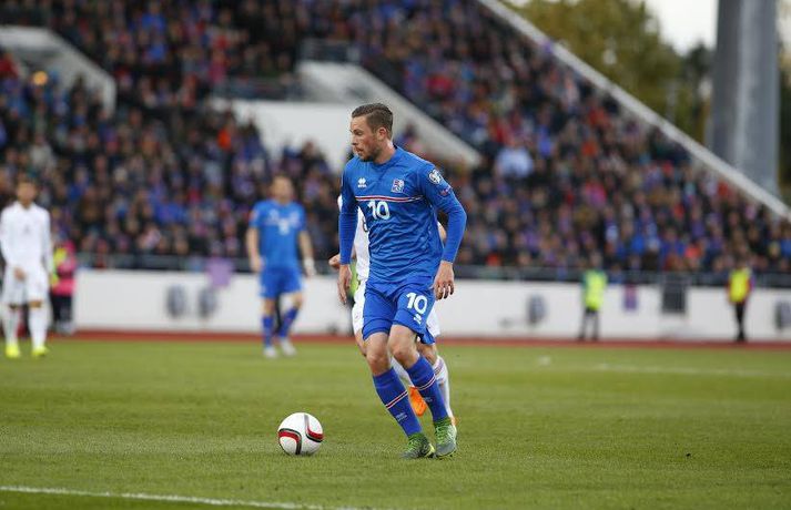 Íslenska karlalandsliðið er að fara á kostum gegn Lettlandi í seinasta heimaleik liðsins í undankeppni EM 2016 sem fer fram í Laugardalnum þessa stundina en Ísland leiðir 2-0 í hálfleik. Vilhelm Gunnarsson, ljósmyndari Fréttablaðsins og Vísis, er á vellinum og smellti þessum skemmtilegu myndum sem sjá má hér fyrir ofan sem og fyrir neðan.Sjá einnig: Bein textalýsing frá leik Íslands og Lettlands í Laugardalnum. Strákarnir okkar hafa þegar tryggt sæti sitt á lokakeppni EM með jafnteflinu gegn Kasakstan á dögunum en Ísland leikur í fyrsta sinn á lokakeppni stórmóts í karlaflokki næsta sumar. Þrátt fyrir það er ekki að sjá neitt annað á leikmönnunum að þeir ætli að þakka íslensku stuðningsmönnunum með látum en Kolbeinn Sigþórsson kom Íslandi yfir eftir fimm mínútna leik. Gylfi Þór Sigurðsson bætti við öðru marki Íslands á 27. mínútu eftir frábært einstaklingsframtak en óhætt er að segja að íslenska liðið hafi stýrt leiknum frá fyrstu mínútu. Hægt er að fylgjast með beinni lýsingu Vísis af vellinum hér.Gylfi Þór tekur hér aukaspyrnu í upphafi leiks.Vísir/Vilhelm