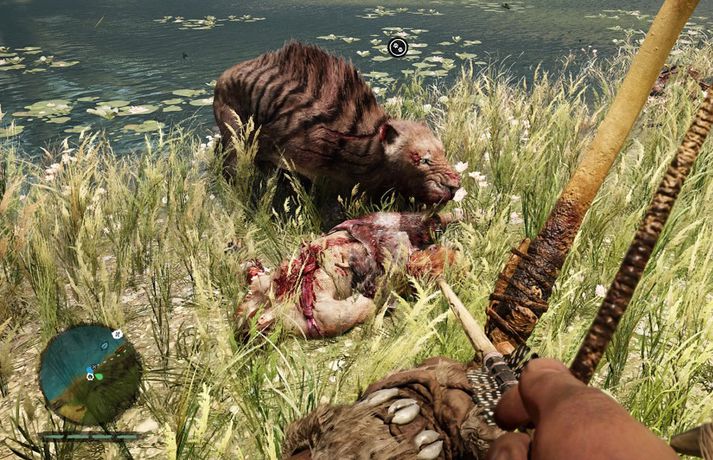 Þrátt fyrir að vera á marga vegu líkur forverum sínum, er nýjasti Far Cry leikurinn, Primal, í grunninn mjög frábrugðinn þeim. Far Cry leikirnir eru fyrst og fremst gerðir til að vera skemmtilegir og veita spilurum frelsi til að valda usla á fjölbreyttan hátt í stórum opnum heimi og þar er FCP engin undantekning. Síðast þegar undirritaður skrifaði dóm um Far Cry leik, sagði ég: „Líklega mun það ekki borga sig fyrir Ubisoft að leika sama leikinn þrisvar, ef svo má að orði komast, og vonandi verður meiri framþróun í næsta Far Cry leik.“ Í stað þess að fara fram á við ákvað Ubisoft hins vegar að farið yrði til baka. Nánar tiltekið um tólf þúsund ár aftur í tímann. Ekki er hægt að segja annað en að það hafi verið góð ákvörðun að taka. Leikurinn gerist árið tíu þúsund fyrir Krist, í landinu Oros í norðanverðri Evrópu. Veiðimaðurinn Takkar, er á ferð ásamt hópi annarra úr Wenja ættbálknum í leit að fólki sínu þegar óhöppin hrannast upp.Verkefni spilara er að koma meðlimum Wenja til bjargar og sameina ættbálkinn á ný, byggja upp þorp og sigra óvini þeirra. Sem og í öðrum Far Cry leikjum þarf að safna auðlindum og veiða dýr, til þess að byggja upp vopnabúr Takkar og betrumbæta hann sem bardagamann. Þá eru fjölmörg verkefni sem hægt er að leysa í Oros, sem tengjast ekki aðal söguþræði leiksins og baráttu Wenja við óvinnveitta ættbálka. Í Primal eru spilarar ekki gangandi vopnabúr eins og í fyrri Far Cry leikjum. Aðal vopn leiksins eru kylfur, spjót og bogar. Í stað hraðskreiðra bíla og báta er nú hægt að ríða ljónum, björnum og fílum. Í stað eiturlyfjabaróna, sérvitra einræðisherra og málaliða þurfa spilarar nú að berjast við frumstæða ættbálka og náttúruna.Wenja ættbálkurinn er í hættu og verkefni Takkars er að koma þeim til bjargar.Mynd/UbisoftNáttúran kemur þó einnig til bjargar og hægt er að tæma rándýr Oros og nota þau til veiða og hernaðar. Leikurinn er mjög ofbeldisfullur og blóðugur, sem virðist eiga rétt á sér miðað við uppsetningu hans á forsögulegum tímum. FCP keyrir á sömu grafíkvél og FC 3 og 4, en hún hefur verið uppfærð og leikurinn lítur mjög vel út. Sagan er þó frekar slöpp og fjendur Takkar eru litlausir. Fyrst og fremst er leikurinn þó einfaldlega skemmtilegur og þá sérstaklega bardagakerfi hans. Oros er risastórt land sem iðar af lífi og það er auðvelt að gleyma verkefninu sem fyrir liggur til að skoða hvað er á bakvið næstu beygju. Hér að neðan má sjá hjartnæmt myndasafn af Takkar og Brandi, sem er uppáhalds gæludýr hans.Brandur hefur mjög gaman af því að leika við aðra ketti.VísirBrandur eignaðist bróðir sem heitir Bjössi Björn.VísirÞað er ekki hægt að fá Brand til að borða kattamat.VísirBrandur er algjört kúridýr.VísirStundum fylgist Brandur ekki með þvi sem er að gerast í kringum sig. Eins og þegar loðfíll ræðst á hann.VísirBrandur er mjög nytjasamur.VísirBrandur svangur.VísirBrandur er svo stór og sterkur að það er hægt að fara á bak á honum.VísirÉg og Brandur rákumst á hóp manna í kvöldgöngu. Það endaði ekki vel.Vísir