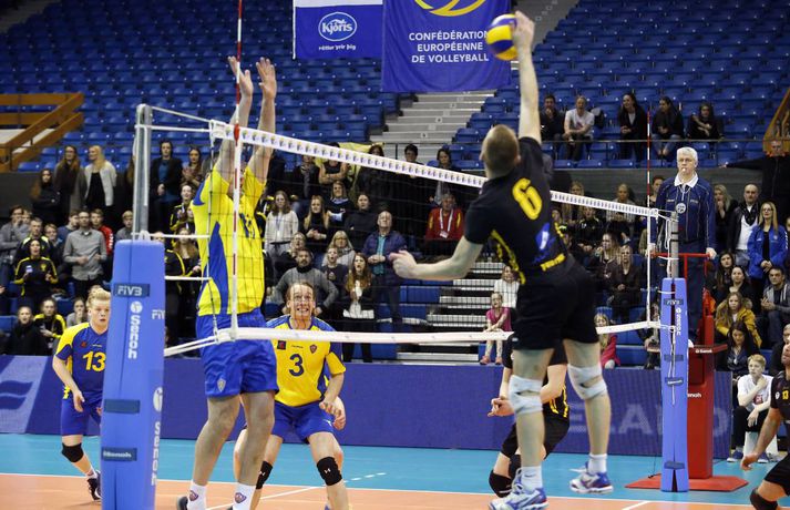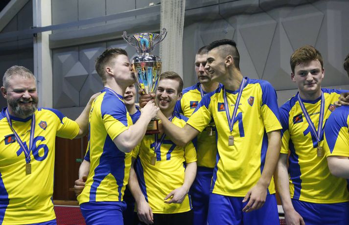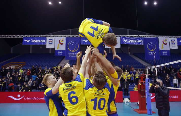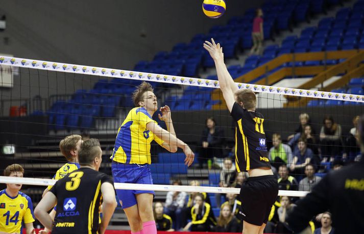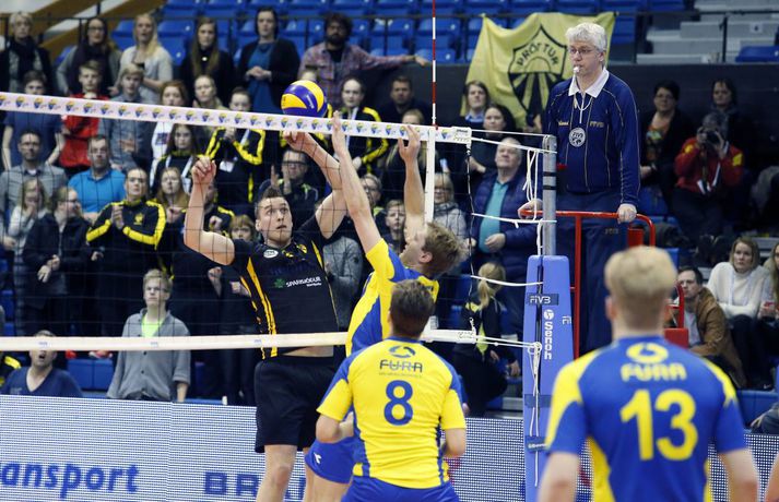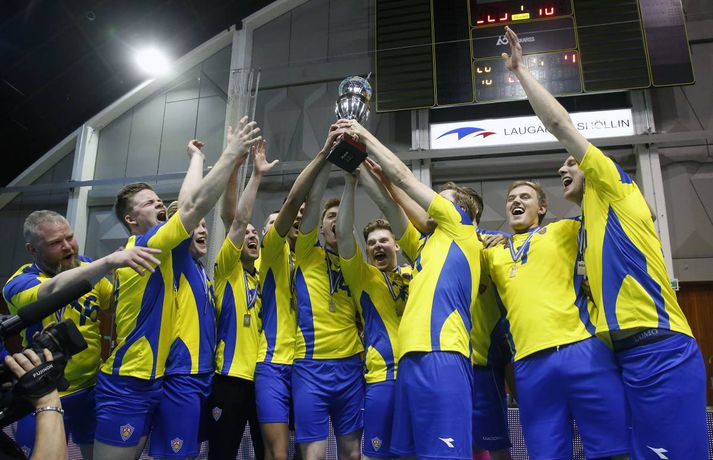 KA bikarmeistari karla í blaki | Myndir Anton Ingi Leifsson skrifar 20. mars 2016 17:13 KA-menn með bikarinn í dag. vísir/stefán KA er bikarmeistari karla í blaki eftir 3-1 sigur á Þrótti frá Neskaupsstað í Laugardalshöll í dag, en leikurinn var hin mesta skemmtun. Spennan var mikil í leiknum og jafnt var á öllum tölum framan af fyrsta leikhluta og það þurfti upphækkun til að skera úr um hvort liðið tæki forystuna eftir fyrstu hrinu. Það varð svo KA sem tók forystuna, en þeir unnu fyrstu hrinuna 28-26 og voru komnir með yfirhöndina. Hrina númer tvö var einnig jöfn og spennandi, en frábær endasprettur tryggði KA sigur, 25-21. Akureyringarnir voru því komnir í 2-0 og Þróttarar komnir með bakið upp við vegg. Hrina númer þrjú var líkt og hinar tvær, hröð og skemmtileg, en Þróttarar unnu hana, 25-16. Í fjórðu hrinunni reyndust þeir gulklæddu frá Akureyri sterkari og unnu að lokum fjórðu hrinuna með sjö stiga mun, 25-18, og bikarinn því á leið til Akureyrar. Aðrar íþróttir Mest lesið Vonast til að komast í Kórinn: „Menn hafa aldrei séð annað eins“ Fótbolti Fær þrjár milljónir á dag næstu sex árin fyrir að gera ekkert Sport Stöðufundur í Laugardal klukkan 10:30 Fótbolti Enska úrvalsdeildin í jólaköttinn Enski boltinn Landsleiknum aflýst og framhaldið óljóst Fótbolti Elsta konan til klára Járnkarlinn Sport Markvörður Inter banaði háöldruðum manni í hjólastól Sport Nýi íþróttastjóri Kjartans stal mörgæs og endaði í fangelsi í Singapúr Fótbolti Brendan Rodgers sagði starfinu sínu lausu eftir ásakanir Fótbolti Segir að Slot verði að taka tvo leikmenn út úr Liverpool-liðinu Enski boltinn Fleiri fréttir Landsleiknum aflýst og framhaldið óljóst Bardagakapparnir vilja ólmir fá að keppa í Hvíta húsinu Segir að Slot verði að taka tvo leikmenn út úr Liverpool-liðinu Vonast til að komast í Kórinn: „Menn hafa aldrei séð annað eins“ Markvörður Inter banaði háöldruðum manni í hjólastól „Alltaf gaman að fá nýjar raddir inn“ Gleðifréttir fyrir Argentínumenn: Messi vill spila á HM „Sagan hefur sýnt það að ég er góður að þjálfa unga og efnilega leikmenn“ Stöðufundur í Laugardal klukkan 10:30 Enska úrvalsdeildin í jólaköttinn Nýi íþróttastjóri Kjartans stal mörgæs og endaði í fangelsi í Singapúr Tyrkneska sambandið segir dómara hafa veðjað á þúsundir leikja Brendan Rodgers sagði starfinu sínu lausu eftir ásakanir Fær þrjár milljónir á dag næstu sex árin fyrir að gera ekkert Segir sitt fyrrum lið í krísu Elsta konan til klára Járnkarlinn Dagskráin í dag: VARsjáin, Lokasóknin, íslenskur körfubolti og margt fleira Fylltu í eyðurnar: Vanmetnasti leikmaður deildarinnar? Fyrirliði Real Madríd þarf að fara í aðgerð á hné Einkaviðtal við Carrick: „Hálfgerð tískubylgja sem einkennir fótboltann í dag“ Stólarnir ekki í vandræðum á Egilsstöðum Markaóður Stefán Ingi eftirsóttur Öllu búin skildi snjóspáin raungerast „Eitthvað sem við erum óvanar eftir Þjóðadeildina“ Heimir kynntur til leiks í Árbænum Danir heiðra Michael Laudrup De Bruyne verður lengi frá Túfa rekinn frá Val Fyrrum markmannsþjálfari Liverpool látinn Juventus rak þjálfarann eftir aðeins sjö mánuði Sjá meira