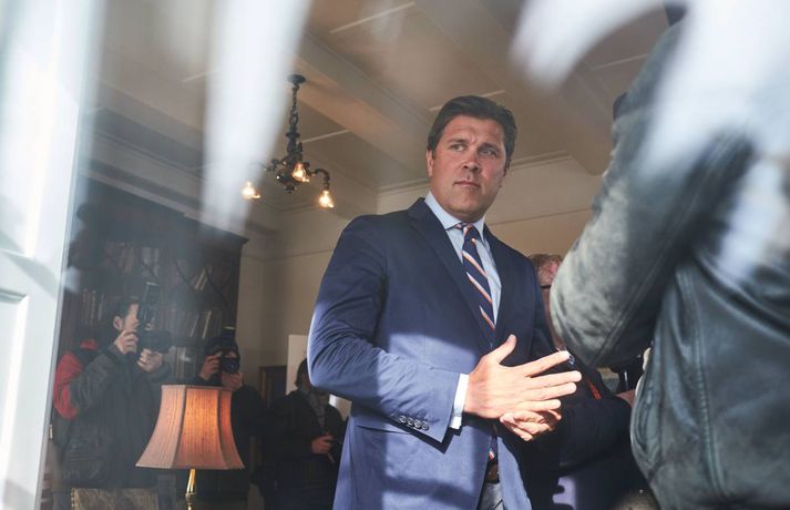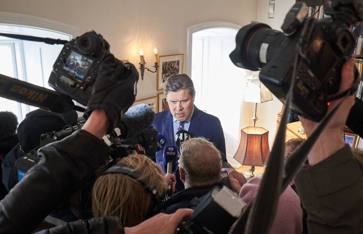 Gærdagurinn var sögulegur í stjórnmálalegu samhengi. Forseti segist hafa neitað forsætisráðherra umboð til þess að rjúfa þing og forsætisráðherra lét stuttu síðar af embætti. Miklar sviptingar voru í gær og myndaðist mikið óvissuástand sem segja má að sé enn við lýði í dag. Ljósmyndarar Vísis og Fréttablaðsins fylgdust með nýjustu vendingum á Bessastöðum, í þinghúsinu og víðar og má sjá nokkrar vel valdar myndir frá gærdeginum hér að neðan. Þeir Pjetur Sigurðsson, Ernir Eyjólfsson, Stefán Karlsson, Anton Brink og Vilhelm Gunnarsson tóku myndirnar sem hér eru birtar.Bjarni Benediktsson sagðist í gær ekki sækjast eftir forsætisráðuneytinu.Vísir/Anton Brink