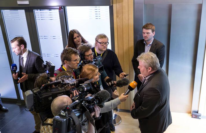 Fréttaljósmyndir gærdagsins: Sögulegur dagur í stjórnmálum festur á filmu Bjarki Ármannsson skrifar 6. apríl 2016 09:15 Gærdagurinn var sögulegur í stjórnmálalegu samhengi. Forseti segist hafa neitað forsætisráðherra umboð til þess að rjúfa þing og forsætisráðherra lét stuttu síðar af embætti. Miklar sviptingar voru í gær og myndaðist mikið óvissuástand sem segja má að sé enn við lýði í dag. Ljósmyndarar Vísis og Fréttablaðsins fylgdust með nýjustu vendingum á Bessastöðum, í þinghúsinu og víðar og má sjá nokkrar vel valdar myndir frá gærdeginum hér að neðan. Þeir Pjetur Sigurðsson, Ernir Eyjólfsson, Stefán Karlsson, Anton Brink og Vilhelm Gunnarsson tóku myndirnar sem hér eru birtar.Bjarni Benediktsson sagðist í gær ekki sækjast eftir forsætisráðuneytinu.Vísir/Anton Brink Panama-skjölin Mest lesið Lögreglumenn svekktir að sjá hversu margir hundsuðu fyrirmæli í gær Innlent Hálka á höfuðborgarsvæðinu og Hellisheiði Innlent Íslensk stúlka í klóm 764 hvött til sjálfsskaða og ofbeldis Innlent Ástæða fyrir því að genaumræðan hafi ekki náð mikilli útbreiðslu Innlent Rak nefndina sem átti að taka fyrir viðhafnarsalinn og sigurbogann Erlent Veðurvaktin: Allt á kafi í snjó á metdegi Veður Fjárútlát ríkislögreglustjóra fari afar illa í lögreglumenn Innlent Snjómokstur í fullum gangi en verkið er viðamikið Innlent Karlmaður lést í Bláa lóninu Innlent Hlýni á föstudag og snjórinn geti horfið í næstu viku Veður Fleiri fréttir Hóflega bjartsýnn á viðræður dagsins Fjárútlát ríkislögreglustjóra fari afar illa í lögreglumenn Lögreglumenn svekktir að sjá hversu margir hundsuðu fyrirmæli í gær Skjálfti 3,2 að stærð í Mýrdalsjökli Snjómokstur í fullum gangi en verkið er viðamikið Íslensk stúlka í klóm 764 hvött til sjálfsskaða og ofbeldis Hálka á höfuðborgarsvæðinu og Hellisheiði Ástæða fyrir því að genaumræðan hafi ekki náð mikilli útbreiðslu Ráðgjafinn ráðinn tveimur dögum eftir að grennslast var fyrir um málið Vesturbæjarlaug opnuð enn eina ferðina eftir viðgerðir Verklagi ábótavant og krefur ríkislögreglustjóra skýringa Mæla með því að farþegar reiði sig ekki á tímaáætlanir Snjókoman mikla, ábótavant verklag ríkislögreglustjóra og jólasveinamót Karlmaður lést í Bláa lóninu Biðu í fjóra tíma úti á braut og aðra fjóra við farangursbeltin Kærðu umdeildar framkvæmdir allt of seint Skellt í lás í sundlaugum borgarinnar vegna veðurs Reglur brotnar og þjónusta sem bjóða ætti út Þarf að borga bætur þrátt fyrir breytingar á hlaupahjólinu Hvatt til varúðar vegna snjóflóðahættu á suðvesturhorninu Meiri kvika en í síðasta gosi Eldur í blokk við Ljósheima Flugmaðurinn sem fórst millilenti oft í Reykjavík Halla leiðir krabbameinsráð ráðherra Snjókomumet og umferðaröngþveiti Segir sameiginlegum gildum Norðurlanda ógnað Fjölmargir farþegar fastir í flugvélum á Keflavíkurflugvelli Ungur Miðflokksmaður gengst við rasisma og segir af sér Sturlað ástand og United vettlingar prjónaðir í bílnum Mesta snjódýpt í Reykjavík sem mælst hefur í október Sjá meira