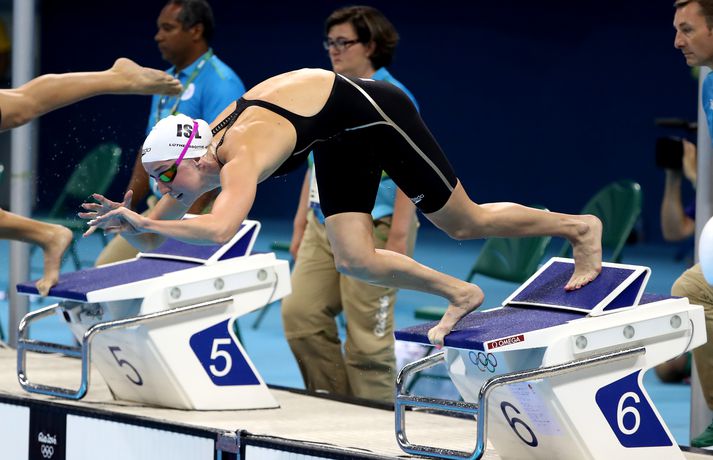 Hrafnhildur Lúthersdóttir komst nú rétt í þessu áfram í undanúrslit í 100 metra bringusundi á Ólympíuleikunum í Ríó. Hrafnhildur synti á tímanum 1:06,81 mínútu og varð fjórða í sínum riðli sem innihélt m.a. heimsmethafann Rutu Meilutyte. Hrafnhildur var með níunda besta tímann í undanrásunum og komst því örugglega í undanúrslitin sem fara fram í nótt. Báðar íslensku sundkonurnar á Ólympíuleikunum, Hrafnhildur og Eygló Ósk Gústafsdóttir, eru því komnar áfram í undanúrslitin.AntonBrink, ljósmyndari Fréttablaðsins og Vísis, er staddur í Ríó og tók myndirnar sem fylgja fréttinni.Tweets by @VisirSport vísir/anton