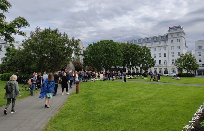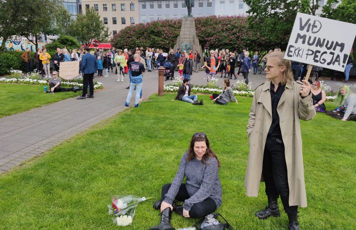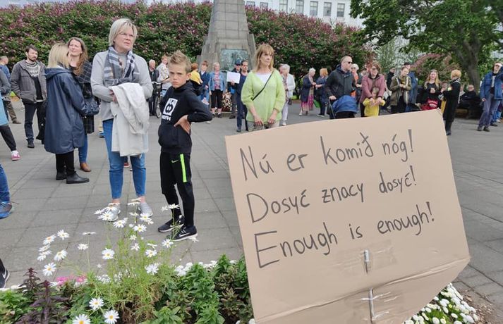 Um þrjú hundruð manns sem söfnuðust saman á Austurvelli á hádegi í dag til að minnast þeirra sem létust í brunanum á Bræðraborgarstíg 1 á fimmtudag og mótmæla slæmum aðbúnaði erlends verkafólks á Íslandi gengu að vettvangi brunans og lögðu þar blóm. Þar á meðal var Dagur B. Eggertsson, borgarstjóri, sem lagði blómvönd að húsinu. Haldin voru mótmæli á Austurvelli sem hófust klukkan tólf í dag til að vekja athygli á bágri stöðu erlends verkafólks hér á landi. Flestir íbúar hússins sem brann á fimmtudag voru einstaklingar af erlendum uppruna sem komu hingað í atvinnuleit. Jakub Pilch, pólski ræðismaðurinn á Íslandi, sagði í kvöldfréttum Stöðvar 2 í gær að hinir látnu hafi líklegast allir verið pólskir ríkisborgarar, á þrítugs- og fertugsaldri og tiltölulega nýkomnir hingað til lands. Slökkviliðsmenn mættu einnig niður á Austurvöll áðan til að sýna mótmælendum samstöðu. Lögreglan telur að um þrjú hundruð manns hafi gengið að Bræðraborgarstíg frá Austurvelli til að heiðra minningu þeirra sem fórust. Um þrjú hundruð gengu frá Austurvelli að Bræðraborgarstíg 1 til að minnast þriggja einstaklinga sem létust í brunanum á fimmtudag.Vísir/NadineMótmælendur ganga nú að Bræðraborgarstíg 1, sem brann til kaldra kola á fimmtudaginn. Þrír verkamenn, sem taldir eru vera pólskir ríkisborgarar, létust í brunanum.Vísir/EinarFrá mótmælunum á Austurvelli.Vísir/EinarVísir/Einar„Við munum ekki þegja,“ stendur á einu skiltanna.Vísir/EinarSlökkviliðsmenn mættu niður á Austurvöll til að sýna samstöðu. Lengst til hægri er Jón Viðar Matthíasson, slökkviliðsstjóri á höfuðborgarsvæðinu.Vísir/EinarFrá mótmælunum á Austurvelli.Vísir/EinarFrá mótmælunum á Austurvelli. Á skiltinu stendur „Nú er komið nóg!“ á íslensku, pólsku og ensku.Vísir/EinarSlökkviliðið sýnir mótmælendum samstöðu.Vísir/EinarDagur B. Eggertsson, borgarstjóri, á mótmælunum á Austurvelli.Vísir/Einar