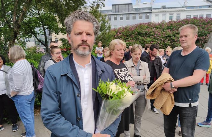 Lögðu blóm að Bræðraborgarstíg 1 Hallgerður Kolbrún E. Jónsdóttir skrifar 28. júní 2020 13:51 Um þrjú hundruð manns gengu frá Austurvelli að Bræðraborgarstíg til að heiðra minningu þeirra sem fórust í brunanum. Vísir/Nadine Um þrjú hundruð manns sem söfnuðust saman á Austurvelli á hádegi í dag til að minnast þeirra sem létust í brunanum á Bræðraborgarstíg 1 á fimmtudag og mótmæla slæmum aðbúnaði erlends verkafólks á Íslandi gengu að vettvangi brunans og lögðu þar blóm. Þar á meðal var Dagur B. Eggertsson, borgarstjóri, sem lagði blómvönd að húsinu. Haldin voru mótmæli á Austurvelli sem hófust klukkan tólf í dag til að vekja athygli á bágri stöðu erlends verkafólks hér á landi. Flestir íbúar hússins sem brann á fimmtudag voru einstaklingar af erlendum uppruna sem komu hingað í atvinnuleit. Jakub Pilch, pólski ræðismaðurinn á Íslandi, sagði í kvöldfréttum Stöðvar 2 í gær að hinir látnu hafi líklegast allir verið pólskir ríkisborgarar, á þrítugs- og fertugsaldri og tiltölulega nýkomnir hingað til lands. Slökkviliðsmenn mættu einnig niður á Austurvöll áðan til að sýna mótmælendum samstöðu. Lögreglan telur að um þrjú hundruð manns hafi gengið að Bræðraborgarstíg frá Austurvelli til að heiðra minningu þeirra sem fórust. Um þrjú hundruð gengu frá Austurvelli að Bræðraborgarstíg 1 til að minnast þriggja einstaklinga sem létust í brunanum á fimmtudag.Vísir/NadineMótmælendur ganga nú að Bræðraborgarstíg 1, sem brann til kaldra kola á fimmtudaginn. Þrír verkamenn, sem taldir eru vera pólskir ríkisborgarar, létust í brunanum.Vísir/EinarFrá mótmælunum á Austurvelli.Vísir/EinarVísir/Einar„Við munum ekki þegja,“ stendur á einu skiltanna.Vísir/EinarSlökkviliðsmenn mættu niður á Austurvöll til að sýna samstöðu. Lengst til hægri er Jón Viðar Matthíasson, slökkviliðsstjóri á höfuðborgarsvæðinu.Vísir/EinarFrá mótmælunum á Austurvelli.Vísir/EinarFrá mótmælunum á Austurvelli. Á skiltinu stendur „Nú er komið nóg!“ á íslensku, pólsku og ensku.Vísir/EinarSlökkviliðið sýnir mótmælendum samstöðu.Vísir/EinarDagur B. Eggertsson, borgarstjóri, á mótmælunum á Austurvelli.Vísir/Einar Bruni á Bræðraborgarstíg Reykjavík Tengdar fréttir Mótmæla slæmum aðbúnaði verkafólks hér á landi Mótmæli fara nú fram á Austurvelli vegna slæms aðbúnaðar verkafólks hér á landi. 28. júní 2020 12:30 Mesti harmleikur sem pólska samfélagið á Íslandi hefur upplifað Pólska samfélagið á Íslandi er harmi slegið eftir brunann á Bræðraborgarstíg í fyrradag. Ekki er búið að bera kennsl á þau sem létust en ræðismaður segir gengið út frá því að þau séu pólverjar á þrítugs og fertugsaldri. 27. júní 2020 18:30 Hafa lagt blóm til minningar um þau sem létust í brunanum Bangsar, blóm og kerti eru á meðal þess sem vegfarendur hafa lagt við Bræðraborgarstíg 1. 27. júní 2020 14:08 Mest lesið Veðurvaktin: Snjókoman rétt að byrja og víða erfið færð Veður Karlmaður lést í Bláa lóninu Innlent Ungur Miðflokksmaður gengst við rasisma og segir af sér Innlent Flugmaðurinn sem fórst millilenti oft í Reykjavík Innlent Snjókoman rétt að byrja Innlent Eldur í blokk við Ljósheima Innlent Bílar út af veginum á Reykjanesbraut Innlent Hvatt til varúðar vegna snjóflóðahættu á suðvesturhorninu Innlent Biðu í fjóra tíma úti á braut og aðra fjóra við farangursbeltin Innlent Ráðgjafinn ráðinn í tímabundið starf eftir dýra skreppitúra Innlent Fleiri fréttir Vesturbæjarlaug opnuð enn eina ferðina eftir viðgerðir Verklagi ábótavant og krefur ríkislögreglustjóra skýringa Mæla með því að farþegar reiði sig ekki á tímaáætlanir Snjókoman mikla, ábótavant verklag ríkislögreglustjóra og jólasveinamót Karlmaður lést í Bláa lóninu Biðu í fjóra tíma úti á braut og aðra fjóra við farangursbeltin Kærðu umdeildar framkvæmdir allt of seint Skellt í lás í sundlaugum borgarinnar vegna veðurs Reglur brotnar og þjónusta sem bjóða ætti út Þarf að borga bætur þrátt fyrir breytingar á hlaupahjólinu Hvatt til varúðar vegna snjóflóðahættu á suðvesturhorninu Meiri kvika en í síðasta gosi Eldur í blokk við Ljósheima Flugmaðurinn sem fórst millilenti oft í Reykjavík Halla leiðir krabbameinsráð ráðherra Snjókomumet og umferðaröngþveiti Segir sameiginlegum gildum Norðurlanda ógnað Fjölmargir farþegar fastir í flugvélum á Keflavíkurflugvelli Ungur Miðflokksmaður gengst við rasisma og segir af sér Sturlað ástand og United vettlingar prjónaðir í bílnum Mesta snjódýpt í Reykjavík sem mælst hefur í október Viðbragðsaðilar í mikilli hættu vegna bíla á sumardekkjum Bílar út af veginum á Reykjanesbraut Vill heimila Samkeppniseftirlitinu að ráðast í húsleitir Snjókoman rétt að byrja Píratar berjist gegn „rísandi bylgju lýðskrums og fasisma“ Skvísur geti virkað sem hálfgerðir þroskaþjófar Ráðgjafinn ráðinn í tímabundið starf eftir dýra skreppitúra Misvægi atkvæða bitnar mest á Kraganum Heitavatnslaust á Suðurnesjum og rafmagnslaust víða um land Sjá meira