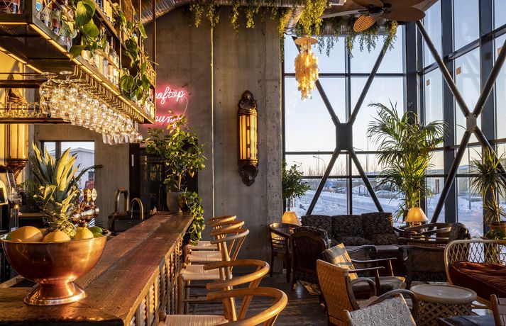 Gróðurhúsið í Hveragerði formlega opnað Sylvía Rut Sigfúsdóttir skrifar 9. desember 2021 13:27 Eigendurnir Valgarð Sörensen og Brynjólfur J. Baldursson. Gróðurhúsið í Hveragerði hélt opnunarhóf á laugardag þar sem boðsgestir fengu að skoða bygginguna, smakka matinn og upplifa stemninguna. Baldur Kristjáns Gróðurhúsið opnaði formlega í Hveragerði í dag og var haldið partý þar á laugardag til að halda upp á opnunina. Fjölbreytt starfsemi er í byggingunni sem á að höfða bæði til Íslendinga og erlendra ferðamanna en þar er að finna hótel, mathöll, bar, verslanir, kaffihús, matarmarkað og ísbúð. „Við uppbyggingu hefur sjálfbærni verið höfð að leiðarljósi og nafnið því vel við hæfi enda Hveragerði þekkt fyrir sín fjölmörgu gróðurhús. Markmiðið er að að gestir geti staldrað við í fallegu umhverfi og notið alls þess sem Gróðurhúsið hefur uppá að bjóða,“ segir í tilkynningu um opnunina. Hálfdan Pedersen sér um heildarhönnun og útlit Gróðurhússins en samvinna er með Flóru garðyrkjustöð um ráðgjöf varðandi gróður hússins sem að sjálfsögðu er í aðalhlutverki í sjálfum Blómabænum. Gróður spilar lykilhlutverk í hönnun Gróðurhússsins. Gluggarnir eru líka eins og í nútímalegu gróðurhúsi.qBaldur Kristjáns „Í suðurenda byggingarinnar er mathöllin með fimm frábærum veitingastöðum; Hipstur, Yuzu burgers, Wok-on, Taco vagninn og Pönk Fried Chicken (PFC). Í glerskálanum til suðurs er svo Nýlendubar Kormáks og Skjaldar en þar er hægt að upplifa suðræna stemningu og skála í svalandi drykk undir pálmatré. Barinn nær einnig til setustofu annarrar hæðar og þaksvala með frábæru útsýni til suðurs. Í norðurenda byggingarinnar hafa gamalgróin vörumerki úr höfuðborginni komið sér fyrir s.s. Epal, Herrafataverslun Kormáks & Skjaldar og Álafoss. Einnig er þar starfrækt ný sælkeraverslun og matarmarkaður sem ber nafnið Me&Mu en þar er áherslan á smáframleiðendur og vörur beint úr héraði. Ísbúðin Bongo býður uppá nýja og skemmtilega nálgun í samvinnu við Kjörís. Kaffihúsið býður svo uppá léttar veitingar, girnilegan morgunverð og léttar veitingar ásamt hinum vinsælu açaí skálum frá Maika’i Reykjavík. Samstarf er við Te&Kaffi um kaffidrykki í kaffihúsinu og á eins hægt að gæða sér á þeirra frábæra kaffi á herbergjum hótelsins.“ Íbúar í Hveragerði fengu að skoða sig um í Gróðurhúsinu í gær en formlega opnar byggingin í dag. Baldur Kristjáns The Greenhouse Hotel er lífstílshótel með áherslu á hágæða herbergi ásamt skemmtilegri stemningu og upplifun gesta. Hótelið er staðsett á efri hæðum byggingarinnar og hafa hótelgestir aðgang að norðursvölum en þar mun opna spa svæði sem tilvalið er til slökunar. „Lagt er upp með að gestir geti slakað vel á og náð í alla sína þjónustu sem þeir þurfa innan Gróðurhússins. Þeir sem kjósa geta síðan notið fjölbreyttrar útivistar sem er að finna í bakgarðinum í Reykjadal en þar er heiti lækurinn og Hengillinn vinsælir áningastaðir. Margir fara í göngur, fjallahjól og útreiðartúra ásamt því að veiða í ánni og spila golf í sveitinni. Það er síðan margt í boði í nágrenninu og vinnur Gróðurhúsið náið með ferðaþjónustuaðilum í nærumhverfi sínu.“ Hér fyrir neðan má sjá nokkrar fleiri myndir af Gróðurhúsinu í Hveragerði. Allar myndirnar tók ljósmyndarinn Baldur Kristjánsson. Tíska og hönnun Matur Hveragerði Veitingastaðir Ferðamennska á Íslandi Tengdar fréttir Mathöll, bar, hótel og fleira í Gróðurhúsinu í Hveragerði Mikil uppbygging er í kortunum í Hveragerði en þar verður nýr áfangastaður sem ber nafnið Gróðurhúsið opnaður í sumar. Þar verður hótel, verslanir, mathöll, kaffihús, bar, ísbúð, sælkeraverslun og annars konar þjónusta í boði fyrir heimamenn og innlenda og erlenda ferðamenn. 2. júní 2021 07:50 Mest lesið Eitt glæsilegasta hús Reykjavíkur til sölu Lífið Hvað þýðir „six-seven“? Lífið Vafðist tunga um tönn þegar Bond bar á góma Bíó og sjónvarp Meðalmennskan plagar Brján Gagnrýni Aldrei of seint að prófa sig áfram Tíska og hönnun Kynslóðabilið kom í ljós þegar umræðan beindist að blautbolakeppni Lífið Hótelstjóri Hótels Tindastóls er allur Bíó og sjónvarp Skein skært í sögulegum gleðikonukjól Tíska og hönnun Smáforrit til að deila heimilisverkum: „Fæ þrjú stig fyrir að þurrka af á heimilinu“ Lífið Sjóðheitt fyrir snjóstorm Tíska og hönnun Fleiri fréttir Sjóðheitt fyrir snjóstorm Skein skært í sögulegum gleðikonukjól Aldrei of seint að prófa sig áfram Dannaðar dömur mættu með dramað „Nú dýrka ég að vera vaxin eins og fæðing Venusar“ Hiti í Hringekjunni Virtist hvorki geta séð né andað Sænskur og sjóðheitur undir áhrifum BDSM Kasóléttur forystusauður, ungstirni og engilfagrar kanónur „Bíður bara inni í skáp eftir brúðkaupinu“ Betra sem hárbindi en tagl í Bríeti Léti aldrei sjá sig í ökklasokkum Gelluorkan í hæstu hæðum hjá Ginu Heitir pabbar í hlaupaklúbbi Skilnaðar-toppur í París Fann ástina í örlagaríkum kjól Íslensk fyrirsæta slær í gegn á tískupöllum Mílanó Kláraði lögfræði meðan hún sat fyrir hjá Dior Heitasta handatískan í dag Íslenski hönnuðurinn sem Dorrit dýrkar Með sálfræðigráðu á leið í skartgripahönnun í Róm Heklaði á sig forsýningarkjólinn Sjóðheit stemning á rauða dreglinum Ástin sigrar í nýrri herferð gegn ofbeldi Í þrjátíu ára gömlum fötum af mömmu Tískan við þingsetningu: Þjóðlegur þriðjudagur Rokkar pils sem bol og snýr flíkum öfugt Fögnuðu Þjóðbúningadeginum með stæl Fáklædd og flott á dreglinum „Hugsa fallega til stelpunnar sem ég va