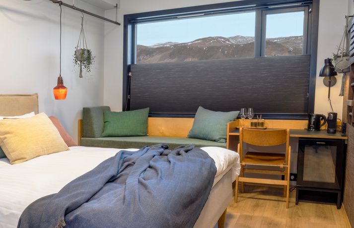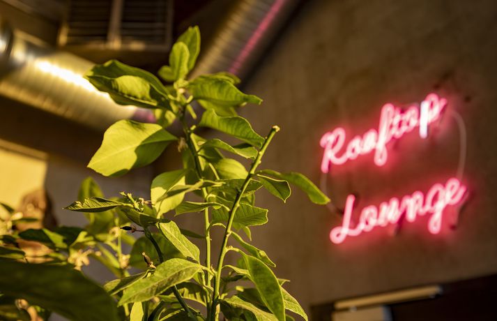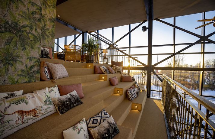 „Við uppbyggingu hefur sjálfbærni verið höfð að leiðarljósi og nafnið því vel við hæfi enda Hveragerði þekkt fyrir sín fjölmörgu gróðurhús. Markmiðið er að að gestir geti staldrað við í fallegu umhverfi og notið alls þess sem Gróðurhúsið hefur uppá að bjóða,“ segir í tilkynningu um opnunina. Hálfdan Pedersen sér um heildarhönnun og útlit Gróðurhússins en samvinna er með Flóru garðyrkjustöð um ráðgjöf varðandi gróður hússins sem að sjálfsögðu er í aðalhlutverki í sjálfum Blómabænum. Gróður spilar lykilhlutverk í hönnun Gróðurhússsins. Gluggarnir eru líka eins og í nútímalegu gróðurhúsi.qBaldur Kristjáns „Í suðurenda byggingarinnar er mathöllin með fimm frábærum veitingastöðum; Hipstur, Yuzu burgers, Wok-on, Taco vagninn og Pönk Fried Chicken (PFC). Í glerskálanum til suðurs er svo Nýlendubar Kormáks og Skjaldar en þar er hægt að upplifa suðræna stemningu og skála í svalandi drykk undir pálmatré. Barinn nær einnig til setustofu annarrar hæðar og þaksvala með frábæru útsýni til suðurs. Í norðurenda byggingarinnar hafa gamalgróin vörumerki úr höfuðborginni komið sér fyrir s.s. Epal, Herrafataverslun Kormáks & Skjaldar og Álafoss. Einnig er þar starfrækt ný sælkeraverslun og matarmarkaður sem ber nafnið Me&Mu en þar er áherslan á smáframleiðendur og vörur beint úr héraði. Ísbúðin Bongo býður uppá nýja og skemmtilega nálgun í samvinnu við Kjörís. Kaffihúsið býður svo uppá léttar veitingar, girnilegan morgunverð og léttar veitingar ásamt hinum vinsælu açaí skálum frá Maika’i Reykjavík. Samstarf er við Te&Kaffi um kaffidrykki í kaffihúsinu og á eins hægt að gæða sér á þeirra frábæra kaffi á herbergjum hótelsins.“ Íbúar í Hveragerði fengu að skoða sig um í Gróðurhúsinu í gær en formlega opnar byggingin í dag. Baldur Kristjáns The Greenhouse Hotel er lífstílshótel með áherslu á hágæða herbergi ásamt skemmtilegri stemningu og upplifun gesta. Hótelið er staðsett á efri hæðum byggingarinnar og hafa hótelgestir aðgang að norðursvölum en þar mun opna spa svæði sem tilvalið er til slökunar. „Lagt er upp með að gestir geti slakað vel á og náð í alla sína þjónustu sem þeir þurfa innan Gróðurhússins. Þeir sem kjósa geta síðan notið fjölbreyttrar útivistar sem er að finna í bakgarðinum í Reykjadal en þar er heiti lækurinn og Hengillinn vinsælir áningastaðir. Margir fara í göngur, fjallahjól og útreiðartúra ásamt því að veiða í ánni og spila golf í sveitinni. Það er síðan margt í boði í nágrenninu og vinnur Gróðurhúsið náið með ferðaþjónustuaðilum í nærumhverfi sínu.“ Hér fyrir neðan má sjá nokkrar fleiri myndir af Gróðurhúsinu í Hveragerði. Allar myndirnar tók ljósmyndarinn Baldur Kristjánsson.