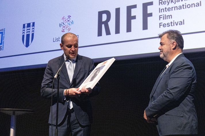 Örn Árnason hlaut fyrstu heiðursverðlaun UngRIFF Margrét Björk Jónsdóttir skrifar 27. september 2023 15:52 Örn Árnason, sem í dag hlaut Heiðursverðlaun RIFF, ásamt leikaranum Lúkas Emil Johansen. RIFF kvikmyndahátíð Guðni Th. Jóhannesson, forseti Íslands afhenti Erni Árnasyni, leikara, fyrstu heiðursverðlaun UngRIFF í dag. Verðlaunin hlaut hann fyrir framlag sitt til íslenskrar barnamenningar, sér í lagi á sviði kvikmynda og talsetninga. Barnakvikmyndahátíðin UngRIFF var sett í dag í fyrsta skipti í Smárabíó. Um 900 grunnskólabörnum í Reykjavík var boðið til að horfa á kvikmyndina Hættuspil. Áður en sýningin hófst voru Erni veitt heiðursverðlaunin og hátíðin sett formlega. Guðni Th. Jóhannesson, forseti Íslands afhenti Erni Árnasyni, leikara, fyrstu heiðursverðlaun UngRIFF í dag.RIFF kvikmyndahátíð UngRIFF er haldin samhliða RIFF – Alþjóðlegri kvikmyndahátið í Reykjavík. Dagskráin stendur í tólf daga víða um land, en auk þess verður öllum leik- og grunnskólum landsins boðið að horfa á kvikmyndir í kennslustofum. „RIFF er nú haldin í tuttugasta skiptið og hefur hátíðin skipað sér á bás sem ein eftirsóttasta kvikmyndahátíð Norðurlanda,“ segir í tilkynningu. „Meginhlutverk RIFF er að tryggja víðtækt úrval af hágæða, óháðri kvikmyndaframleiðslu með áherslu á unga kvikmyndagerðarmenn.“ Kátir kvikmyndagestir í Smárabíó í dag.RIFF kvikmyndahátíð Óli Valur Pétursson, verkefnastjóri UngRIFF segir markmið UngRiff vera að búa til vettvang fyrir börn og ungmenni, gefa þeim færi á að sækja kvikmyndahús og fá vettvang til að tjá sig. „Við teljum að öll börn eigi rétt á því að fá tækifæri til að upplifa töfaheim kvikmyndanna óháð uppruna, kyni eða búsetu.“ Óli Valur Pétursson verkefnastjóri UngRIFF, ásamt Guðna Th. og Hrönn Marinósdóttir, stjórnanda RIFF.RIFF kvikmyndahátíð Meðal viðburða á UngRIFF í ár eru smiðjur af ýmsu tagi. Til að mynda kvikmyndagerð og teiknimyndagerð, auk þess sem stóru kvikmyndagerðarnámskeiði fyrir ísfirska 9. bekkinga er nýlokið. Forseti Íslands ræðir við ungt kvikmyndaáhugafólk. RIFF kvikmyndahátíð Í Ungmennaráði UngRIFF sitja_ Sigurrós Soffía Daðadóttir, Ísadóra Ísfeld Finnsdóttir og Katla Líf Drífu-Louisdóttir KotzeRIFF kvikmyndahátíð. Kvikmyndahús Menning Börn og uppeldi Grunnskólar Mest lesið „Ég heyrði þá kalla á mig en gat engu svarað“ Lífið Nýkominn úr meðferð og „sjaldan verið betur nýsleginn túskildingur“ Lífið Heilsu krónprinsessunnar hrakar gríðarlega Lífið Best klæddu Íslendingarnir 2025 Tíska og hönnun Þriðja stigs krabbameinið það besta sem kom fyrir hann Lífið Flýta jólasýningunni um klukkutíma vegna lengdar Menning Úr öskunni í eldinn Gagnrýni Fáklæddir barþjónar þegar Regnboginn opnaði í Bíó Paradís Lífið Laufey á lista Obama Lífið Pete orðinn pabbi Lífið Fleiri fréttir Útgefandi Walliams lætur hann róa Fáklæddir barþjónar þegar Regnboginn opnaði í Bíó Paradís Þriðja stigs krabbameinið það besta sem kom fyrir hann Dúnninn bakaður í fjóra sólarhringa til að drepa allt í honum Heilsu krónprinsessunnar hrakar gríðarlega Pete orðinn pabbi Nýkominn úr meðferð og „sjaldan verið betur nýsleginn túskildingur“ Laufey á lista Obama „Ég heyrði þá kalla á mig en gat engu svarað“ Opnar sig í fyrsta sinn: Kyssti yfirmanninn í fyrsta sinn þetta kvöld Sex hundruð ára kastali Björns í Frakklandi svo gott sem klár Fyrirsát að Valgerði, Stund Pírata og meint alzheimer Þráins Bertelssonar „Það jafnar sig enginn eftir svona og við munum aldrei gera það“ Ungir sjálfstæðismenn gefa út vandræðalegt fjölskyldudagatal Keough sögð líffræðileg móðir Benjamin Travolta Rússland aftur í Eurovision - undirskriftasöfnun Óskarsverðlaununum streymt á Youtube Karmað muni bíta þjófinn í rassinn þegar títan og glyttan byrja að dansa í hitanum Hreimur og Ólafur Darri perluvinir sem horfa á enska boltann saman „Ég er mamman sem gat aldrei gefið honum það sem hann óskaði sér“ Áttu að hitta Reiner-hjónin daginn örlagaríka Leynigesturinn hitti Heimi Karls beint í hjartastað Sannkölluð útsýnisperla með potti í Skerjafirði Kristófer Acox og Guðrún Elísabet eiga von á barni Reynihvammur 39 jólahús Kópavogsbæjar Þingmaður selur húsið Segja Helenu fara með „hreinar rangfærslur“ Skrifaði eftirréttasöguna: „Er hann geðbilaður?“ Palestínskir fánar leyfðir og óánægjuhróp áhorfenda ekki falin Féllu örmagna til jarðar eftir langa þriðju vakt Sjá meira