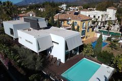 Um er að ræða 205 fermetra tveggja hæða hús með innbyggðum bílskúr. Kaupsamningur var undirritaður 9. júlí síðastliðinn. Stofa, borðstofa og eldhús renna saman í rúmgott og bjart rými með gólfsíðum gluggum og fallegu eikarparketi. Þaðan er gengið um tvöfalda rennihurð út í skólsælan bakgarð. Í eldhúsinu er snyrtileg hvít innrétting með ríkulegu skápaplássi, en efri skápar eru úr brúnbæsaðri gegnheillri eik. Fyrir miðju rýminu er stór eldhúseyja með góðu skápaplássi og setuaðstöðu. Borðplötur eru úr hvítum kvartstein með mynstrinu Noble Carrera. Í húsinu eru fjögur svefnherbergi og þrjú baðherbergi. Á efri hæð er útgengt úr svefnherbergjunum og baðherberginu á 30 fermetra þaksvalir með heitum potti og fallegu útsýni. Fastinn.is Fastinn.is Fastinn.is Fastinn.is Fastinn.is Fastinn.is