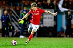 Norska liðið í miklu stuði en dramatík hjá Dönunum Óskar Ófeigur Jónsson skrifar 20. ágúst 2025 21:13 Leikmenn Bodö/Glimt fagna einu af fimm mörkum sínum í kvöld. EPA/MATS TORBERGSEN Bodö/Glimt er í frábærum málum eftir fyrri leikinn í umspili um sæti í Meistaradeildinni í fótbolta í kvöld en sigurmark var dæmt af danska liðinu FC Kaupmannahöfn í lokin. Bodö/Glimt vann 5-0 sigur á heimavelli á móti austurríska félaginu Sturm Graz. Norska liðið var komið í 3-0 eftir aðeins 25 mínútna leik. Kasper Waarts Högh, Odin Lurås Björtuft, Ulrik Saltnes og Håkon Evjen skoruðu mörkin en síðasta markið var sjálfsmark. FC Kaupmannahöfn hélt að það hefði tryggt sér útisigur á móti Basel í Sviss en Varsjáin dæmdi af mark Andreas Cornelius á lokamínútunum. Leikurinn endaði því með 1-1 jafntefli en seinni leikurinn verður í Danmörku þannig að FCK er í ágætum málum. Xherdan Shaqiri kom Basel í 1-0 á 14. mínútu með marki úr vítaspyrnu en Gabriel Pereira jafnaði metin í uppbótatíma fyrri hálfleiks. Það urðu markalaus jafntefli í báðum hinum leikjum kvöldsins. Celtic náði bara markalausu jafntefli á heimavelli á móti Kairat frá Kasakstan og leikur Fenerbahçe og Benfica í Tyrklandi endaði líka markalaus. Meistaradeild Evrópu í fótbolta karla Norski boltinn Mest lesið Liðsfélagi Sveindísar opnar sig: Skammast mín og er skíthrædd Fótbolti „Mér finnst þetta vera hræðilegt“ Handbolti Verndar Viktor eftir slæma reynslu með Orra: „Það var erfitt“ Fótbolti „Ég var mjög svekkt og reið yfir því sem hún gerði“ Sport Viktor sló Meistaradeildarmet Lamine Yamal Fótbolti Sturlað afrek Viktors: „Okkar útgáfa af Woltemade“ Fótbolti Liverpool-krísan stækkar og stækkar eftir stórtap á Anfield Fótbolti Aron Jó leystur undan samningi hjá Val Íslenski boltinn Kynntu fyrst Loga Ólafs en svo Jóa Kalla sem á að koma FH á toppinn Íslenski boltinn Vona að Slot haldi áfram: „Kannski gerði hann of vel á síðustu leiktíð“ Fótbolti Fleiri fréttir Skrýtið að koma heim og mæta Blikum Vona að Slot haldi áfram: „Kannski gerði hann of vel á síðustu leiktíð“ Verndar Viktor eftir slæma reynslu með Orra: „Það var erfitt“ Sturlað afrek Viktors: „Okkar útgáfa af Woltemade“ Kynntu fyrst Loga Ólafs en svo Jóa Kalla sem á að koma FH á toppinn Sjáðu mörkin: Viktor tryllti Parken, ferna Mbappé, sigur Arsenal og tap Liverpool Lofar Heimi í hástert en tjáir sig ekki um nýjan samning Liðsfélagi Sveindísar opnar sig: Skammast mín og er skíthrædd Viktor sló Meistaradeildarmet Lamine Yamal „Förum ekki fram úr okkur“ Hefur ekki gerst hjá Liverpool síðan 1953 Stuðningsmaður settur í 35 leikja bann og skyldaður á námskeið Mbappé með þrennu í fyrri hálfleik og fjögur alls Arsenal alls staðar á toppnum eftir sigur á Bæjurum Liverpool-krísan stækkar og stækkar eftir stórtap á Anfield Viktor kom FCK á bragðið í fyrsta Meistaradeildarsigri liðsins Sjáðu mark númer tvö hjá Viktori í Meistaradeildinni Þurftu að biðjast afsökunar á framkomu áhrifavalds í bikardrætti Svona var fundur Blika fyrir slaginn við Loga og félaga Estevao hangir ekki í símanum Atli kveður KR og flytur norður Fantasýn: Hefði átt að hlusta á fáránlegu rökin sín „Eins og vanvirðing og skilur ekkert eftir sig nema vont bragð“ Refur á vappi um Brúna minnti á Atla Sjáðu öll mörkin: Magnaður Estevao, 36 ára Auba og McTominay í stuði Rifjuðu upp sögu af formanni KSÍ og slagsmál Dyer og Bowyer Drama í Noregi og 36 ára Auba sá um Newcastle Gjörbreytt lið City mátti þola sitt fyrsta tap Spænski risinn grátt leikinn og Estevao vann uppgjör ungstirnanna Slot kennir sjálfum sér um eftir „fáránlegt“ gengi Sjá meira