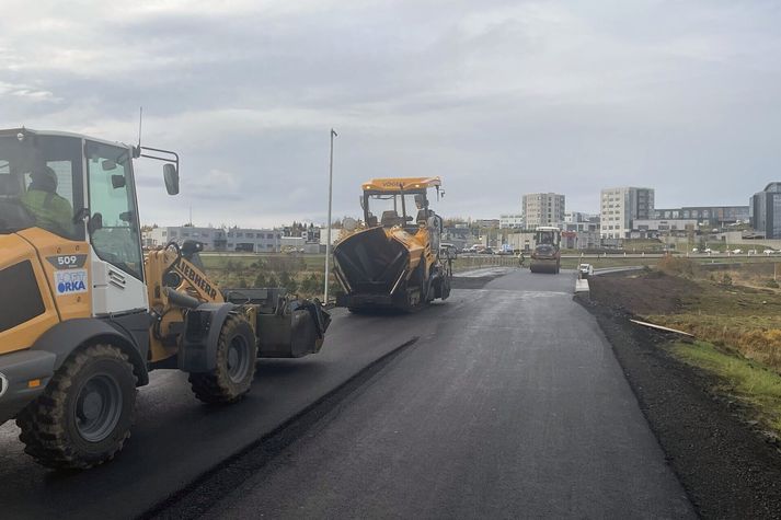 Göngu- og hjólabrýr yfir Elliðaár opnast Kristján Már Unnarsson skrifar 4. október 2025 06:56 Brúin sem opnaðist í Víðidal í gær er með bráðabirgðahandriði. Fjær sjást Reiðhöllin og félagssvæði Hestamannafélagsins Fáks. kmu Báðar nýju göngu- og hjólabrýrnar yfir Elliðaár í Víðidal, eða Dimmu, eins og áin nefnist einnig á þessum kafla, hafa verið opnaðar umferð. Vinna við þær er á lokametrunum en búið að tengja þær báðar við stígakerfi Elliðaárdals. Malbikunarflokkur frá Loftorku lauk í gær malbikun vegna efri brúarinnar, þeirrar sem nær er Breiðholtsbraut. Brúargólfið og aðliggjandi stígar voru malbikaðir og opnaðist brúin síðdegis fyrir gangandi og hjólandi vegfarendur. Malbikunarflokkur Loftorku lauk malbikun brúargólfs og aðliggjandi stíga í gær.kmu Brúarsmíðin er einn verkþátta Arnarnesvegar, milli Rjúpnavegar og Breiðholtsbrautar, sem Suðurverk og Loftorka annast fyrir Vegagerðina. Verkið er unnið í samstarfi við Kópavogsbæ og Reykjavíkurborg. Enn er þó aðeins bráðabirgðahandrið á brúnni. Starfsmenn á vettvangi sögðu stefnt að því að setja varanlegt handrið í næstu viku. Þá er frágangur kanta og uppsetning lýsingar eftir. Brúarsmíðin er einn verkþátta Arnarnesvegar um Vatnsendahæð.kmu Vegagerðin segir tekið mið af viðkvæmri staðsetningu yfir Elliðaárnar og sérstaklega hugað að því að brúin falli vel inn í landslagið. Hún verði mikil samgöngubót fyrir gangandi og hjólandi vegfarendur. Hún leysir af eldri göngubrú skammt frá sem þykir ekki standast nútímakröfur og jafnvel varasöm. Í lýsingu Vegagerðarinnar segir að sitt hvoru megin við gömlu brúna þurfi að ganga upp þröngar og nokkuð brattar tröppur sem reynst hafi mörgum farartálmi. Yfir vetrartímann hafi fólk átt í erfiðleikum með að fara um brúna, ekki síst með vagna, kerrur eða hjól. Á neðri brúnni voru starfsmenn Járnsmiðju Óðins að setja upp varanlegt handrið í gær.kmu Fimmhundruð metrum neðar í dalnum voru starfsmenn Járnsmiðju Óðins í gær að setja upp varanlegt handrið á hina brúna, sem risin er í Grænugróf neðan Fella- og Hólakirkju. Sú brú opnaðist umferð í byrjun nóvember í fyrra, fyrir ellefu mánuðum. Í næstu viku er svo áformað að setja lýsingu á brúna. Reykjavíkurborg stendur að brúargerðinni í Grænugróf. Hún er hluti verkefna samgöngusáttmálans milli ríkisins og sveitarfélaganna sex á höfuðborgarsvæðinu. Verktakafyrirtækið Gleipnir annast smíði brúarinnar. Svona mun neðri brúin líta út í myrkri. Mikið er lagt í lýsingarhönnun og mun brúin setja svip á umhverfið. Lýsingin mun beinast niður á brúargólfið.Reykjavíkurborg/Liska Vegagerð Göngugötur Hjólreiðar Samgöngur Reykjavík Kópavogur Tengdar fréttir Ný göngu- og hjólabrú yfir Elliðaár opin umferð Ný göngu- og hjólabrú yfir Elliðaár í Víðidal, eða Dimmu, eins og áin nefnist einnig á þessum kafla, hefur verið opnuð umferð. Brúin er við Grænugróf neðan við Fella- og Hólakirkju í Breiðholti á móts við félagssvæði Hestamannafélagsins Fáks og var hún tengd við stígakerfi Elliðaárdals með malbiki fyrir helgi. 3. nóvember 2024 09:15 Tvær göngu- og hjólabrýr koma yfir Elliðaár í Víðidal Framkvæmdir vegna nýrrar göngu- og hjólabrúar yfir Elliðaár, eða Dimmu, eins og áin nefnist einnig á þessum kafla, hófust í síðustu viku. Brúin rís í Grænugróf neðan við Fella- og Hólakirkju á móts við félagssvæði Hestamannafélagsins Fáks. Þetta er önnur brúin sem byggð er á sama tíma í Víðidal. 2. mars 2024 12:48 Vinna hafin við göngu- og hjólabrú yfir Elliðaár Framkvæmdir eru hafnar við gerð nýrrar göngu- og hjólabrúar yfir Elliðaár, eða Dimmu, eins og áin nefnist á þessum kafla í Víðidal. Brúarsmíðin er einn verkþátta Arnarnesvegar, milli Rjúpnavegar og Breiðholtsbrautar, sem Suðurverk og Loftorka annast. 25. febrúar 2024 07:07 Mest lesið „Af hverju ertu svona í framan?“ Innlent „Algjörlega alveg út í hött“ Innlent Skipar Ísraelum að hætta að sprengja Erlent Umferðin færist inn á íbúðagötur Innlent Diddy í fimmtíu mánaða fangelsisvist Erlent Vann á öllum deildum leikskólans Innlent Andar sem eru ekki hér en voru í myndinni þeir sveima og fylgjast með Innlent Nýsestur á skrifstofunni þegar hann fékk bíl í flasið Innlent Rannsaka mögulega stunguárás Innlent Göngu- og hjólabrýr yfir Elliðaár opnast Innlent Fleiri fréttir Rannsaka mögulega stunguárás Göngu- og hjólabrýr yfir Elliðaár opnast „Af hverju ertu svona í framan?“ „Algjörlega alveg út í hött“ Umferðin færist inn á íbúðagötur Andar sem eru ekki hér en voru í myndinni þeir sveima og fylgjast með Dugar ekki lengur að dorga og nú þurfi að kasta út neti Vann á öllum deildum leikskólans Segja Rússa heyja stríð við Vesturlönd og síðustu ævidagarnir á Grund „Kópavogsmódelið er ekkert annað en þjónustuskerðing“ Nýsestur á skrifstofunni þegar hann fékk bíl í flasið Starfsmaður á Brákarborg grunaður um kynferðisbrot Fresta framkvæmdum vegna veðurs Sýnist komið að seinni hluta í eldsumbrotum í Sundhnúksgígaröðinni Grunaður um að hafa brotið á fleiri en tíu börnum Varaformannsslagur í Miðflokknum: Öll vinir og „peppuð“ fyrir landsþingi Stöðfirðingum enn ráðlagt að sjóða vatn vegna mengunar Tillögurnar í leikskólamálum séu vonbrigði og uppgjöf Jörð skelfur í Krýsuvík og Þjóðaröryggisráð fundaði í morgun Fólk að bugast þar til hætt var að manna vaktir á föstudögum Snorri etur kappi við Bergþór og Ingibjörgu Hafnaði kæru Sameindar vegna Konukots í Ármúla Ingibjörg tekur slaginn við Bergþór Skjálftahrina við Krýsuvík og Kleifarvatn Sagt að njóta ó