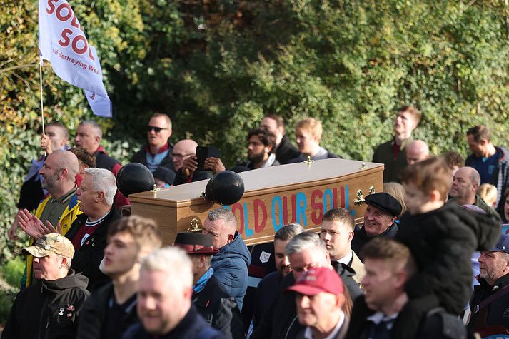 Zian Flemming kom gestunum yfir með marki á 35. mínútu en Callum Wilson jafnaði metin rétt fyrir hálfleik. Varamaðurinn Tomáš Souček kom Hömrunum svo yfir á 77. mínútu og Kyle Walker-Peters skoraði þriðja mark West Ham á 87. mínútu sem virtist ætla að gulltryggja sigurinn en djúpt inn í uppbótartíma skoraði Josh Cullen mark eftir mistök frá Aréola í marki West Ham sem greip ekki boltann og missti hann fyrir fætur Cullen. Með sigrinum jafnar West Ham Burnley að stigum og hefði farið upp úr fallsæti ef leikurinn hefði farið 3-1 en sárabótamark Cullen þýðir að Burnley hangir fyrir ofan fallsætið á markatölu. Stuðningsmenn West Ham mótmæltu fyrir leikVísir/Getty Í Liverpool tók Everton á móti Fulham og vann nokkuð þægilegan 2-0 með mörkum frá Idrissa Gueye og Michael Keane.