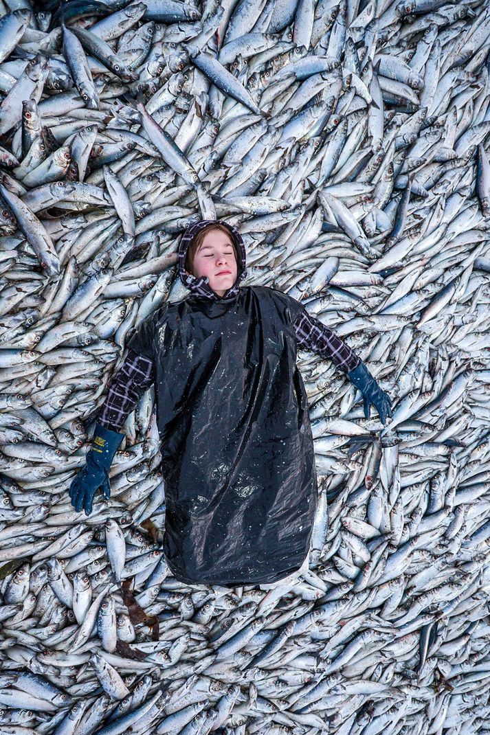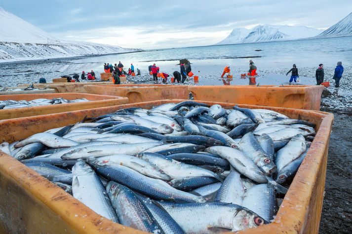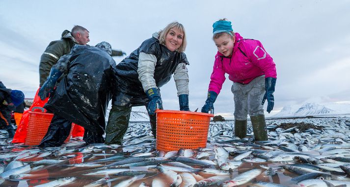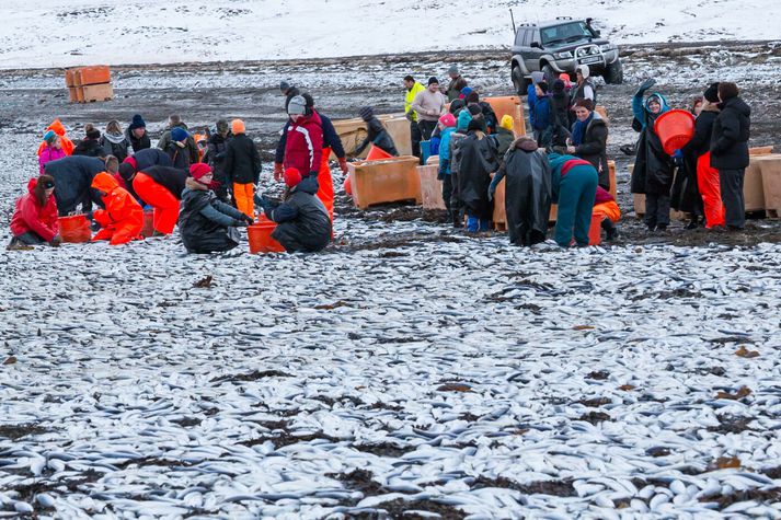 Hvorki síldarævintýri né gervigreind Auður Ösp Guðmundsdóttir skrifar 30. nóvember 2025 08:01 Að sögn Vilhelms ná myndirnar ekki að fanga óþefinn sem fylgdi síldinni og fyllti öll vit. Vísir/Vilhelm Það mætti halda að myndin hér að ofan væri unnin af gervigreind en ekki tekin af ljósmyndara Fréttablaðsins og Vísis snemma árs 2013. Þá varð sá fordæmalausi atburður að ríflega 35 þúsund tonn af síld drápust í Kolgrafafirði. Ástæðan var súrefnisþurrð. Fullur fjörður af síld en alls enginn ævintýrabragur. Þetta olli mikilli lífrænni mengun í firðinum, dauðum botndýrum á land í framhaldinu og drógu að sér tugþúsundir fugla og fjölda sjávarspendýra. Um fimmtíu manns, börn úr 5.-10. bekk í Grunnskóla Grundarfjarðar, félagar úr Ungmennafélagi Grundarfjarðar og einhverjir fullorðnir, fóru í Kolgrafafjörð þennan dag til að tína síld úr fjörunni. Síldin var síðan notuð í minkafóður sem selt var til Danmerkur. Sannkallaður síldarharmleikur. Vilhelm Gunnarsson ljósmyndari Vísi gerði sér ferð vestur á Snæfellsnes þennan dag og festi á filmu það sem fyrir augu bar. „Þetta var ótrúleg sjón sem blasti við, ég hafði aldrei séð neitt þessu líkt,“ rifjar Vilhelm upp og segist seint gleyma lyktinni sem fylgdi þessu gífurlega magni af rotnandi fiski. „Sem betur fer hafði ég tekið með mér auka föt og stígvél, og svartan ruslapoka sem ég gat hin fötin í og keyrt með heim, ef ég hefði ekki gert það hefði ég líklega skemmt bílinn út af lyktinni.“ Krakkarnir fengu átta krónur fyrir kílóið. Það sást þó ekki högg á vatni en áætlað var að rúm 35 þúsund tonn af síld hefðu drepist í firðinum.Vísir/Vilhelm Síldin var sett í kör og síðan í bíla.Vísir/Vilhelm Síldardauðinn vakti mikla athygli bæði innanlands og utan, en engin önnur dæmi hafa fundist um þvílíkt magn dauðrar síldar í náttúrunni, þótt fjölmörg tilvik megi finna um sjórekna síld hér og annars staðar í mun minna magni.Vísir/Vilhelm Ungir og aldnir komu saman og allir lögðu hönd á bóg.Vísir/Vilhelm Þessi drengur gerði sér lítið fyrir þegar stund var á milli stríða, og lagðist til hvílu ofan á fiskihrúgunni.Vísir/Vilhelm Eftir síldardauðann sóttu fuglarnir bæði í lifandi og dauða síld og streymdu inn á svæðið í tugþúsunda tali.Vísir/Vilhelm Orsök síldardauðans var súrefnisskortur en súrefnismettun sjávarins virðist hafa fallið vegna langvarandi kyrrviðris og mikils lífmagns í firðinum.Vísir/Vilhelm Fullorðnir og börn hjálpuðust að og unnu hörðum höndum allan daginn. Ekki ólíkt síldarævintýrunum í gamla daga en allt öðruvísi stemning enda tilefnið hundleiðinlegt.Vísir/Vilhelm Þessi mynd var tekin í lok dags en og sjá má var ennþá hellingur af síld eftir í fjörunni.Vísir/Vilhelm Að neðan má sjá fyrri greinar þar sem sagan er rifjuð upp með myndum Vilhelms Gunnarssonar ljósmyndara. Ljósmyndun Dýraheilbrigði Grundarfjörður Umhverfismál Tengdar fréttir Þegar Dorrit var forsetafrú Þegar Dorrit Moussaieff varð forsetafrú Íslands árið 2003 markaði hún upphafið að einni litríkustu forsetafrúartíð sem landið hefur séð. Dorrit, sem var fædd í Ísrael og uppalin í London, kom inn á Bessastaði með alþjóðlegan blæ og ólíkari orku en Íslendingar höfðu áður vanist. 23. nóvember 2025 09:00 Þegar allt sauð upp úr Sautján ár eru nú liðin síðan búsáhaldabyltingin náði hámarki sínu þegar Alþingi kom saman til fundar í fyrsta sinn eftir sérstakt jólafrí. Þremur mánuðum fyrr höfðu íslensku bankarnir fallið hver á fætur öðrum. 16. nóvember 2025 09:00 Mest lesið Vill hvetja mæður til að segja eigin sögu Lífið Krakkatían: Pizza, leikhús og þjóðfáni Lífið Óþægilegt erótískt ljóð Kennedy afhjúpað í framhjáhaldsdeilu Lífið Er þetta hinn nýi hvíti karlmaður? Lífið Þessar jólagjafir hitta í mark Lífið samstarf Féll niður fimmtán metra á Súlum: „Þetta er bara búið, ég átti gott líf“ Lífið Missti seinni fótinn sex árum eftir þann fyrri Lífið Bróðurinn grunaði að Hulda væri hálfsystir þeirra Lífið Lyktarlítill dans, Lux og „metnaðarlaus stefna í íslensku“ Menning „Nýju hverfin eintómar stafsetningarvillur“ Lífið samstarf Fleiri fréttir Hvorki síldarævintýri né gervigreind Krakkatían: Pizza, leikhús og þjóðfáni Vill hvetja mæður til að segja eigin sögu Óþægilegt erótískt ljóð Kennedy afhjúpað í framhjáhaldsdeilu Fréttatía vikunnar: Dreki, HúbbaBúbba og verðbólgan Júlí Heiðar og Dísa byrja með hlaðvarp Missti seinni fótinn sex árum eftir þann fyrri Töframaður fann Dimmu heila á húfi Dauða kindin óheppileg byrjun á brúðkaupi Skrautlegur dagur Guðrúnar Hafsteins og Fannars Jólaskreytingin þarf ekki að vera dýr og margt hægt að endurnýta „Lífið hefur ekkert alltaf verið auðvelt“ Norðurslóðastjörnu sagt að frumbyggjaskírteini væri „fals“ Féll niður fimmtán metra á Súlum: „Þetta er bara búið, ég átti gott líf“ Bróðurinn grunaði að Hulda væri hálfsystir þeirra Útgeislun og glæsileiki í húðvörupartýi Verkefnið kom eins og þruma úr heiðskíru lofti og varð Daníel að þegja í heilt ár Óttast að Dimma hafi endað í gini tófunnar Inga Elín hannar fyrir Saga Class Kjallarinn eins og nýr hjá Ásu og Árna „Ma & pa í apríl“ Bryndís Líf og Stefán eiga von á dreng Leikur plötusnúð á Hollywood sem eltir æskuástina til Spánar Fór í hjartastopp eftir að hafa borðað 10.000 hitaeiningar á dag Er þetta hinn nýi hvíti karlmaður? 50+: Það má segja Nei við barnapössun Gummi Ben gerir aldargamla fjölskylduuppskrift Inga Sæland fór á kostum í „Hvort myndir þú?“ Enn reið Tarantino vegna þess sem hann gerði 