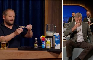 Sveppi gerði fyrsta ógeðsdrykkinn í tuttugu ár fyrir Bjarna Ben Stefán Árni Pálsson skrifar 9. desember 2025 13:38 Bjarni var umtalsvert harðari en þeir Fannar og Benni þegar hann smakkaði drykkinn. Fannar kláraði úr glasinu að lokum. Í þættinum Gott kvöld á föstudagskvöldið mætti Bjarni Benediktsson og ræddi við þá Benna, Fannar og Sveppa og það á léttu nótunum. Bjarni hefur tekið sér algjört frí frá því að hann yfirgaf svið stjórnmálanna. Eins og margir vita var Sverrir Þór lengi vel partur af þættinum 70 mínútum og fóru þeir félagar reglulega í dagskrálið sem ber heitið Ógeðsdrykkur. Þá mættu allir með eitt hráefni og var allt sett í blandara. Nú rúmlega tuttugu árum seinna var komið að næsta ógeðsdrykk og blandaði Sveppi fyrir þá félaga. Menn tóku þessu misjafnlega og kúguðust sumir eins og sjá má hér að neðan. Klippa: Sveppi gerði fyrsta ógeðsdrykkinn í tuttugu ár fyrir Bjarna Ben Gott kvöld Grín og gaman Mest lesið „Djúp menning sem hefur átt sér stað og enginn telur sig ábyrgan“ Menning Ástin blómstrar í appelsínugulu leðri Tíska og hönnun Dench segir Weinstein hafa mátt þola nóg Lífið Aðeins of leiðinlegt til að vera skemmtilegt Gagnrýni Sveppi gerði fyrsta ógeðsdrykkinn í tuttugu ár fyrir Bjarna Ben Lífið Ómar Úlfur nýr dagskrárstjóri Bylgjunnar Lífið Þrír Geirar skírðir í Jónshúsi Lífið Brjálað að gera á „Brjálað að gera“ Menning Stjörnulífið: Kim Kardashian norðursins fundin Lífið „Ætla að verða ógeðslega fræg og ógeðslega rík” Lífið Fleiri fréttir Glænýr bóksölulisti: Skólastjóri Ævars Þórs skýtur kónginum ref fyrir rass Áfall að dóttirin ætti 44 árum eldri kærasta Ómar Úlfur nýr dagskrárstjóri Bylgjunnar Sveppi gerði fyrsta ógeðsdrykkinn í tuttugu ár fyrir Bjarna Ben Dench segir Weinstein hafa mátt þola nóg Þrír Geirar skírðir í Jónshúsi Bílakarókí Bítisins: Hauspokinn gerði mikið fyrir sönginn Þessi eru tilnefnd til Golden Globe-verðlauna Gunnar Smári látinn heyra það fyrir færslu um Davíð á Sorpu Stjörnum prýtt afmæli Nínu „Ætla að verða ógeðslega fræg og ógeðslega rík” Stjörnulífið: Kim Kardashian norðursins fundin Fótboltastelpan sem endaði í kristnum háskóla í suðurríkjunum Deila fyrstu myndunum af hvort öðru „Mig hefði aldrei grunað að þetta ætti eftir að koma fyrir mig“ Skelfing greip um sig þegar björgunarbátnum hvolfdi Krakkatían: Borgari, bækur og aðfangadagur jóla Tommi Steindórs og Hrafnhildur trúlofuð Slagsmálin tengd hrósi, ekki framhjáhaldi Fékk veipeitrun Fréttatía vikunnar: Ofbeldi unglinga, Spotify wrapped og Kærleikskúlan Björk beinir skilaboðum til stjórnar RÚV Plötuðu Sigríði Andersen til að stíga í alvöru hundaskít Jólalegasti garðurinn í hverfinu og töff jólaskreytingar inni og úti „RÚV plís ekki vera gungur og aumingjar“ Kveður fasteignir fyrir kroppa Róandi skýjadansari er litur ársins 2026 Mortal Kombat-stjarna látin Hafði leitað árangurslaust að blóðföður sínum í áratugi Chanel og Snorri eiga von á syni Sjá meira