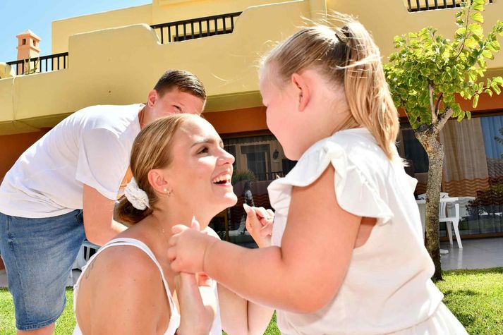 Ásta birtir reglulega myndskeið á TikTok þar sem hún veitir innsýn í líf fjölskyldunnar – og þann veruleika að vera móðir fimm barna sem eru öll með sérþarfir. „Ég vildi fyrst og fremst koma með vitundarvakningu, fræða fólk og líka hjálpa öðrum foreldrum þarna úti sem eru í svipuðum aðstæðum. Það er svo mikilvægt að vita að maður er ekki einn,“ segir Ásta en viðbrögðin við myndskeiðunum hafa verið talsverð. Hún hefur fengið fjölda skilaboða frá foreldrum sem hafa speglað sig í frásögn hennar. Með myndskeiðum sínum vill Ásta sýna að lífið með börnum með sérþarfir er hvorki stöðug barátta né stöðug gleði, heldur blanda af hvoru tveggja. Myndskeiðin eru mislöng og misalvarleg og það glittir reglulega í húmor og lífsgleði. „Ég vildi ekki hafa öll myndskeiðin þung og alvarleg, vegna þess að það er nauðsynlegt að halda í húmorinn í þessum aðstæðum.“ Ásta og Aaron hafa verið hjón í fjögur ár.Aðsend Ásta og eiginmaður hennar, Aaron Eyþórsson, búa á Húsavík ásamt börnunum sínum fimm. Ásta er fædd og uppalin í bænum en Aaron er að sunnan. „Ég og Aaron hittumst fyrst árið 2019, þegar hann kom til Húsavíkur til að vinna fyrir PCC. Við giftum okkur árið 2021. Aaron á tvö börn af fyrra sambandi, Karl Mikael sem er 15 ára og Írenu Þórey sem er 12 ára. Ég á tvo stráka af fyrra sambandi, Benedikt Berg sem er 13 ára og Sebastian Berg sem er 9 ára. Saman eigum við svo Natalíu Hafdísi sem er 4 ára að verða 5 ára. Fjögur af börnunum okkar, sem sagt öll nema yngsta stelpan okkar, eru með ADHD og þrjú af þeim eru einnig greind með einhverfu. Börnin okkar eru sem sagt öll skynsegin, með mismunandi skynúrvinnslu en öll eru þau yndislega frábær, hvert á sinn hátt.“ @astabjorkadalgeirs Ekkert getur undirbúið þig fyrir það að eignast börn með fatlanir. #einhverfa #íslenskttiktok #skynsegin #mömmutiktok #fyrirþig ♬ All That Really Matters - ILLENIUM & Teddy Swims Eins og að fá blauta tusku í andlitið Yngsta dóttir Ásta og Aarons, Natalía Hafdís, er með sjaldgæft heilkenni sem heitir DEE56 og stendur fyrir Developmental and Epileptic Encephalopathy 56. Það sem veldur DEE56 er svokölluð YWHAG-stökkbreyting. Sjúkdómurinn er ekki arfgengur, heldur er um tilviljunarkennda stökkbreytingu að ræða. Sjúkdómurinn veldur því að Natalía glímir við flogaveiki og þroskaskerðingu, auk þess sem hún talar ekki. „Hún er sú eina á landinu sem vitað er til að sé með þetta heilkenni. Mér skilst að það séu ekki nema í kringum 30 tilfelli á heimsvísu.“ Natalía fékk greininguna þegar hún var tveggja ára gömul, en foreldrana hafði þá grunað lengi að eitthvað væri að. „Hún var tæplega sex mánaða gömul þegar við tókum fyrst eftir því að eitthvað var ekki eins og það átti að vera. Þegar hún sat í stól var hún til dæmis alltaf að skella hausnum fast aftur. Hún var alltaf að snúa höndunum og fótunum og myndaði ekki augnsamband. Okkur grunaði strax að þetta gæti verið einhverfa en ákváðum að bíða þar til hún færi á leikskóla og sjá hvað yrði sagt við okkur þá. Hún byrjaði á leikskóla eins árs og var búin að vera þar í sirka hálft ár, þegar við fórum og hittum ljósmóður hjá ungbarnaverndinni. Við sögðum henni frá áhyggjum okkar og hún hlustaði og tók okkur mjög alvarlega og lét okkur fylla út lista. Við töluðum við deildarstjórann og leikskólastjórann sem sögðust hafa tekið eftir þessu líka. Natalía er sú eina á landinu sem greind er með stökkbreytinguna.Aðsend Við vorum síðan send til barnalæknis á Akureyri og þaðan á erfðadeildina á Landspítalanum, í genarannsókn. Svo heyrðum við ekkert meira í sirka hálft ár, en við gengum alltaf út frá því að hún væri á einhverfurófi. Einn daginn fengum við síðan boð á fund og þar var okkur tilkynnt að hún væri með þessa stökkbreytingu og þennan sjúkdóm. Þá var Natalía orðin tveggja ára. Þessi fundur situr enn þá í mér út af því hvernig við vorum kvödd. Við fengum þessar fréttir og svo var það bara „Ókei, bless.“ Þetta var eins og að fá blauta tusku í andlitið. Við sátum eftir, algjörlega í lausu lofti og vissum ekkert. Við þurftum sjálf að leita að öllum upplýsingum. Það var engin eftirfylgni. Þetta var rosalega mikið áfall. Við þurftum að finna rosalega mikið af upplýsingum sjálf. Það hjálpaði reyndar mikið þegar við fundum alþjóðlegan hóp á Facebook fyrir foreldra barna sem eru með þessa stökkbreytingu. Það hjálpar helling að heyra þeirra sögur og geta speglað sig í þeim,“ segir Ásta. „Við erum mjög heppin með stuðningsnetið og teymið sem við höfum hérna á Húsavík, frá félagsþjónustunni og leikskólanum. Natalía er með stuðning í leikskólanum allan daginn og stuðningsmanneskjan er líka liðveislan hennar.“ Eitt einkennið sem fylgir stökkbreytingunni er að Natalia er mjög stór eftir aldri. „Hún er að verða fimm ára en klæðist fötum sem eru gerð fyrir 12 og 13 ára aldur. Það getur verið mjög snúið að finna föt sem passa, sérstaklega útiföt. Mamma mín er eiginlega í fullri vinnu við að stytta ermar og laga lengdina á fötunum.“ Sem fyrr segir þá er Natalía „non-verbal“ eins og það er kallað. Í myndskeiði sem Ásta birti á TikTok á dögunum deildi hún því að það sem hún óskaði mest að fá í jólagjöf væri að heyra röddina á litlu stelpunni sinni, heyra hana segja „mamma“ og „ég elska þig.“ @astabjorkadalgeirs Bara eitt “mamma”, bara eitt “ég elska þig” 🥺 #autismawareness #nonverbalautism #ywhag #autismtiktok #einhverfa ♬ original sound - dilzaa._ „Það getur verið afskaplega erfitt og sárt að horfa upp á barn si