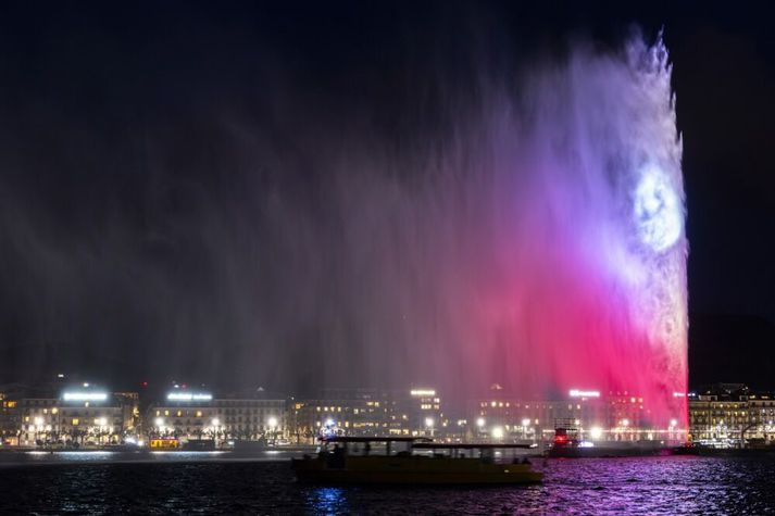 Svissnesk yfirvöld hafa staðfest að alls hafi 40 látist, flestir á tánings- og tvítugsaldri, sá yngsti 14 ára. Flest þeirra látnu eru frá Sviss, Frakklandi og Ítalíu. Að auki slösuðust 116, þar af 83 sem enn eru í meðferð á sjúkrahúsi vegna alvarlegra brunasára. Jacques og Jessica Moretti, eigendur barsins, eru til rannsóknar vegna manndráps af gáleysi. Jacques Moretti var handtekinn í gær og er í gæsluvarðhaldi. Svissneskir saksóknarar sögðu að Jacques Moretti, sem er franskur ríkisborgari, væri í hættu á að flýja land. Hann og eiginkona hans, Jessica, sem er einnig frönsk, eru grunuð um manndráp af gáleysi, líkamsmeiðingar af gáleysi og íkveikju af gáleysi. Í frétt Guardian segir að hjónin hafi keypt barinn árið 2015 og gert hann upp. Þau neiti allri sök og sögðu í yfirlýsingu í vikunni að þau væru „niðurbrotin og yfirbuguð af sorg“ en lofuðu „fullu samstarfi“ við rannsóknina. Kviknaði líklega út frá stjörnuljósum í kampavínsflösku Fram hefur komið að eldurinn kviknaði í troðfullum kjallara barsins eftir að stjörnuljósum sem fest voru við kampavínsflöskur var haldið of nálægt lofti sem talið er að hafi verið klætt með hljóðeinangrandi froðu. Rannsóknin beinist að endurbótum sem gerðar voru á barnum, slökkvikerfum og flóttaleiðum, auk fjölda fólks í byggingunni þegar eldurinn kviknaði. Fólk kom saman við dómkirkjuna í Lausanne til að minnast þeirra sem létust í brunanum. Vísir/EPA Þá greindi Nicolas Féraud, bæjarstjóri Crans-Montana, frá því fyrr í vikunni að engar öryggisskoðanir hefðu verið gerðar á staðnum síðan 2019. Hann gat ekki útskýrt hvers vegna árleg skoðun hefði ekki farið fram. Í frétt Guardian segir að lögmenn sem koma fram fyrir hönd fjölskyldna þeirra sem létust eða slösuðust í harmleiknum hafi sakað rannsakendur um að vinna ekki nógu hratt að því að tryggja mikilvæg sönnunargögn. Sem dæmi hafi Romain Jordan og Ronald Asmar, lögmenn hjá lögmannsstofunni Merkt í Genf, fullyrt að eigendur barsins virðist hafa gert Instagram- og Facebook-reikninga sína óvirka og í leiðinni „eytt myndum og myndböndum sem hefðu getað nýst rannsókninni“. Haft er eftir Jordan í frétt Guardian að allir í Sviss hafi orðið fyrir persónulegum áhrifum af þessum harmleik. „Fyrsta stig þessa harmleiks er að sjá ung líf enda á þennan hátt, eða slasast og bera ör að eilífu,“ sagði hann. „Síðan skilur maður fljótt að það gerðist kannski vegna mannlegra mistaka … og það versta er að yfirvöld voru kannski ekki að fylgjast með. Þetta leggst saman í óskiljanlega martröð, sem er erfitt að sætta sig við.“ Fólk kom víða saman um allt Sviss í gær og horfðu sumir á minningarathöfnina á stórum skjá úti. Vísir/EPA Fram kemur í frétt Guardian að frá því að eldsvoðinn átti sér stað hafi þúsundir bara, veitingastaða og næturklúbba verið skoðaðir í Crans-Montana og nærliggjandi bæjum, auk þess sem nýjar öryggisráðstafanir hafi verið kynntar í Vaud-kantónu, þar sem Lausanne er staðsett. Lausanne er í um klukkustundar akstursfjarlægð frá Genf. Gosbrunnurinn í Genf, Le Jet d'Eau, var litaður litum Valais kantónunnar á meðan minningarathöfninni stóð. Vísir/EPA Guy Parmelin forseti Sviss sagðiatburðinn einn mesta harmleik í sögu þjóðarinnar og lýsti yfir fimm daga þjóðarsorg. Þá var fórnarlamba brunans einnig minnst í gær og haldin minningarathöfn í bæ nálægt Crans-Montana að viðstöddum helstu embættismönnum Evrópu, þar á meðal Emmanuel Macron, forseta Frakklands, og Sergio Mattarella, starfsbróður hans á Ítalíu. Frá hægri til vinstri á myndinni má sjá Sergio Mattarella, forseta Ítalíu, Emmanuel Macron, forseta Frakklands, Hinrik stórhertogi af Lúxemborg, Bart De Wever, forsætisráðherra Belgíu, og Robertu Metsola, forseti Evrópuþingsins, viðstödd opinbera minningarathöfn í sýningar- og ráðstefnumiðstöðinni Martigny Expo (CERM) í Martigny í Sviss í gær. Vísir/EPA