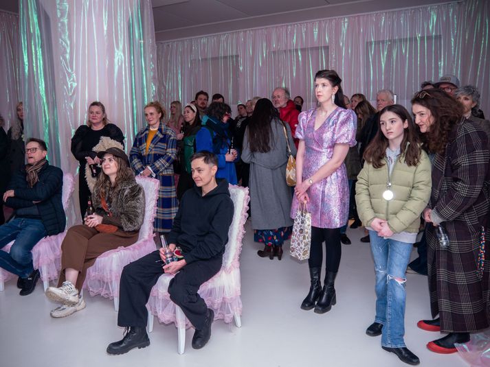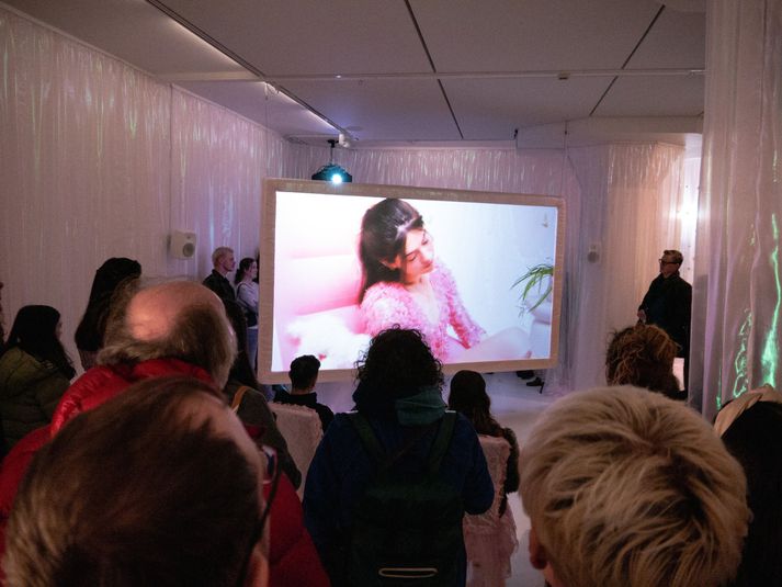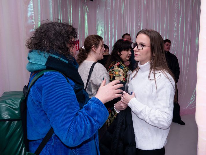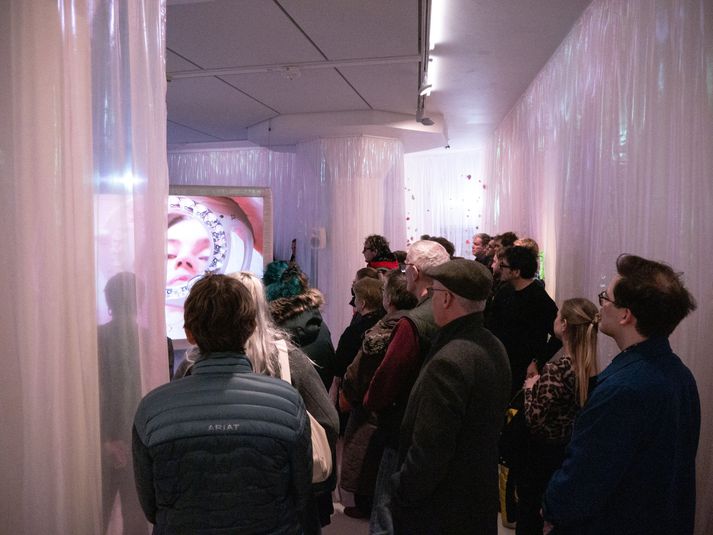 Líkamsumhirða sem þróast í þráhyggju Dóra Júlía Agnarsdóttir skrifar 19. janúar 2026 20:03 Listakonan Kristín Helga Ríkharðsdóttir var að opna sýninguna Silkimjúk. Hildur Inga Björnsdóttir Listakonan Kristín Helga Ríkharðsdóttir fer einstakar leiðir í listsköpun sinni og hefur vakið mikla athygli hérlendis undanfarið ár. Kristín Helga, sem er fædd árið 1993 og lærði í New York, var að opna einkasýningu í D-sal Listasafns Reykjavíkur sem ber heitið Silkimjúk. Viðfangsefnið snertir meðal annars á þráhyggju fyrir líkamsumhirðu og óútskýrðum ótta við stutt, svört hár. Sýningin opnaði með pompi og prakt 15. janúar og stendur fram til 8. maí. View this post on Instagram A post shared by Kristín Helga Ríkharðsdóttir (@krixrikhards) Það var margt um manninn á opnuninni en hér má sjá vel valdar myndir frá því: Mikil stemning í D-sal!Hildur Inga Björnsdóttir Kristín Helga er meðal annars með vídjóverk á skjávarpa og tásur upp úr gólfinu.Hildur Inga Björnsdóttir Það var stútfullt á opnuninni í D-salHildur Inga Björnsdóttir Íris María Leifsdóttir og Kristín Helga Ríkharðsdóttir.Hildur Inga Björnsdóttir Glæsilegir gestir.Hildur Inga Björnsdóttir Gengið inn í D-sal og eftirvænting í loftinu!Hildur Inga Björnsdóttir Skvísur!Hildur Inga Björnsdóttir Skvísulæti á skjánum.Hildur Inga Björnsdóttir Gestir fylgjast grant með.Hildur Inga Björnsdóttir Þrjár ofurpæjur! Helga Hvanndal Björnsdóttir umhverfis-og auðlindafræðingur, Aníta Björk pípari og listakonan Kristín Helga.Hildur Inga Björnsdóttir Sýningin heitir Silkimjúk eða The Smooth Operator.Hildur Inga Björnsdóttir Kristín Helga og Daría Sól í góðum félagsskap.Hildur Inga Björnsdóttir Þessi voru sátt með sýninguna.Hildur Inga Björnsdóttir Skvísur skáluðu fyrir listinni!Hildur Inga Björnsdóttir Glaðir gestir.Hildur Inga Björnsdóttir Stemningsmenn.Hildur Inga Björnsdóttir Strákar í stuði.Hildur Inga Björnsdóttir Bleikt og glimmerað.Hildur Inga Björnsdóttir Aníta Björk, Álfrún Perla og Helga Hvanndal.Hildur Inga Björnsdóttir Stemmari.Hildur Inga Björnsdóttir Gestir á djúpu spjalli.Hildur Inga Björnsdóttir Listakonurnar Karen Ösp Pálsdóttir, Daría Sól, Kristín Helga og María Guðjohnsen.Hildur Inga Björnsdóttir Gaman!Hildur Inga Björnsdóttir Listrænar skvísurHildur Inga Björnsdóttir Gæjar í gír!Hildur Inga Björnsdóttir Glæsileg.Hildur Inga Björnsdóttir Auga!Hildur Inga Björnsdóttir Kristín Helga var í skýjunum.Hildur Inga Björnsdóttir Gellur grandskoða list.Hildur Inga Björnsdóttir Doppótt og hress og kát!Hildur Inga Björnsdóttir Fríða Ísberg lét sig ekki vanta en hún og Kristín Helga eru vinkonur úr MH.Hildur Inga Björnsdóttir Bleikir rokokó stólar færðu líf og fjör í upphaf sýningar. Hildur Inga Björnsdóttir Sýningar á Íslandi Menning Myndlist Mest lesið Aron Mola ástfanginn í bíó Lífið Stjörnulífið: Áslaug náði ekki að tala Trump til Lífið Valentino er allur Tíska og hönnun Rybak snýr aftur en frægir bræður sniðganga Lífið Opinberar erjur Beckham-fjölskyldunnar: „Ég vil ekki sættast við fjölskyldu mína“ Lífið „Kynlíf okkar hjóna hefur breyst mikið síðustu ár“ Lífið Þekkja Kringlugestir borgarstjórann? Lífið Krútteyjurnar Ischia og Sikiley: Ástu leist ekki á einnar evru húsin Lífið Stórt hlutverk og gefandi að vera stjúpforeldri þótt réttindin séu engin Áskorun Fagna tíu árum af ást Lífið Fleiri fréttir Líkamsumhirða sem þróast í þráhyggju Bestu og verstu leiksýningar síðasta leikárs Trölli stelur jólunum í Borgarleikhúsinu Baltasar Samper látinn Nýr óperustjóri: Lengri samningar og stöðugleiki nýlunda í íslensku óperulífi Vilhjálmur Bergsson er látinn Ólafur Jóhann er konungur bóksölunnar 2025 Enginn formaður Sjalla, Kaffi Vest-samsærið og vinir skoðanabræðra Egill Ólafs og Gísli Marteinn sprækir á annan í jólum Tekur yfir borgina á nýársdag Græna gímaldið ljótast Óléttan uppgötvaðist þremur dögum fyrir byrjun skólans Glænýr bóksölulisti: Ólafur Jóhann skákar Arnaldi Eru þetta ljótustu og fallegustu nýbyggingar ársins? „Sat í átta klukkutíma á dag og horfði út um gluggann“ Bandalag listamanna lýsir yfir stuðningi við Dóru „Við erum öll dauð hvort sem er“ Flýta jólasýningunni um klukkutíma vegna lengdar Vangreiðslugjald orð ársins 2025 Fólk eigi ekki að vera hrætt við að skilja ekki „Ef einhver telur að ég hljóti að vera sjúkur, þá verður að hafa það“ Konungur bóksölunnar á í vök að verjast Að gluða tómatsósu yfir sushi-ið Auður segir skilið við Gímaldið Ráðherra tekur sjálfur viðtöl Hvert er mest óþolandi orð íslenskunnar? Heigulsleg ákvörðun Rúv, hörundsárir listamenn og versta bók flóðsins Sigurður Sævar fyllti Landsbankahúsið „Versta hljómsveit Íslandssögunnar“ segir rappara vera með sig á heilanum Kanónur í jólakósí Sjá meira