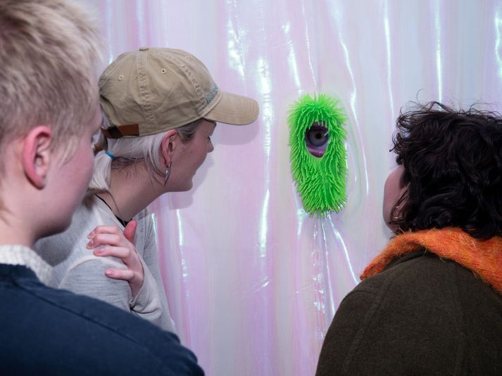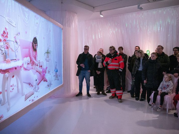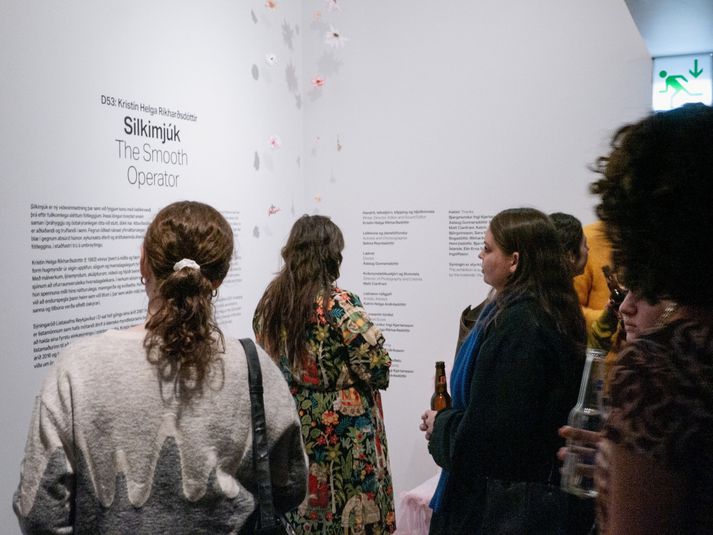 Sýningin opnaði með pompi og prakt 15. janúar og stendur fram til 8. maí. View this post on Instagram A post shared by Kristín Helga Ríkharðsdóttir (@krixrikhards) Það var margt um manninn á opnuninni en hér má sjá vel valdar myndir frá því: Mikil stemning í D-sal!Hildur Inga Björnsdóttir Kristín Helga er meðal annars með vídjóverk á skjávarpa og tásur upp úr gólfinu.Hildur Inga Björnsdóttir Það var stútfullt á opnuninni í D-salHildur Inga Björnsdóttir Íris María Leifsdóttir og Kristín Helga Ríkharðsdóttir.Hildur Inga Björnsdóttir Glæsilegir gestir.Hildur Inga Björnsdóttir Gengið inn í D-sal og eftirvænting í loftinu!Hildur Inga Björnsdóttir Skvísur!Hildur Inga Björnsdóttir Skvísulæti á skjánum.Hildur Inga Björnsdóttir Gestir fylgjast grant með.Hildur Inga Björnsdóttir Þrjár ofurpæjur! Helga Hvanndal Björnsdóttir umhverfis-og auðlindafræðingur, Aníta Björk pípari og listakonan Kristín Helga.Hildur Inga Björnsdóttir Sýningin heitir Silkimjúk eða The Smooth Operator.Hildur Inga Björnsdóttir Kristín Helga og Daría Sól í góðum félagsskap.Hildur Inga Björnsdóttir Þessi voru sátt með sýninguna.Hildur Inga Björnsdóttir Skvísur skáluðu fyrir listinni!Hildur Inga Björnsdóttir Glaðir gestir.Hildur Inga Björnsdóttir Stemningsmenn.Hildur Inga Björnsdóttir Strákar í stuði.Hildur Inga Björnsdóttir Bleikt og glimmerað.Hildur Inga Björnsdóttir Aníta Björk, Álfrún Perla og Helga Hvanndal.Hildur Inga Björnsdóttir Stemmari.Hildur Inga Björnsdóttir Gestir á djúpu spjalli.Hildur Inga Björnsdóttir Listakonurnar Karen Ösp Pálsdóttir, Daría Sól, Kristín Helga og María Guðjohnsen.Hildur Inga Björnsdóttir Gaman!Hildur Inga Björnsdóttir Listrænar skvísurHildur Inga Björnsdóttir Gæjar í gír!Hildur Inga Björnsdóttir Glæsileg.Hildur Inga Björnsdóttir Auga!Hildur Inga Björnsdóttir Kristín Helga var í skýjunum.Hildur Inga Björnsdóttir Gellur grandskoða list.Hildur Inga Björnsdóttir Doppótt og hress og kát!Hildur Inga Björnsdóttir Fríða Ísberg lét sig ekki vanta en hún og Kristín Helga eru vinkonur úr MH.Hildur Inga Björnsdóttir Bleikir rokokó stólar færðu líf og fjör í upphaf sýningar. Hildur Inga Björnsdóttir