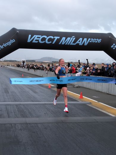 Hlaupin var ein míla, eða 1.609 metrar, á hraðri og flatri braut. Hringurinn var 1.119 metrar með tveimur 490 metra beinum köflum. Aðstæður voru afar erfiðar, verulega vindugar og votar. Hlaupararnir voru því ekki að klukka sína bestu tíma en sigurvegararnir voru ekki óvæntir. Baldvin Þór kom í mark á 4:21. vecct / aron guan Baldvin Þór Magnússon vann karlaflokkinn með því að hlaupa míluna á 4 mínútum og 21 sekúndu. Jökull Bjarkason og Fjölnir Brynjarsson urðu í 2. og 3. sæti, báðir á tímanum 4:31. Andrea Kolbeinsdóttir vann kvennaflokkinn með því að hlaupa míluna á 4 mínútum og 59 sekúndum. Halldóra Huld Ingvarsdóttir og Íris Anna Skúladóttir urðu í 2. og 3. sæti, á 05:11 og 05:20. Andrea kom í mark á 4:59.vecct / aron guan Einnig var keppt í opnum almennum flokkum karla og kvenna. Þar var Agnar Darri Sveinsson sigurvegari karla á tímanum 04:49 en Sigrún Erla Lárusdóttir sigurvegari kvenna á tímanum 05:52. Keppnin bar heitið Vecct Mílan og var í beinni útsendingu á Vísi. Upptaka verður birt hér fyrir neðan síðar í í dag.