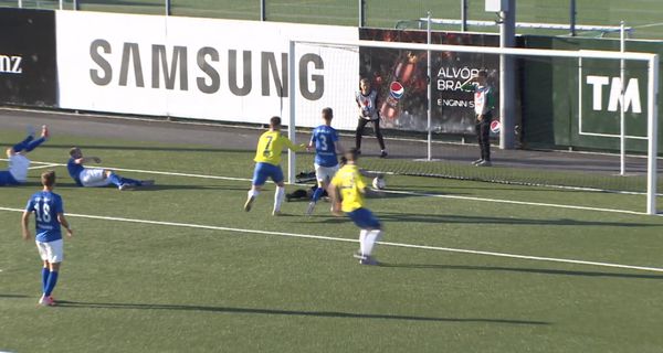 Jökull Andrésson gat ekki annað en tekið þátt þegar bróðir hans, Axel Óskar, var tekinn tali eftir sögulegan sigur liðs þeirra Aftureldingar á Víkingi í Bestu deild karla.