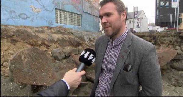 Gamli hafnargarðurinn og stærðarinnar skipsskrúfur komu í ljós við framkvæmdir við Tryggvagötu Fréttir 3798 30.5.2015 19:15