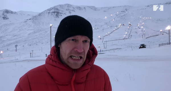 Gangandi vegfarendur eiga í miklum erfiðleikum vegna mikilla vindstrengja við háhýsin við Höfðatorg og í Borgartúni í dag.