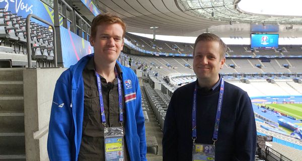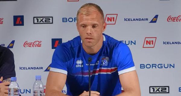 Úr útsendingu Vísis og Stöðvar 2 Sport frá blaðamannafundi í Laugardal þar sem HM-hópurinn var kynntur. Sjá nánar: